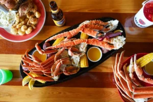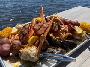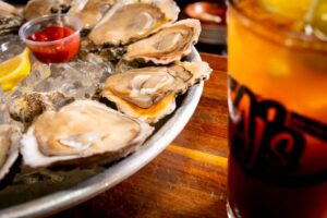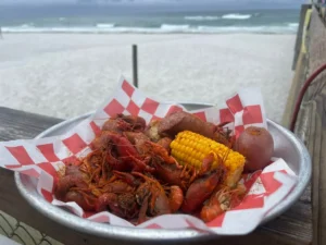Savor Old Bay Steamer on Okaloosa Island, a local favorite for fresh steamed seafood, lobster, crab, steaks, and cocktails in laid-back Fort Walton Beach.