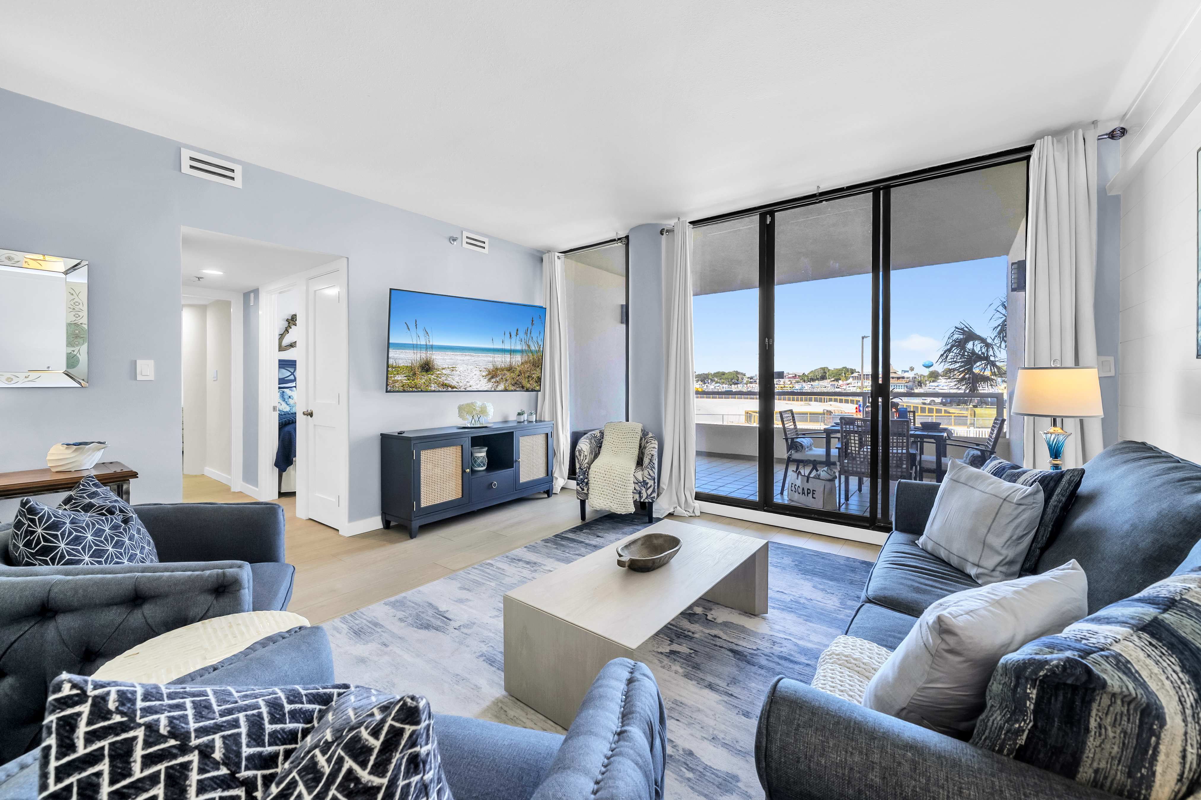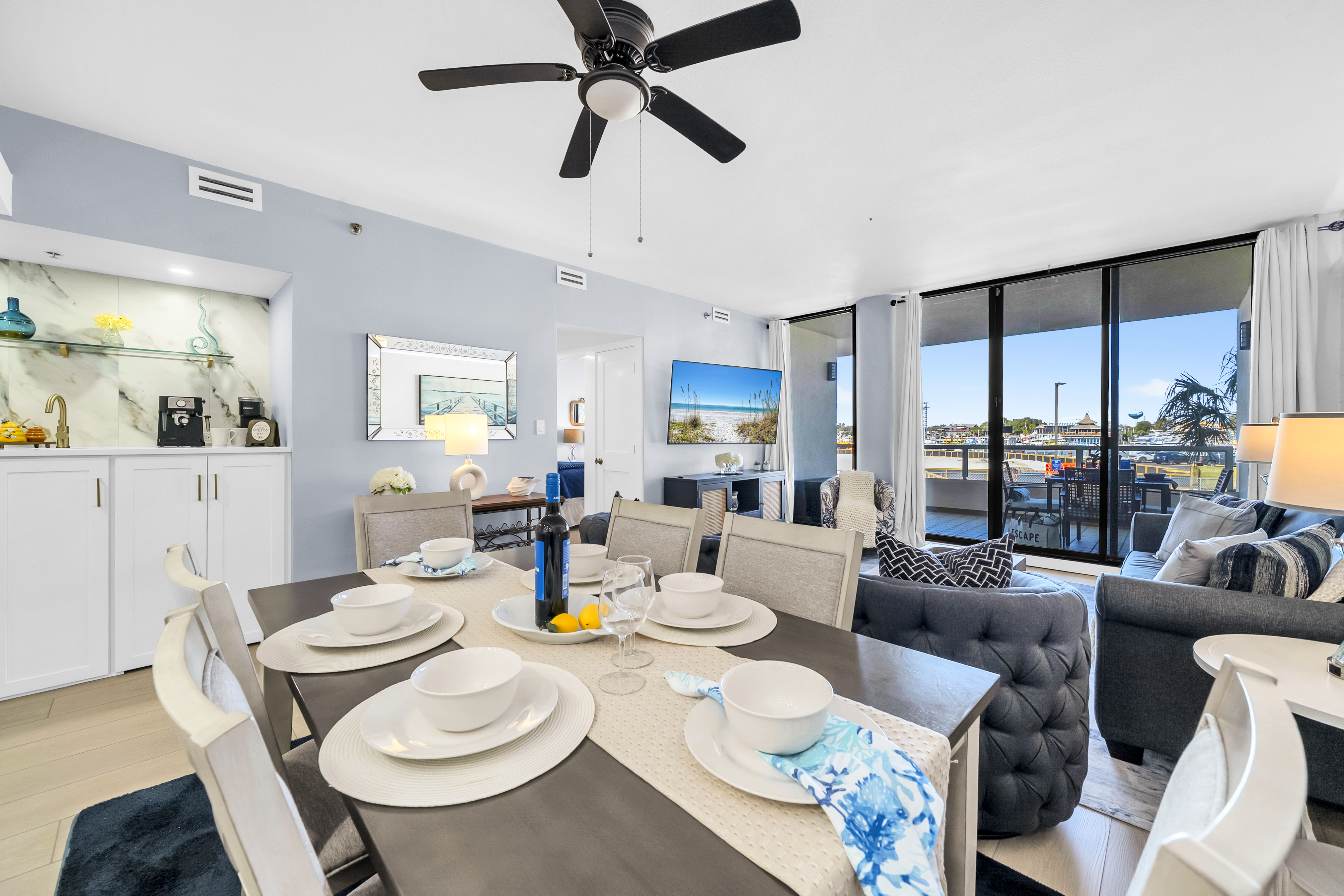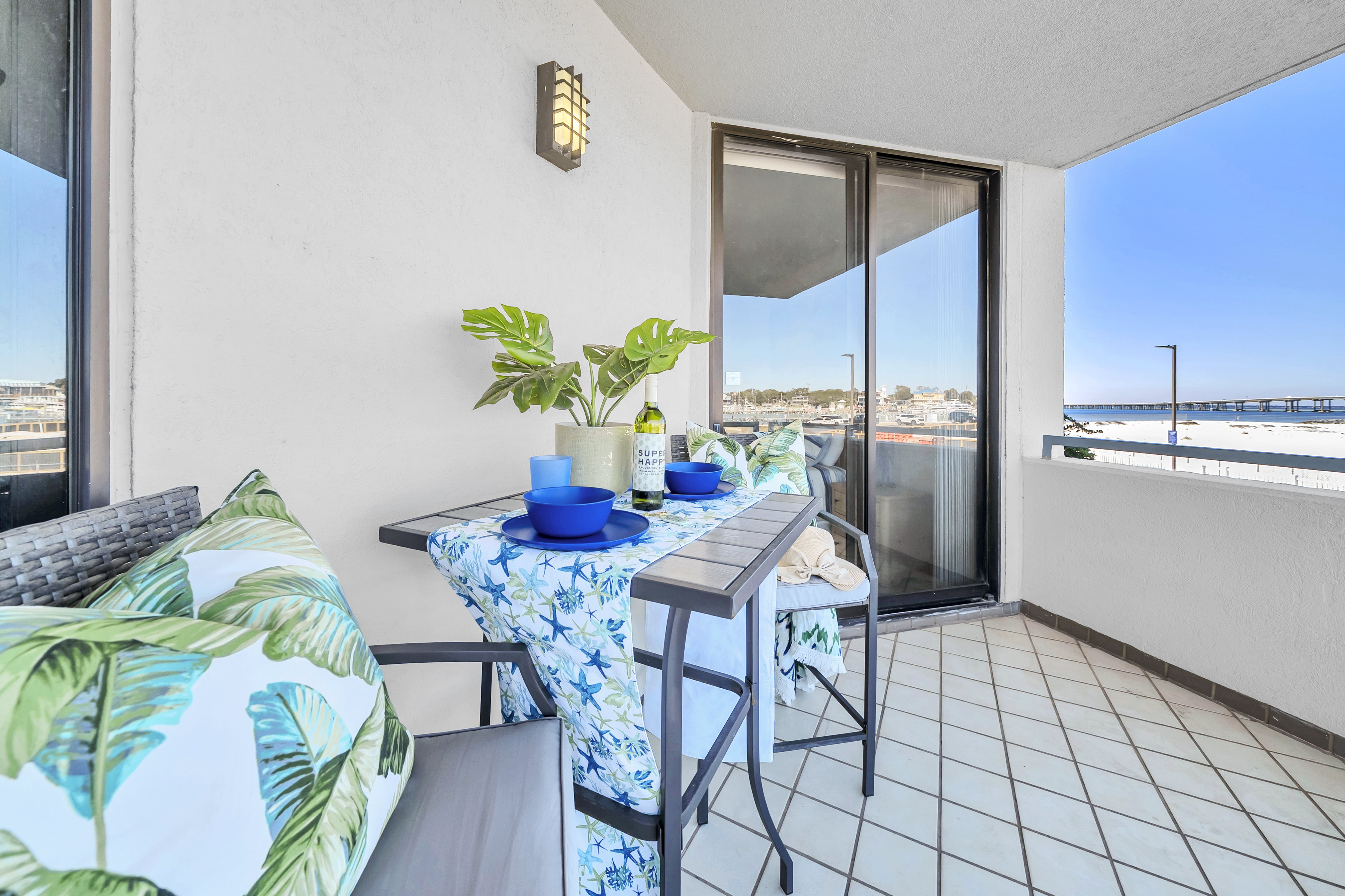 Emerald Breeze offers a rare opportunity to stay directly on the Gulf and East Pass with sweeping views of Destin Harbor and emerald waters. Located on Holiday Isle at the gated East Pass Towers resort, this beautiful 2-bedroom, 2-bathroom condo places you just steps from Norriego Point and O’Steen Beach, with effortless access to Destin’s vibrant Harbor via the nearby water taxi. Inside, the condo features 2 private harbor facing bedrooms, including a spacious king suite with balcony access and a serene guest bedroom with twin beds, making it ideal for families or couples traveling together. The open living space flows seamlessly onto a large private balcony with multiple seating areas, where guests can watch boats cruise through the pass, enjoy glowing sunsets, and take in seasonal Harbor fireworks from a true front row seat.