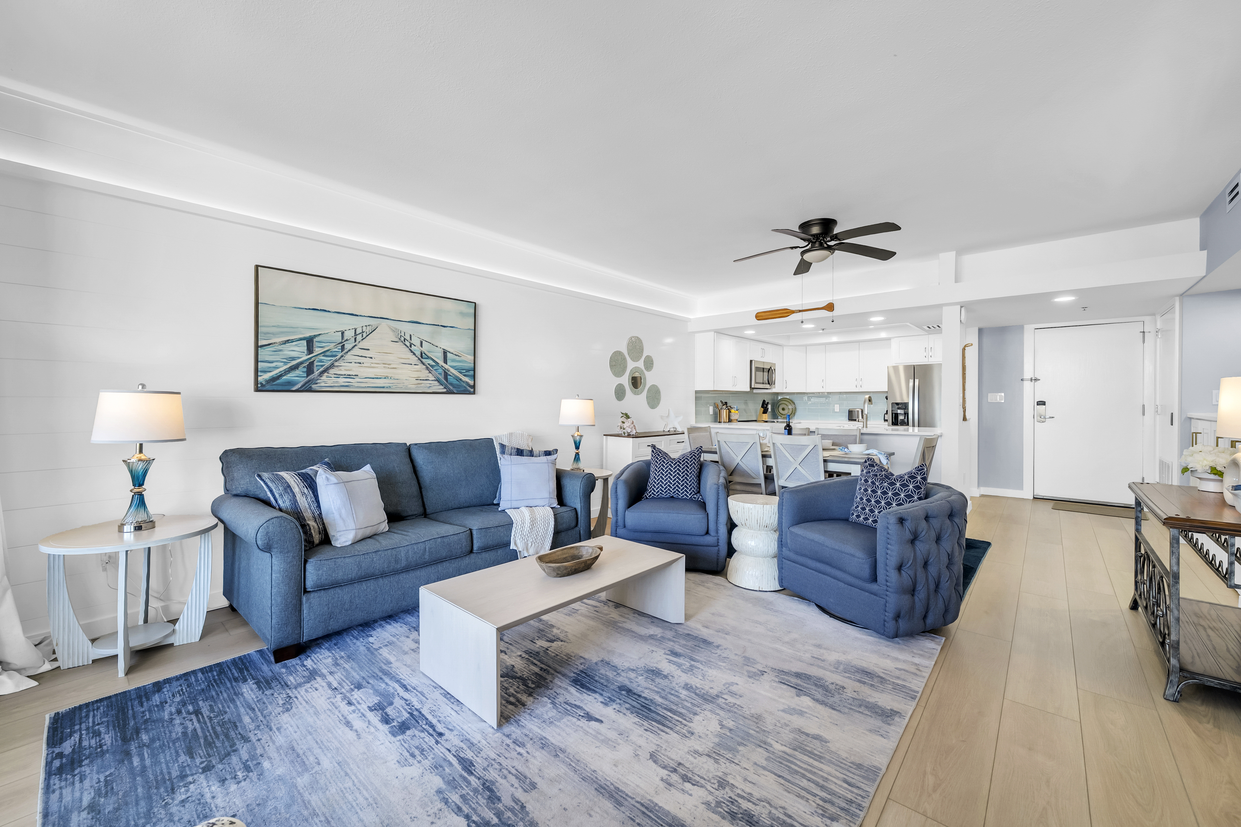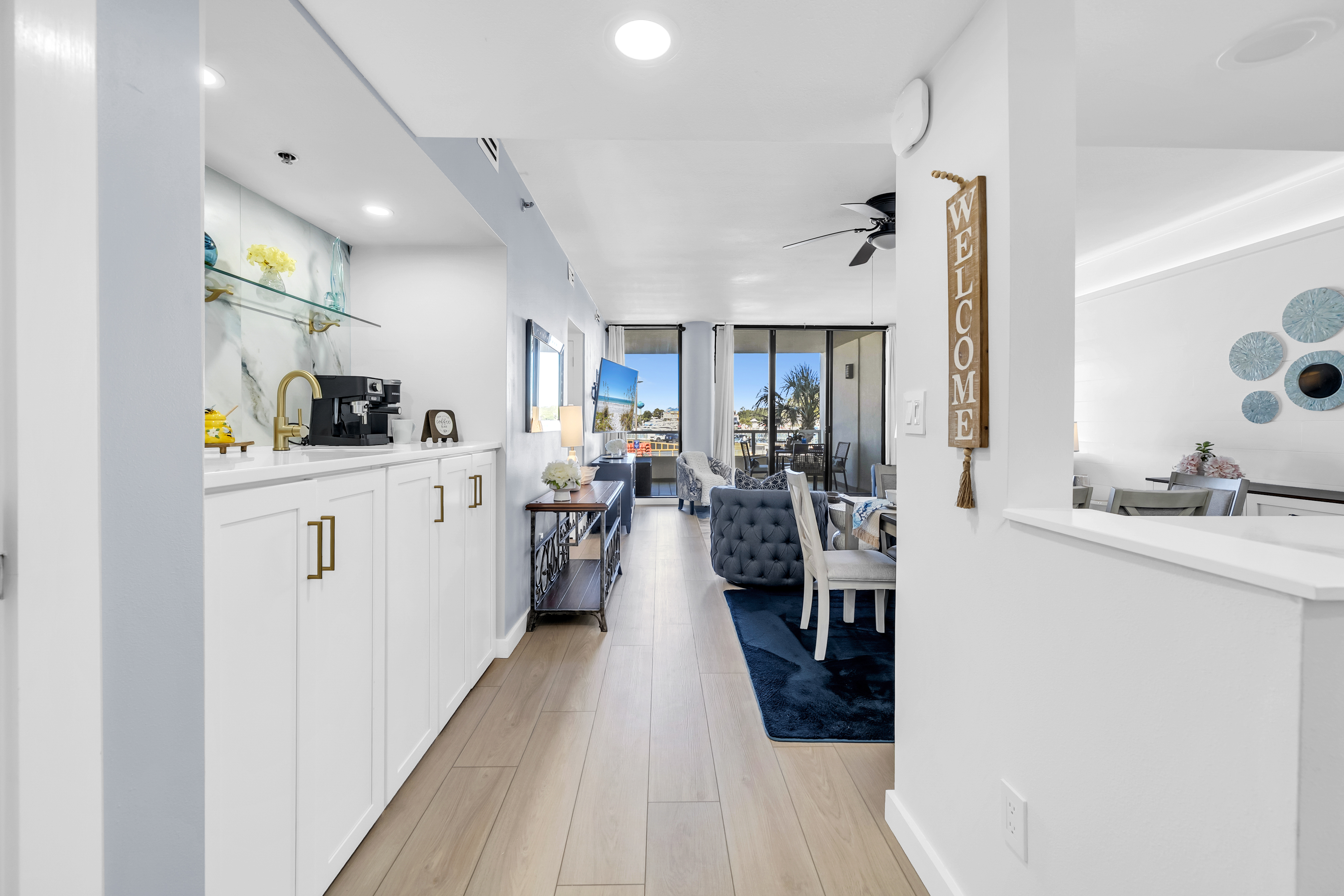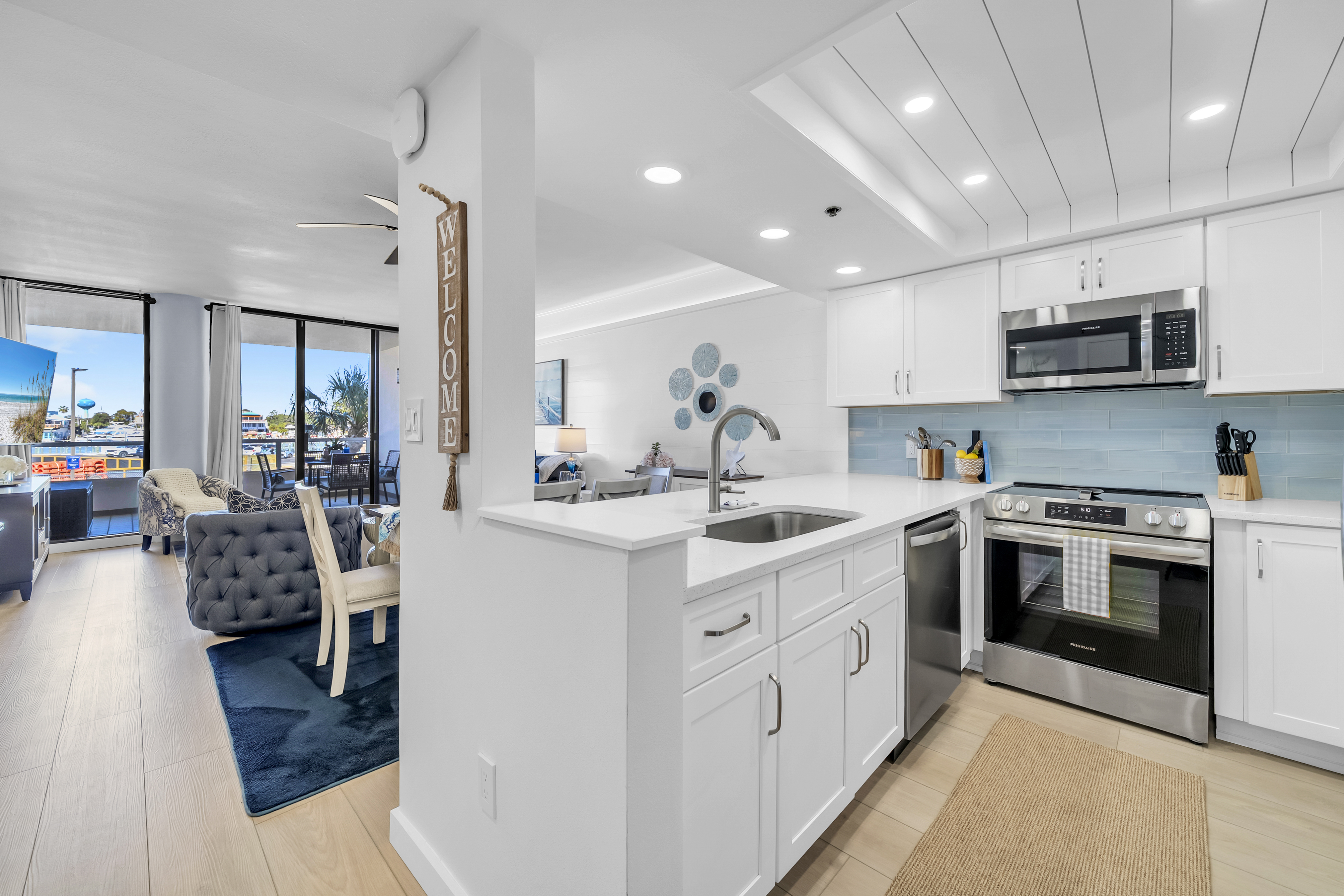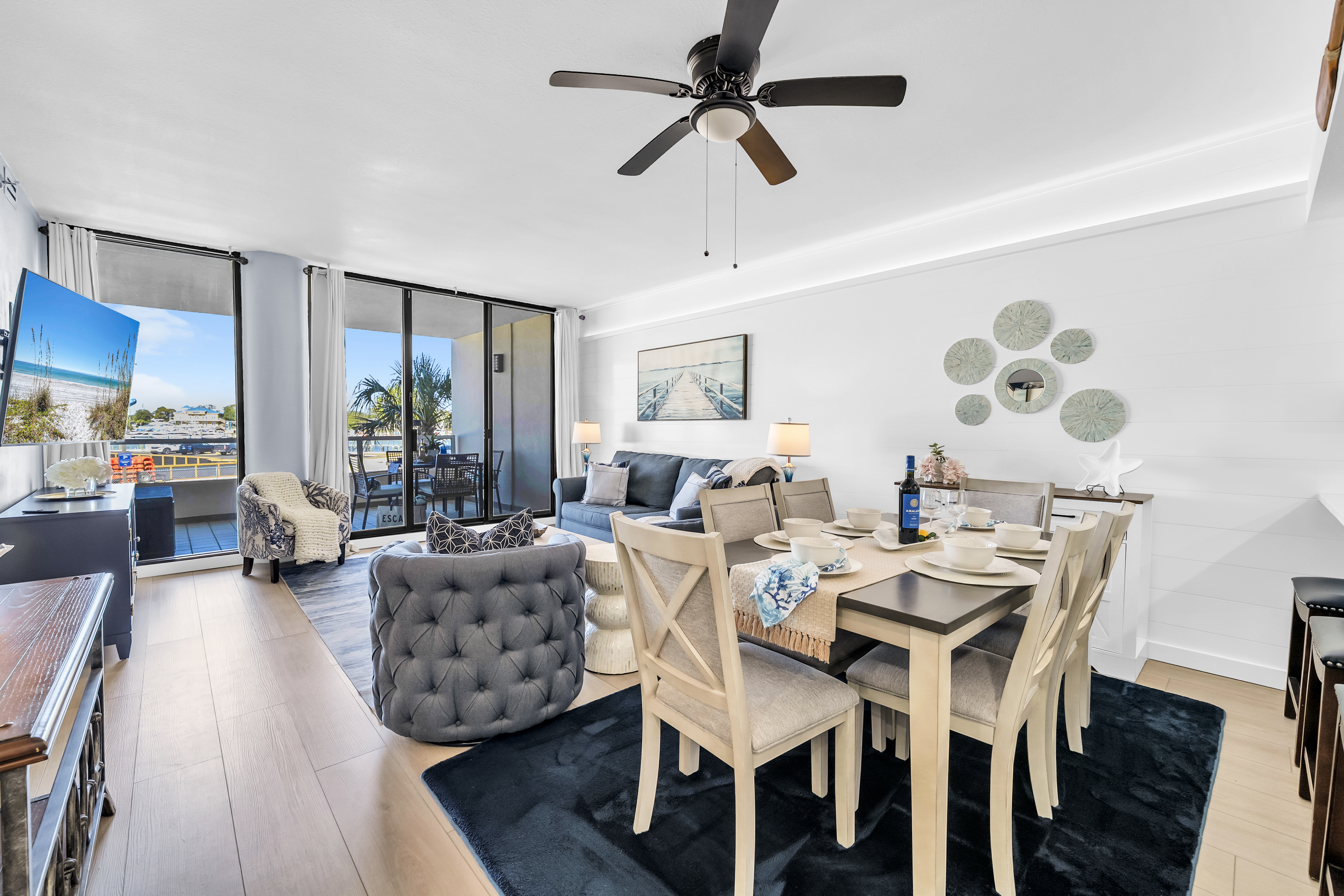 Emerald Breeze offers a rare opportunity to stay directly on the Gulf and East Pass with sweeping views of Destin Harbor and emerald waters. Located on Holiday Isle at the gated East Pass Towers resort, this beautiful 2-bedroom, 2-bathroom condo places you just steps from Norriego Point and O’Steen Beach, with effortless access to Destin’s vibrant Harbor via the nearby water taxi. Inside, the condo features 2 private harbor facing bedrooms, including a spacious king suite with balcony access and a serene guest bedroom with twin beds, making it ideal for families or couples traveling together. The open living space flows seamlessly onto a large private balcony with multiple seating areas, where guests can watch boats cruise through the pass, enjoy glowing sunsets, and take in seasonal Harbor fireworks from a true front row seat.