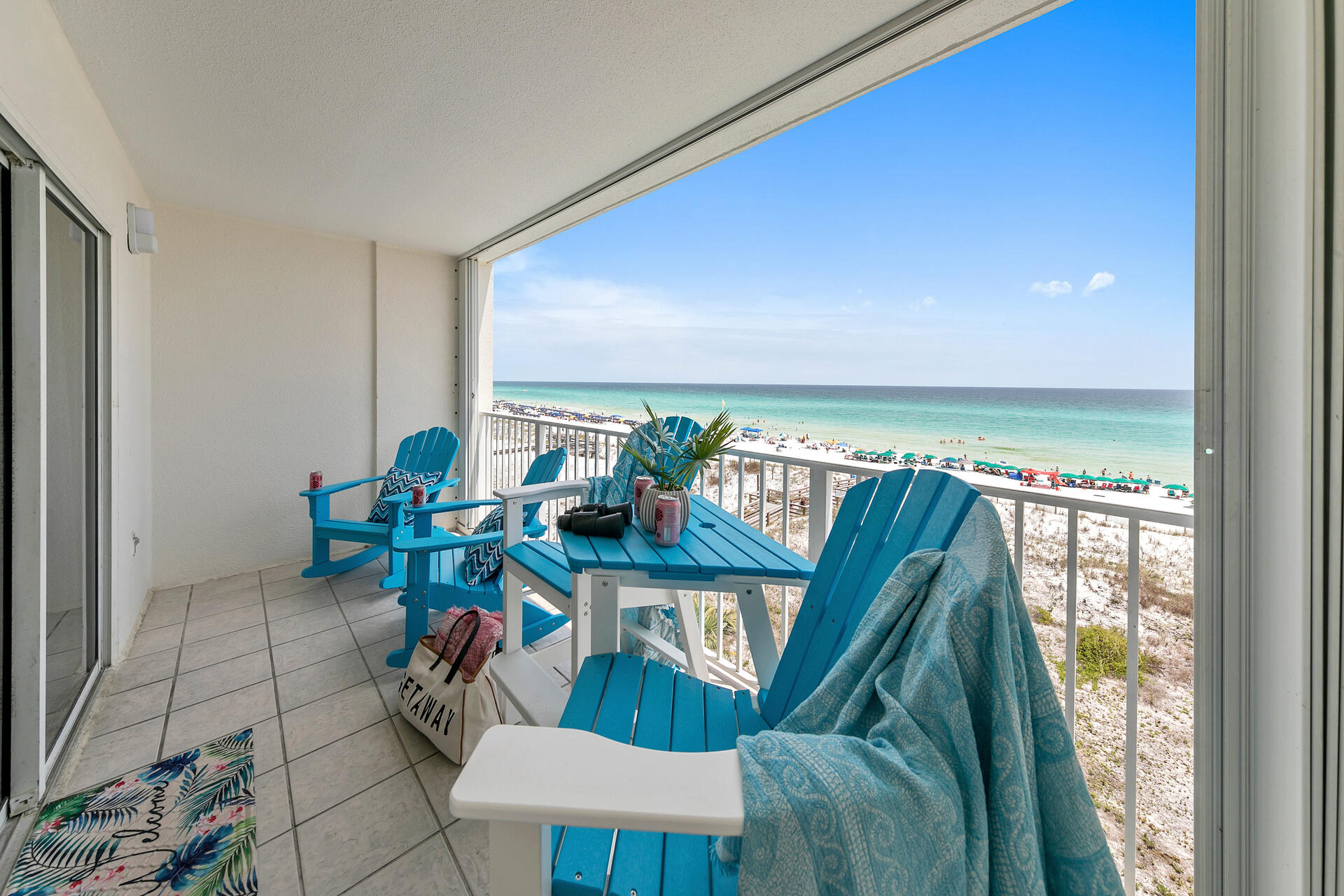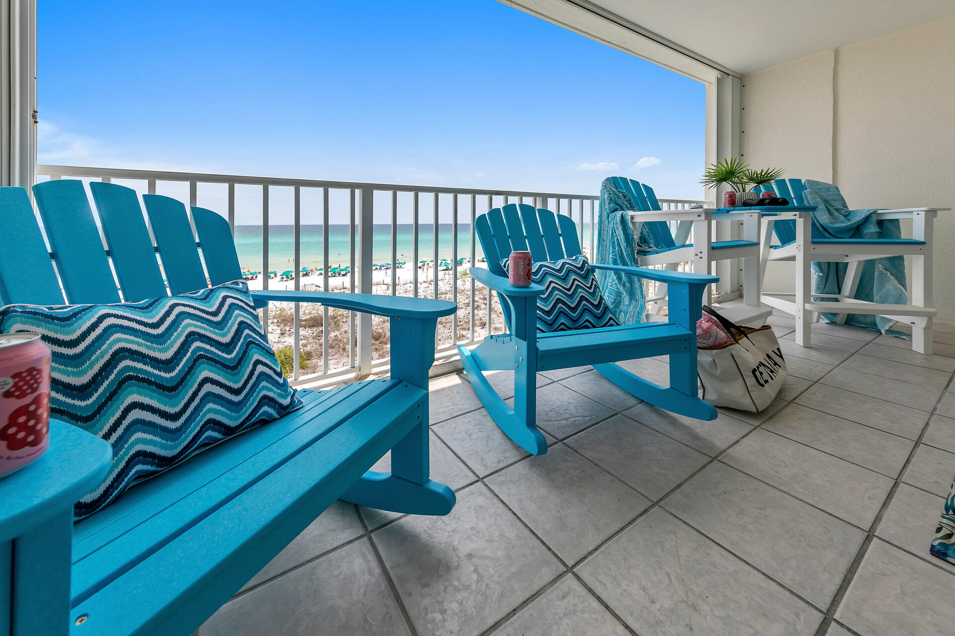The balcony had the best view of the ocean. We had 2 chairs and umbrellas waiting each morning set up at the beach which was easy- we just took our beach bags!