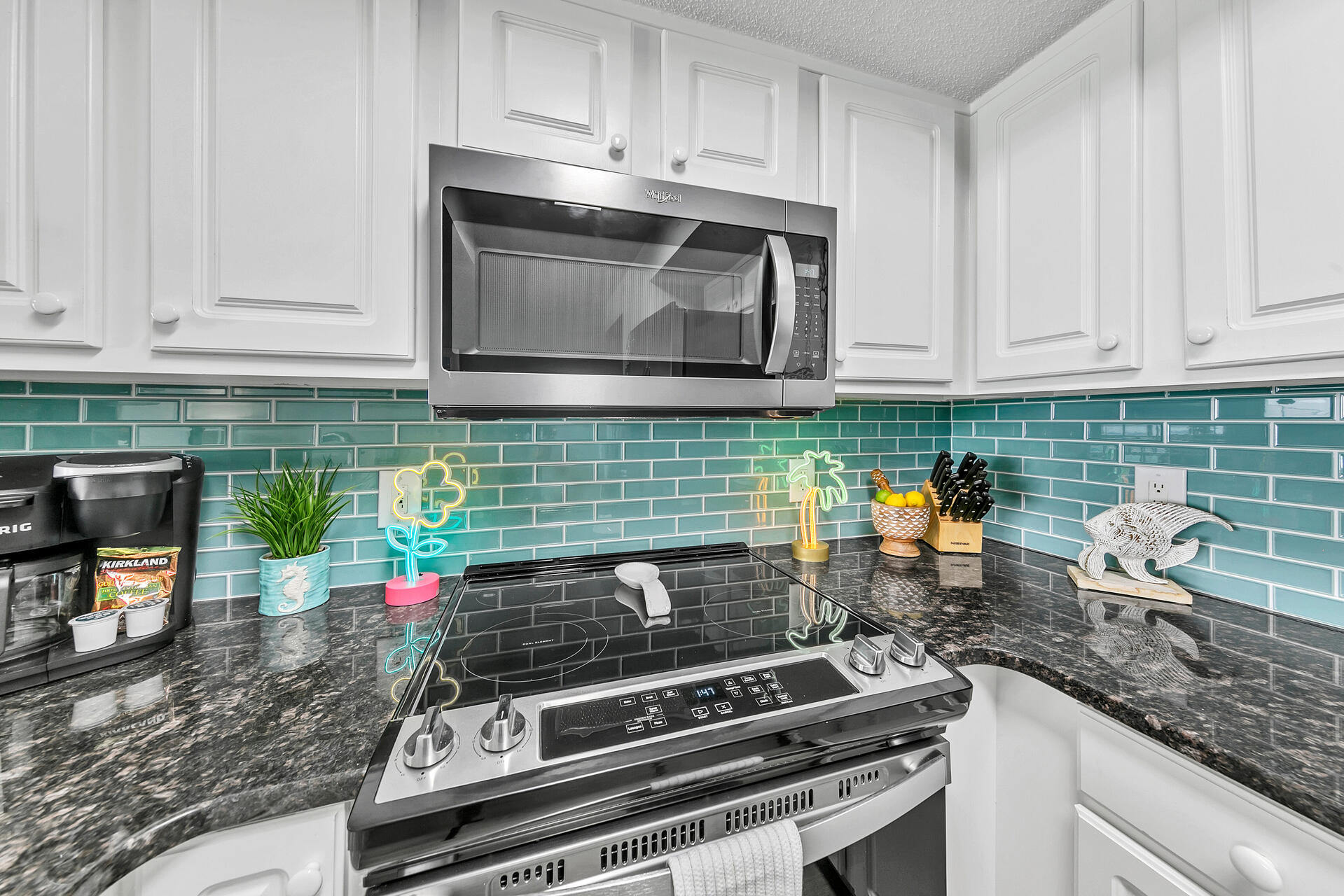 "We were awesomely pleased with the condo. Having a balcony looking out on the beach was super. My daughter and her family were in town and were able to come over and enjoy going to the beach with us. Overall, it was a great time and an excellent condo. We are looking forward to renting it again in the future. I gave Kristine 5 stars, but there were a few minor glitches. First, the balcony had gotten flooded by rain before our arrival. Not the fault of the owner. The balcony came with a weather curtain, which the property management probably should have shut. Second, the washer/dryer didn't work, but we could use my daughter's. Lastly, I admit that the Kuerg dumbfounded me. I could use the single-serve but needed help figuring out the traditional coffee pot section. Those were minor issues that did not detract from our overall excellent experience. Thank you, Kirstine!"