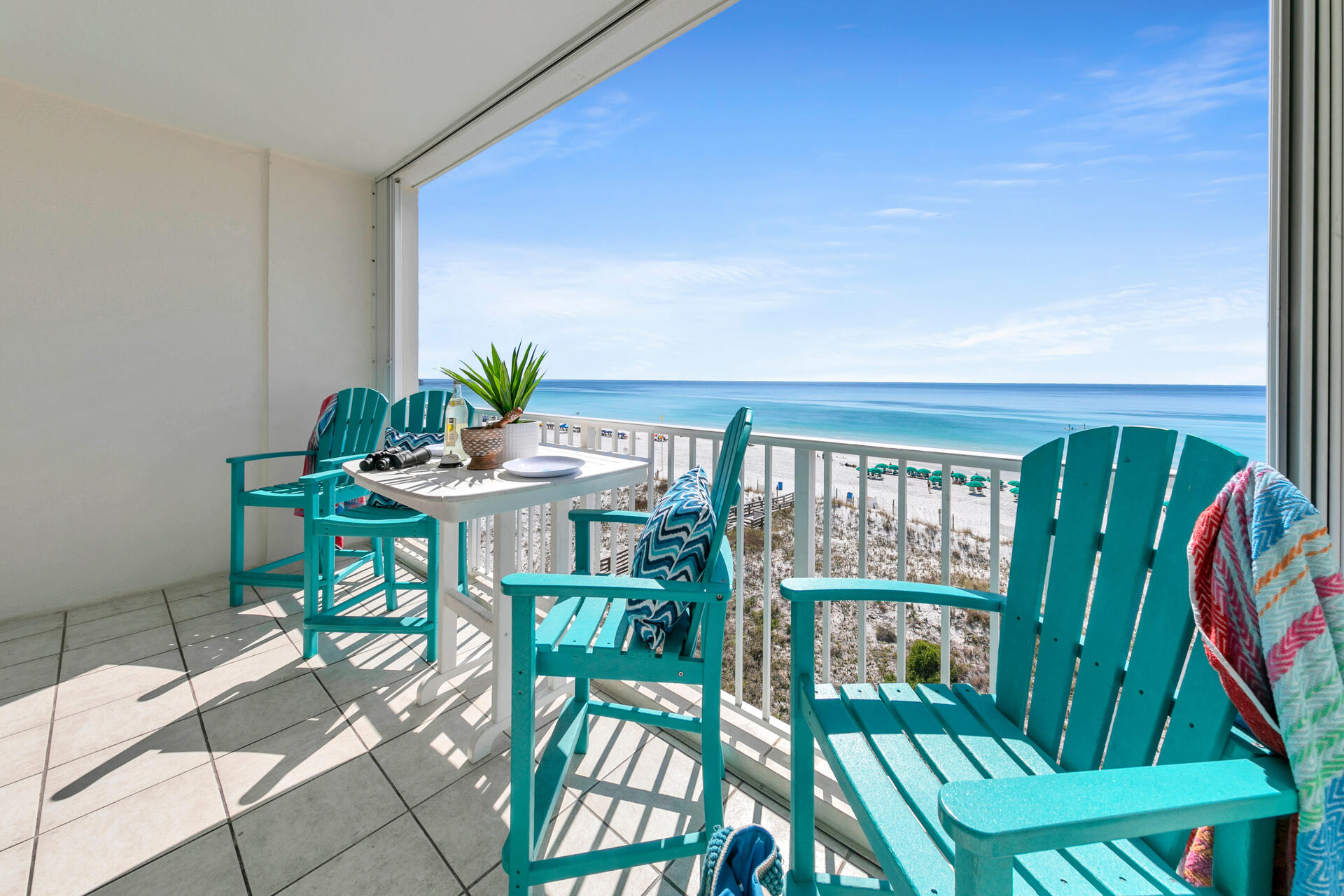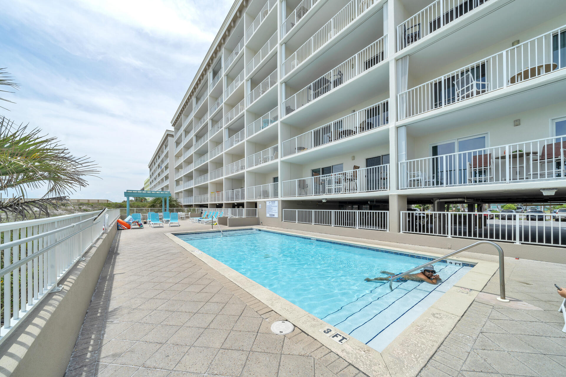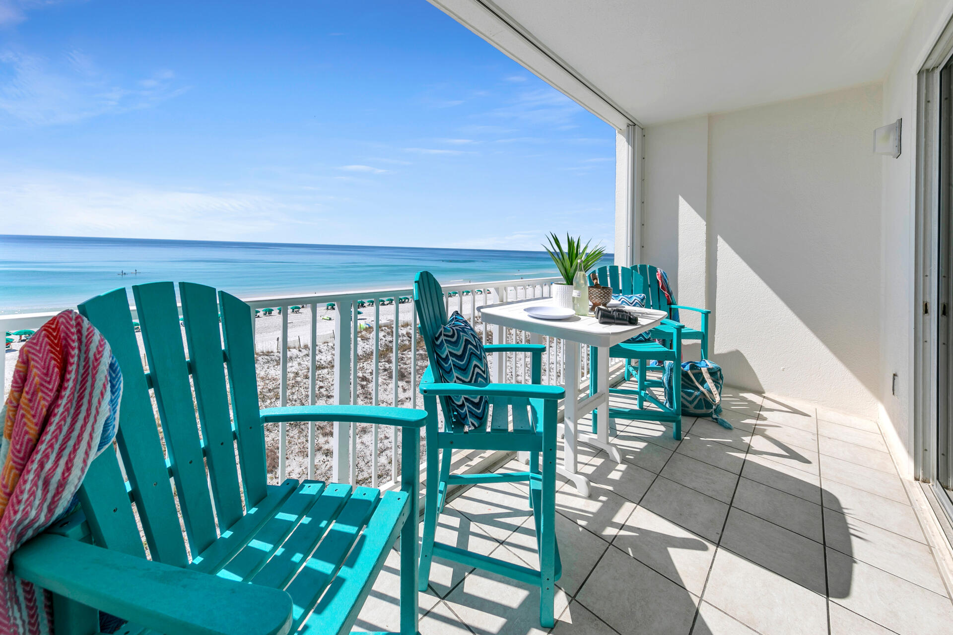 "The beach & ocean are beautiful here. It’s a very short walk to the private beach. The beach chairs service was top notch. You do have to get down to the beach around 7:15 to put a towel on the chairs you want. Being close to the Destin outlet malls along with so many local restaurants was great. The condo was clean & comfortable with a great balcony view. The only thing I was disappointed in was the pool & building itself. It’s needing updated as in cleaning & painting. The pool area is small & plain. Of course you are there for the beach & ocean. Overall a very quiet peaceful place to stay & enjoy."