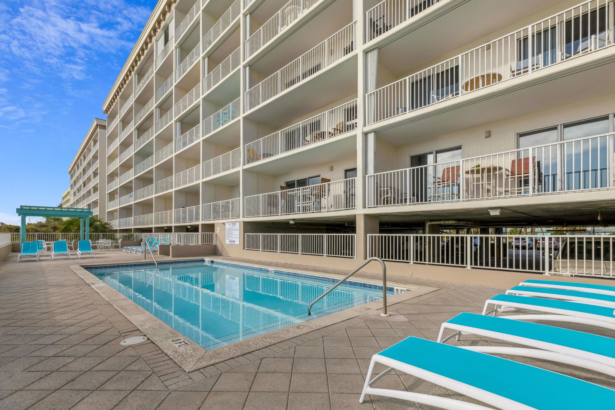 "To celebrate my 30th birthday, I told my husband I wanted something quiet and sunny- and this place was it! We were hesitant when we saw this unit was beside the elevator and above the pool, but we never had an issue with noise. We loved the chair service on the beach (and the guy who ran that was super friendly too!). The balcony provided the most perfect place to watch the sun rise with a book and coffee, and to watch the early morning fishing boats and dolphins. We were able to walk to dinner a few nights, and when we went out parking was never an issue. Our hosts had amazing recommendations, and were very responsive when we had a couple issues. We highly recommend this place!"