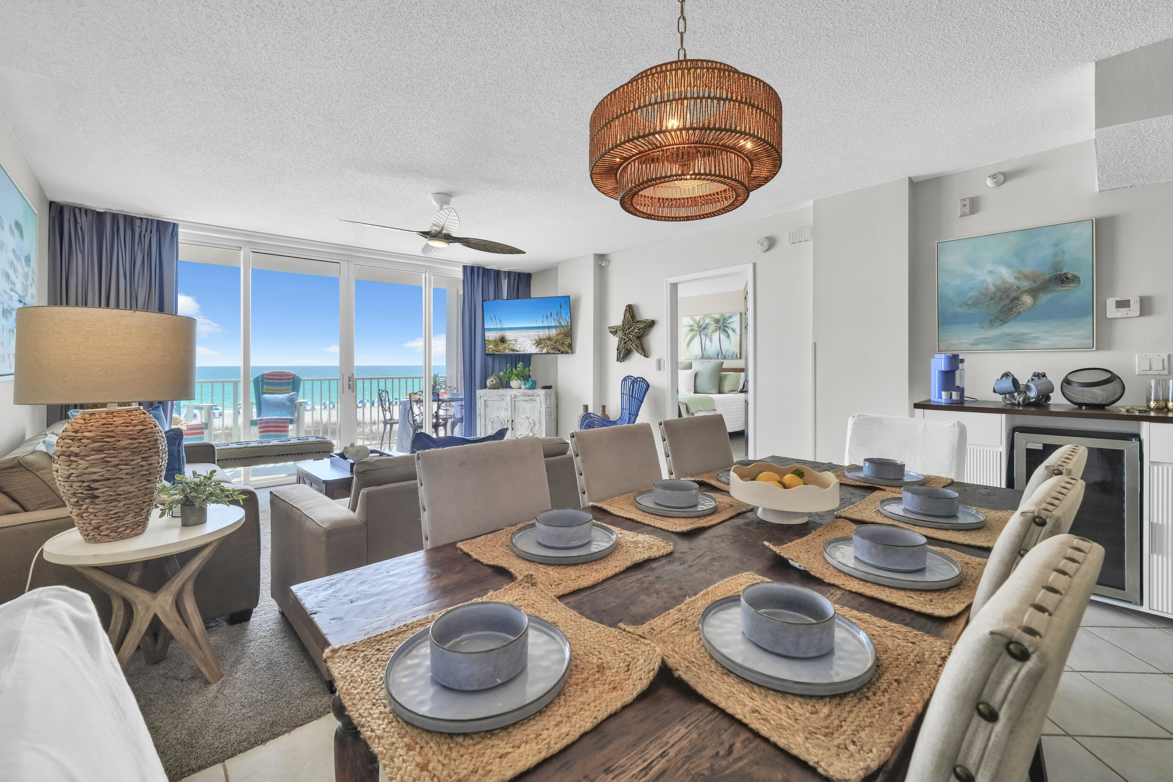 Island Princess 301 – No Shoes Retreat is a stunning third-floor beachfront escape designed for families and groups seeking both comfort and unforgettable Gulf views. This spacious condo features three king suites, each with its own private bathroom, including a Gulf-front master with direct access to the balcony. The inviting living area offers additional sleeping with a sleeper sofa and two rollaways, comfortably accommodating up to 10 guests. Enjoy a fully equipped kitchen, breakfast bar, and dining space perfect for easy meals and gathering together. Step out onto the expansive Gulf-front balcony, complete with bar-height seating—ideal for morning coffee, sunset cocktails, or relaxing to the soothing sound of the waves. Blending coastal charm with modern convenience, No Shoes Retreat is the perfect setting for your next beachfront getaway.