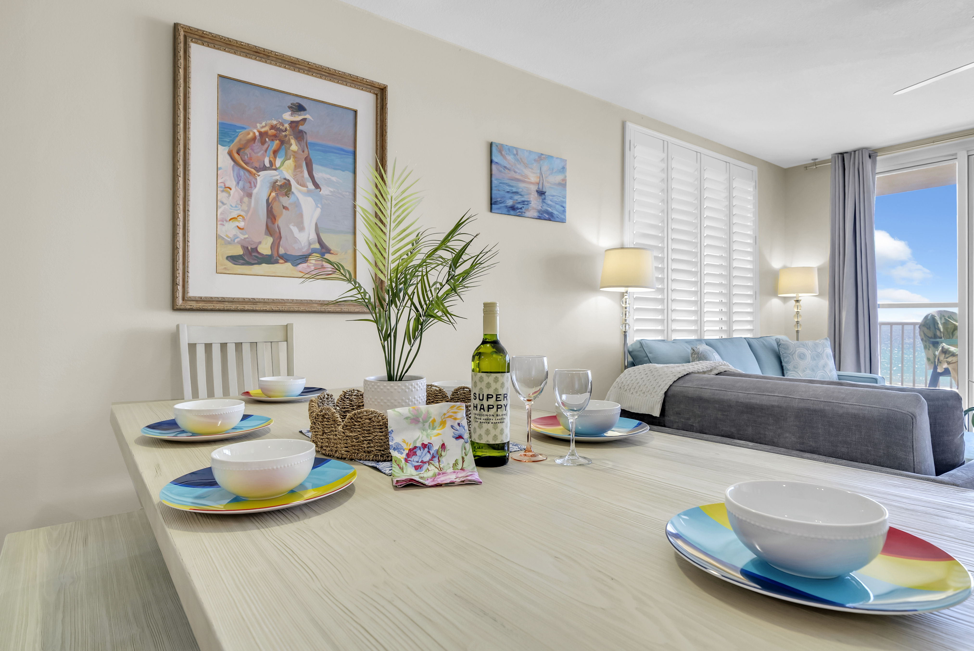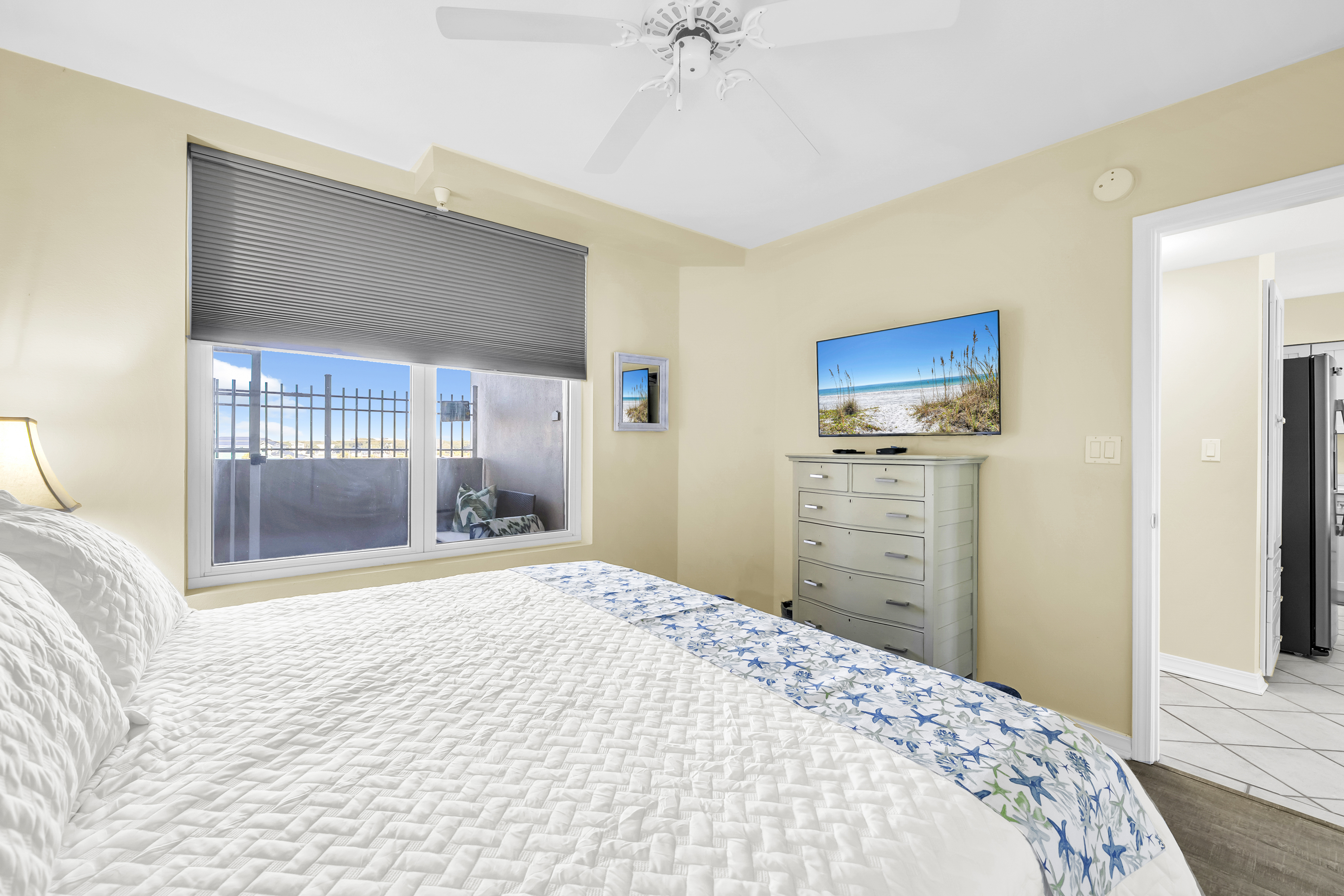 Island Princess 400 – Paradise On The Beach is a fourth-floor coastal retreat ideal for families or groups seeking comfort, convenience, and breathtaking Gulf views. The condo features 3 spacious king suites, each with its own private bathroom, including a master bedroom with private balcony access overlooking the Gulf. A full-sized sleeper sofa and twin sleeper chair in the living room allow the home to comfortably accommodate up to 9 guests. The fully equipped kitchen, breakfast bar, and dining area make meals effortless, while the spacious Gulf front balcony with bar height Polywood furniture offers a stunning setting for morning coffee, sunset views, or simply unwinding to the sound of the waves. Paradise On The Beach blends luxury, convenience, and coastal charm for a truly memorable beachfront getaway.