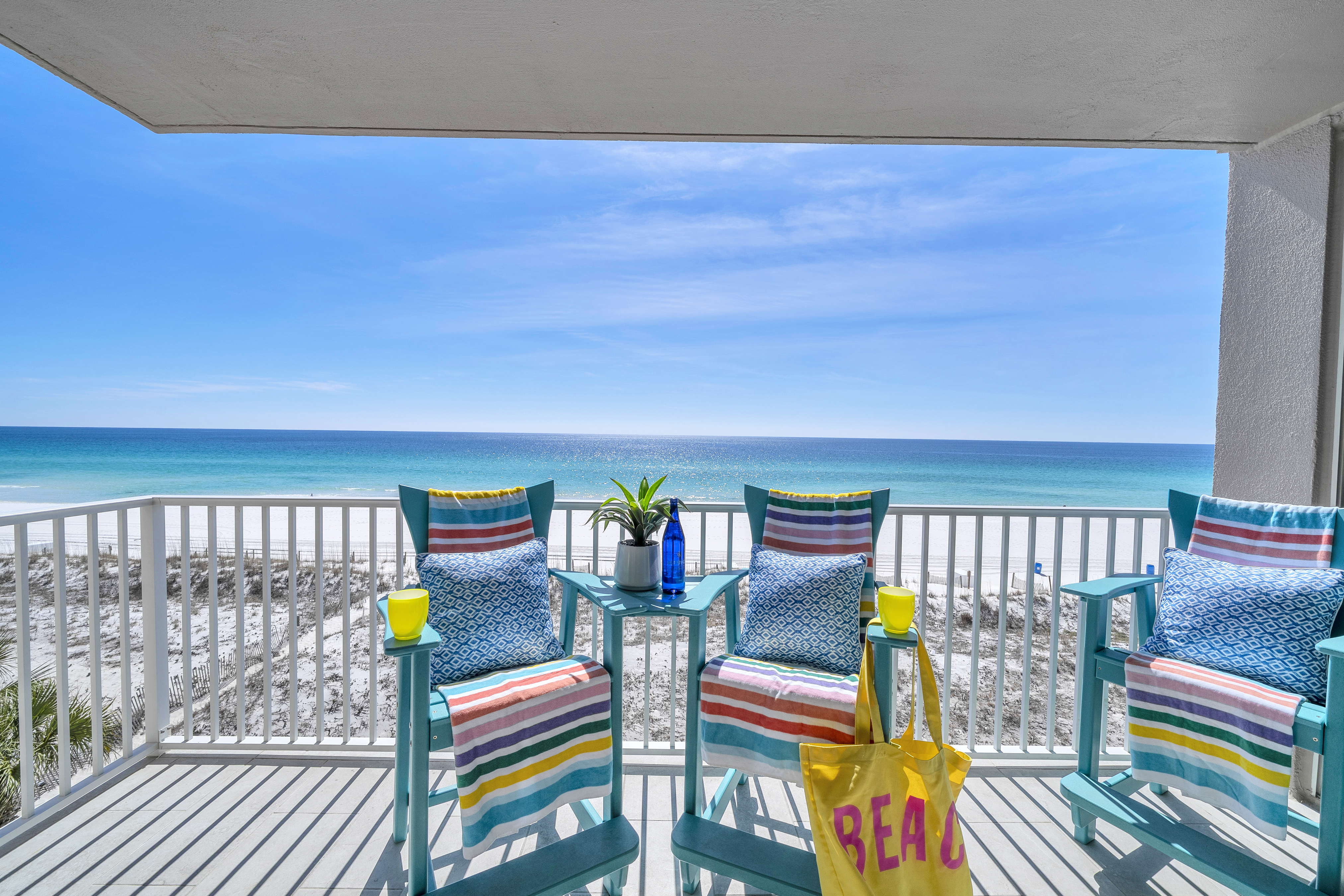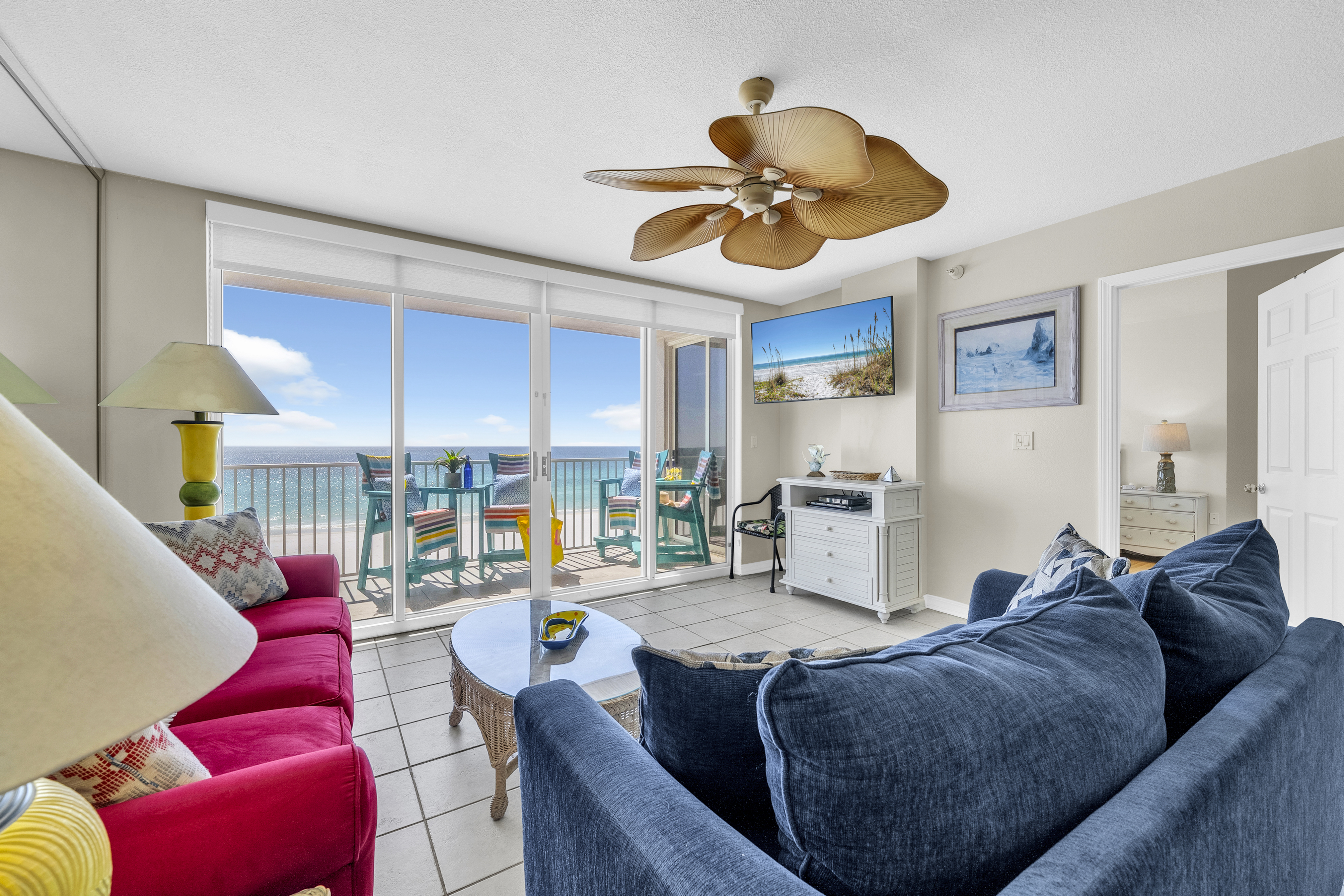 Island Princess 501 – Royal Lookout is a fifth-floor coastal retreat ideal for families or groups seeking comfort, style, and sweeping Gulf views. Featuring 3 spacious suites, including a master suite with private balcony access overlooking the ocean, this beautifully appointed condo comfortably accommodates up to 8 guests. The fully equipped kitchen, breakfast bar, and dining area make meals effortless, while the Gulf front balcony offers a stunning setting for morning coffee, sunset views, or simply unwinding to the sound of the waves. Royal Lookout blends luxury, convenience, and coastal charm for a truly memorable beach escape.
