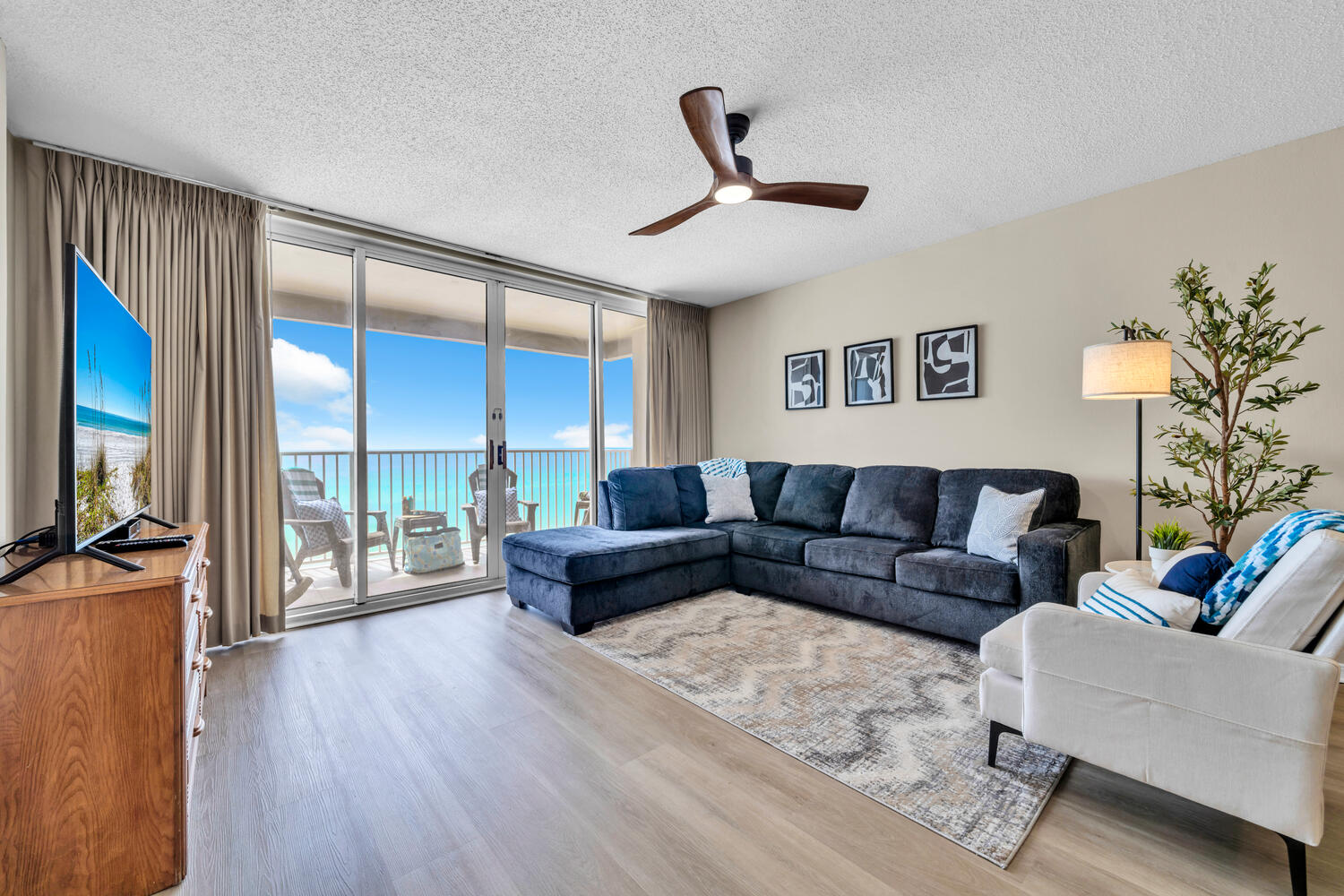 "The place was very nice and so was the view! Right on the beach! My 6 year old daughter enjoyed sleeping on the little daybed in the main bedroom where we slept. My mom went with us, so it was great that she had her room with her own bathroom. They had an option to rent a pack n play so we did that for my 17 month old son. It was a newer one, and they provided linens for it as well. I was very impressed with the ease of communication with the owners/mgmt. There were several times before the trip where I reached out. I had fast responses every time! We would definitely stay here again!"