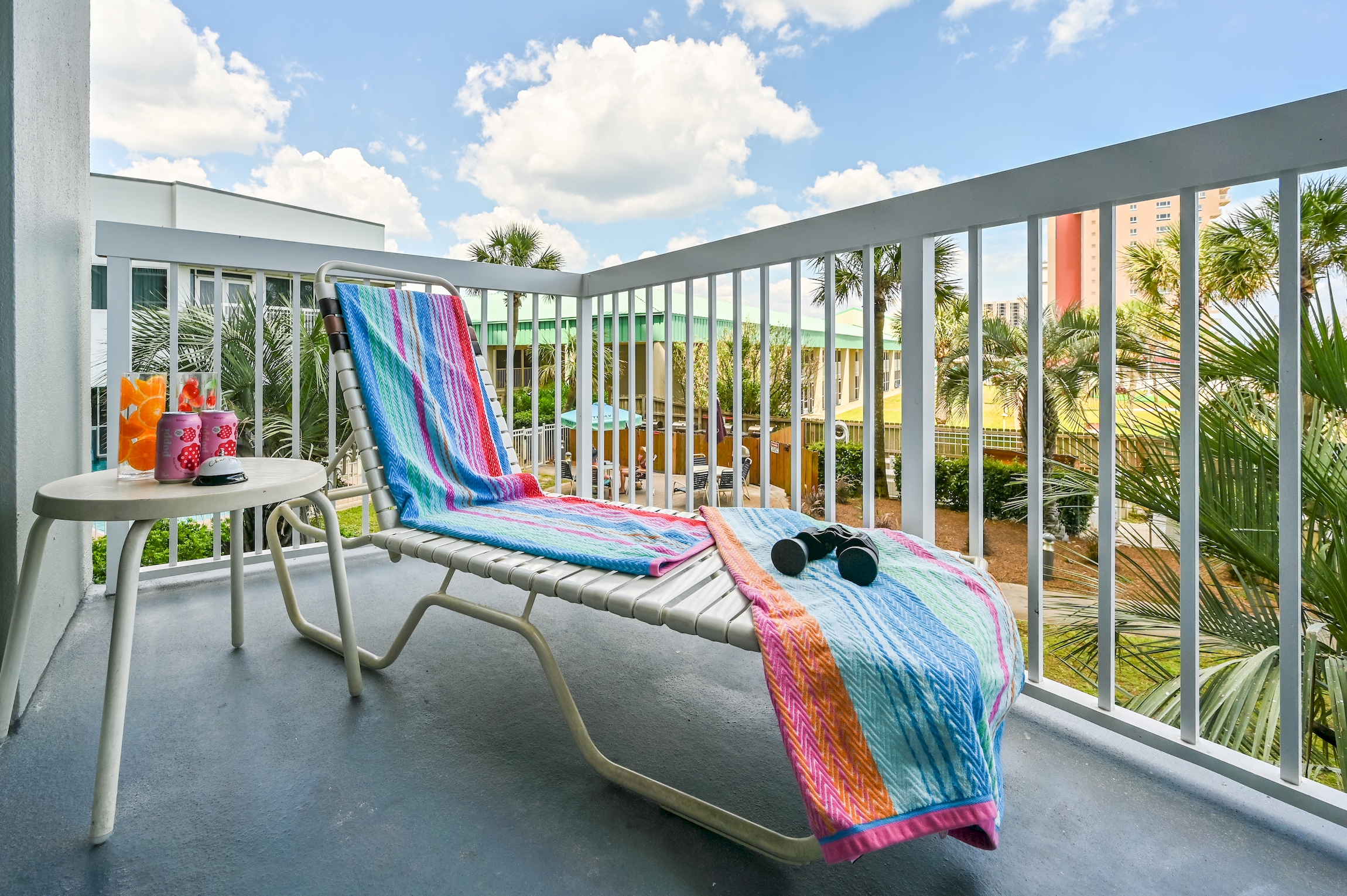 Thanks, Zhanna! I'm so glad you enjoyed your stay at Pelican Beach 215! We do send all of our guests advance notice to reserve chairs early and request the front row during the busy season! I hope to host you again on your next beach vacation - please reach out to me if you want me to recommend a lower density location! Thanks!