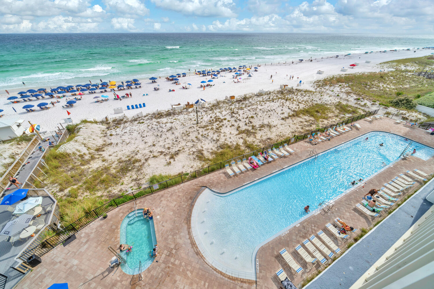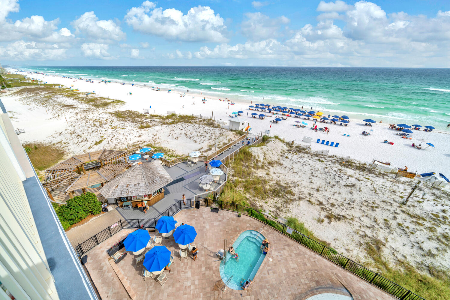 "This condo is beautiful and right on the beach as advertised. You have the option to rent chair and umbrella from a local company. Also has 3 wonderful pools for kids and adults and a tiki bar that you can walk up and order right by the beach. Loved it and will stay again!"