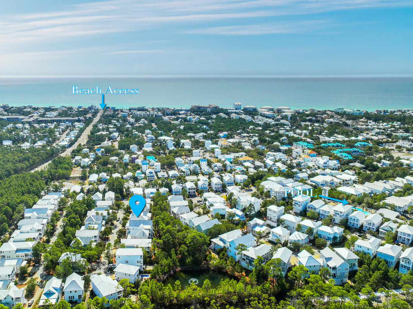 Thanks, Falviu - I am so glad you enjoyed your beach vacation in Blue Mountain Beach! I have photos on the listing and info in the home to show how to access the beach quickly - we have a shortcut path that takes you right to the beach access in minutes. I am so sorry you missed that information - I will be sure to post that information in an easier to see location in the house so one else has that confusion. It is a quick 5-10 minute walk via the shortcut. Thanks again!