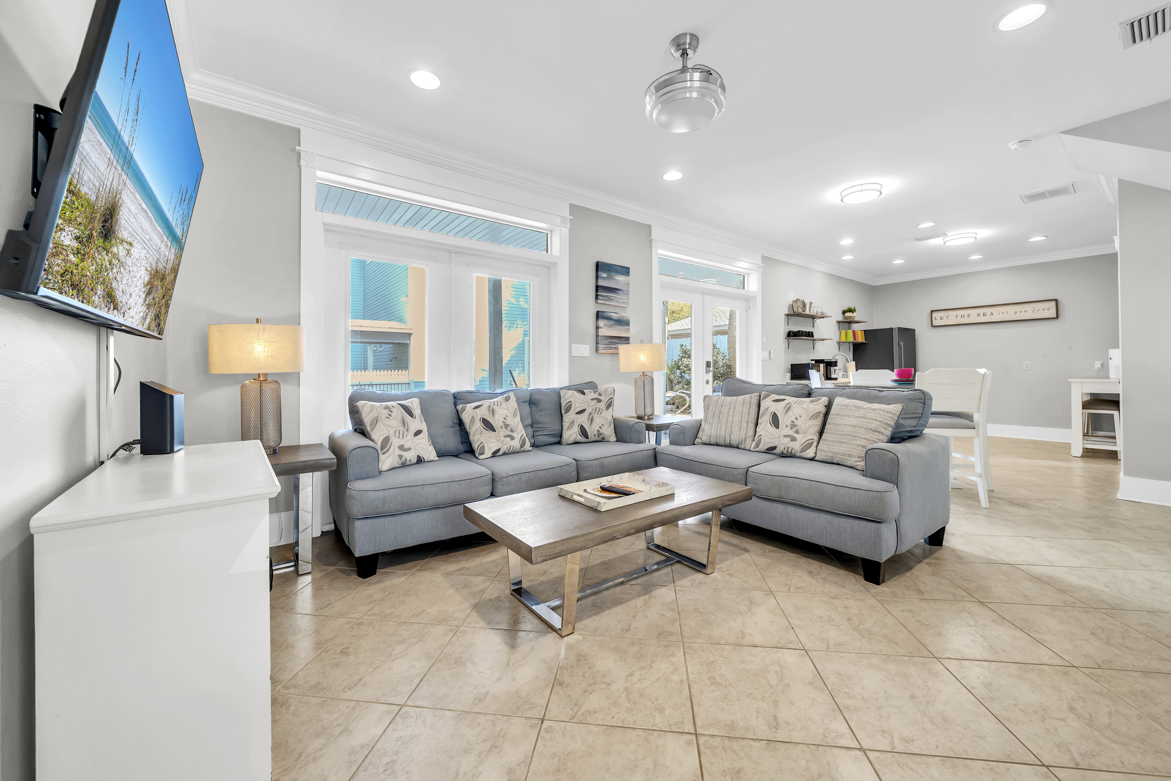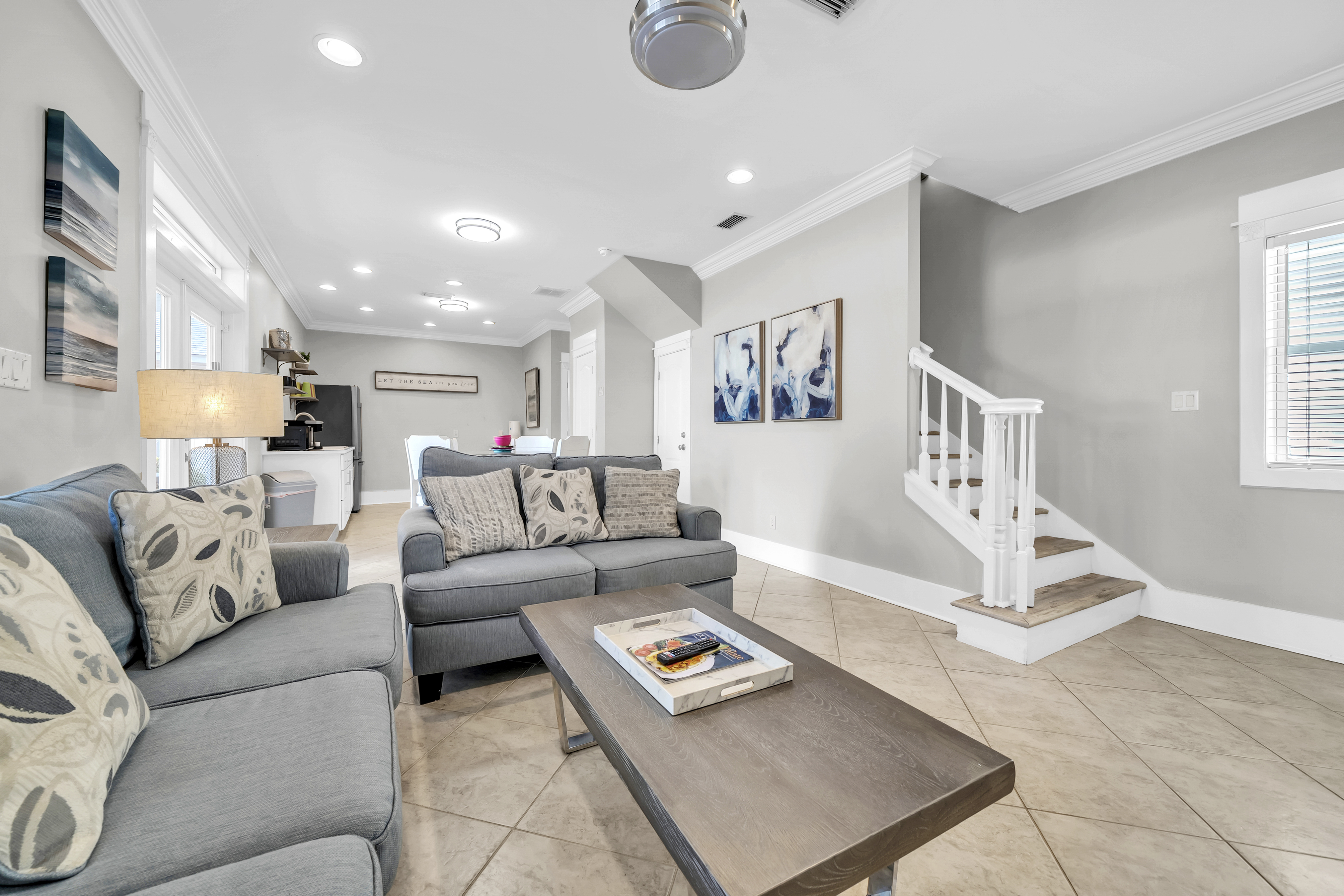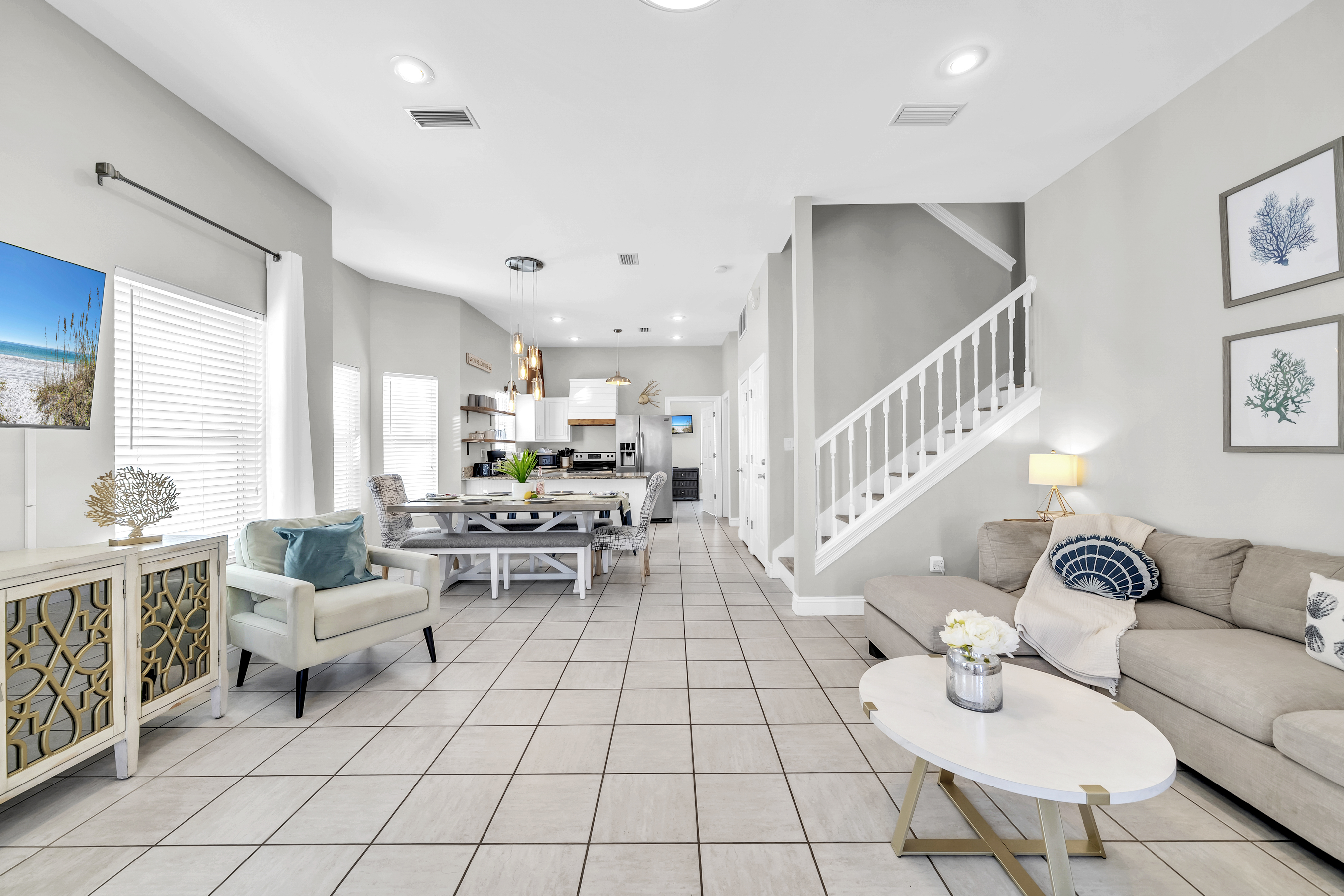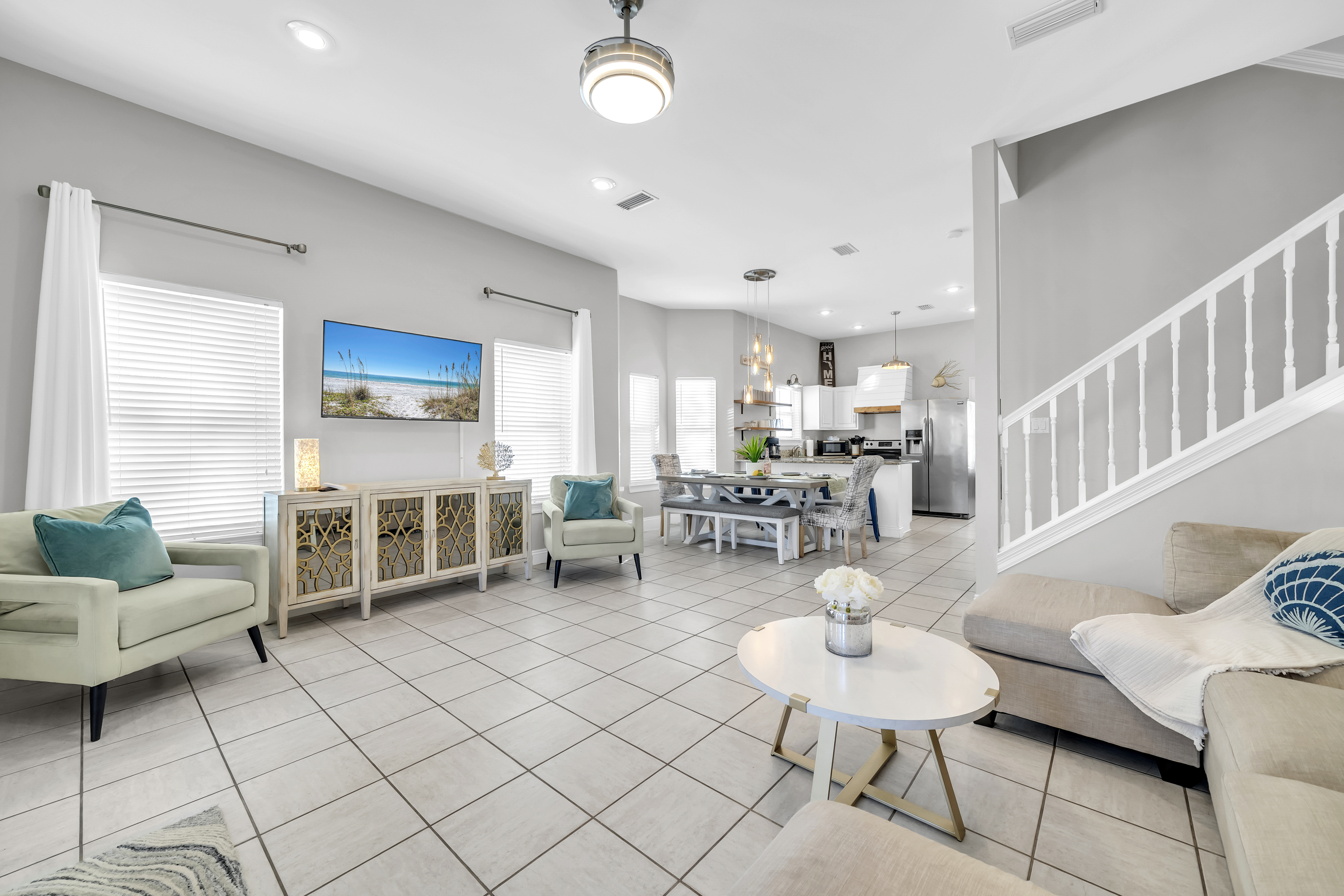 Saltwater Social Club is a beautiful 5-bedroom, 5 and a half-bathroom coastal retreat that comfortably sleeps up to 16 guests, located in the heart of Miramar Beach just moments from the shoreline.