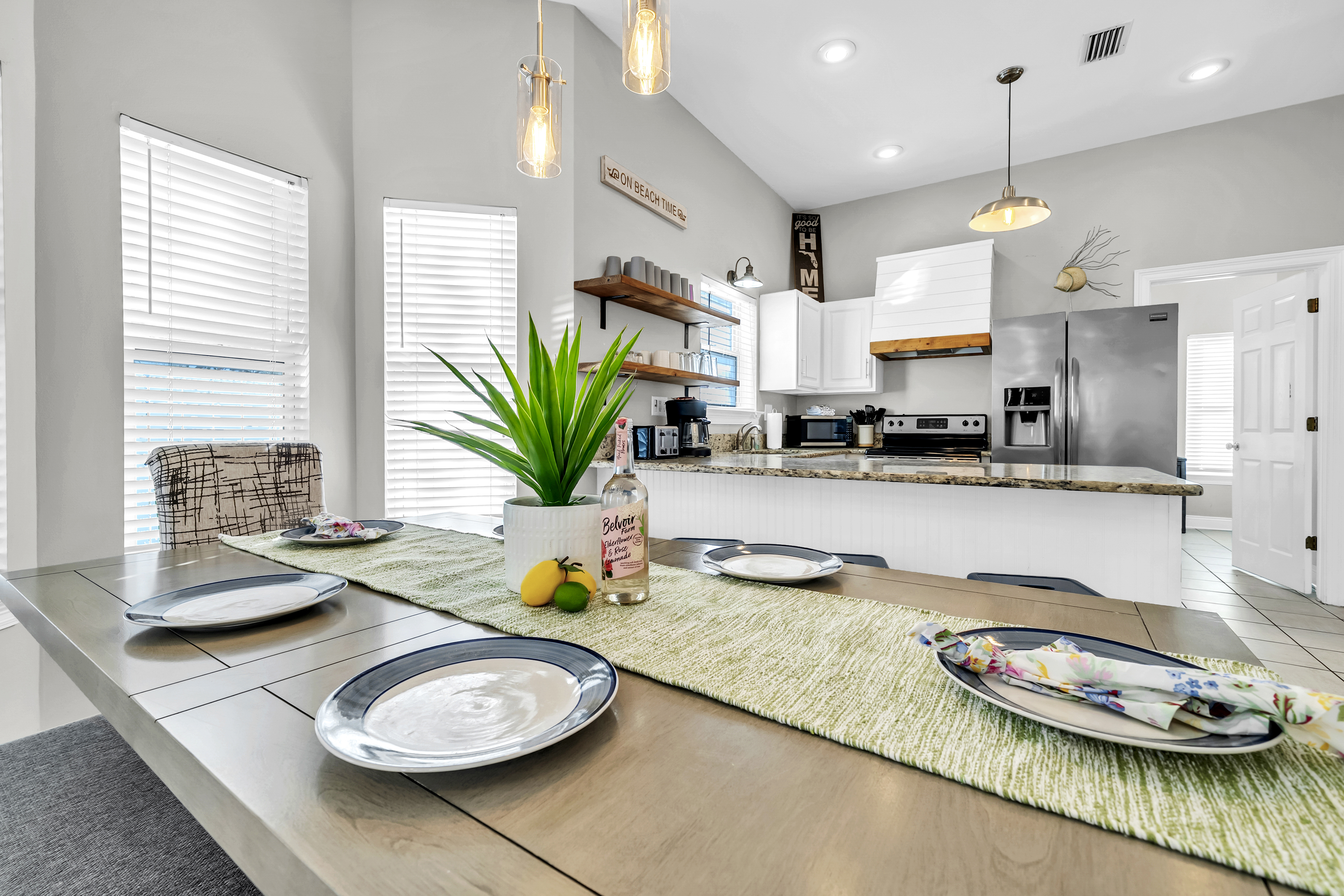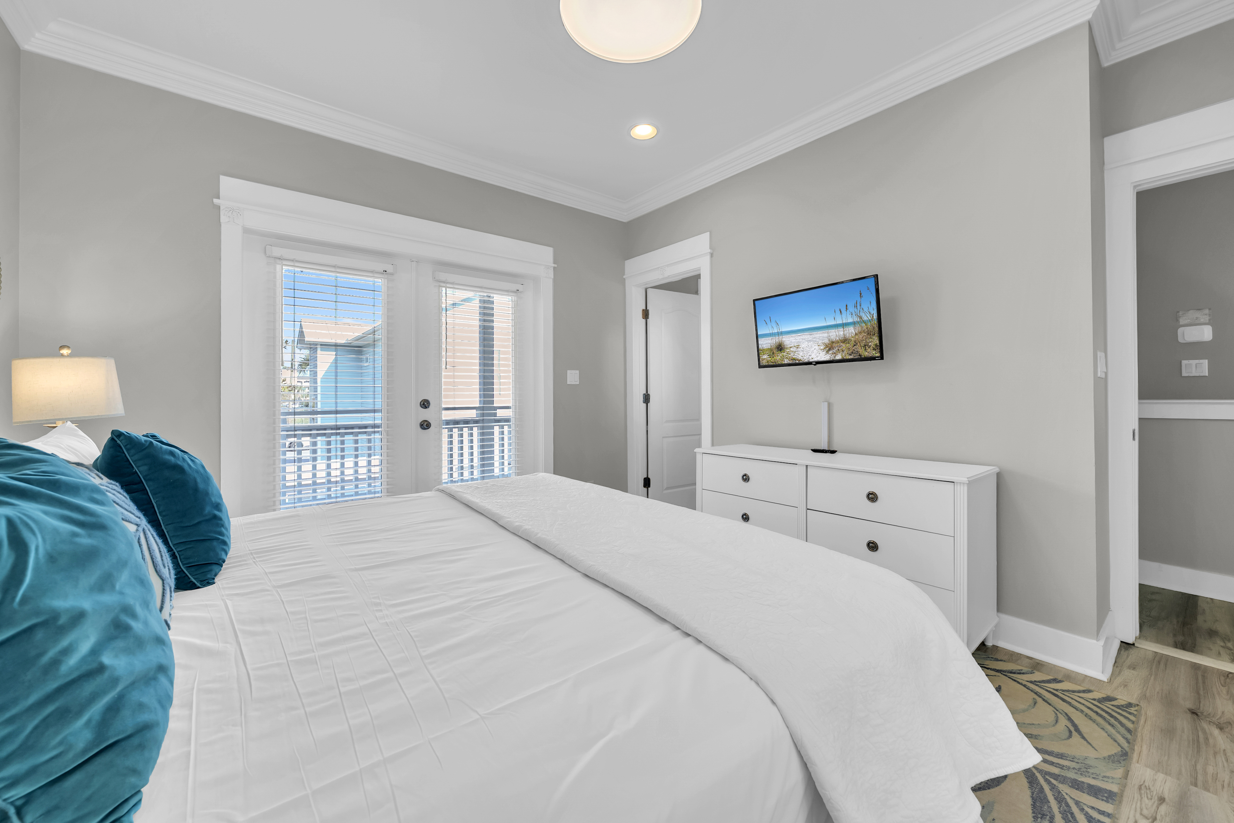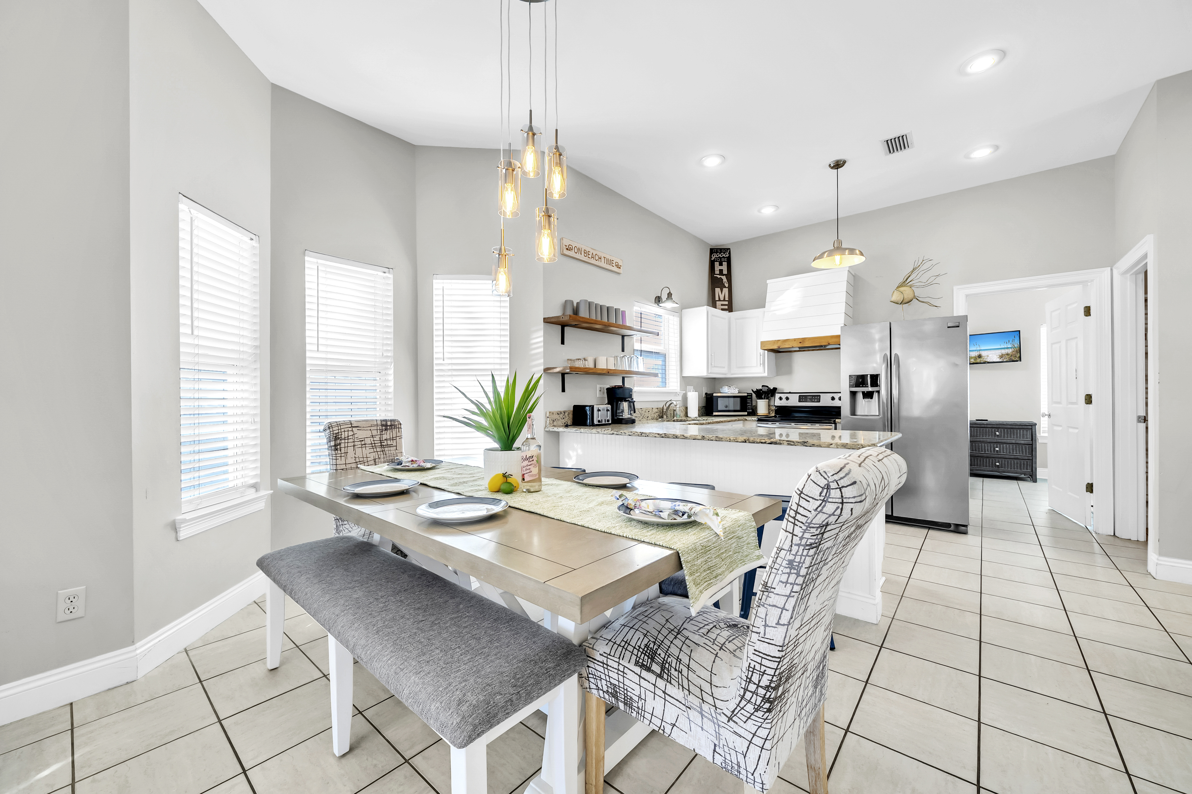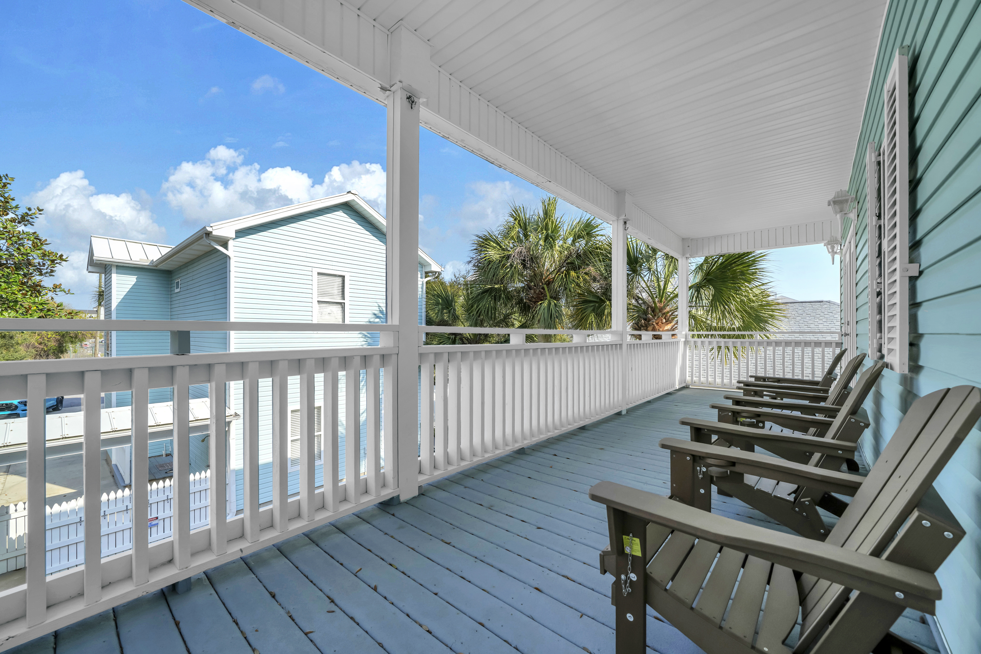 The backyard haven sets the tone for relaxed days and lively evenings. The private pool is surrounded by loungers for sun-filled afternoons, while covered patio offers cushioned lounge seating, an outdoor dining area, and a grill for casual meals at home. A balcony overlooking the backyard provides another spot to unwind and take in the coastal breeze. Scenic Gulf Drive Regional Beach Access is just a 3-minute walk away, while South Walton Public Beach Access includes parking availability only a short drive from the home. Guests can also enjoy nearby favorites like Pompano Joe’s, Surf Hut, and Captain Dave’s along the coast. With its spacious layout and prime location near the Gulf, Saltwater Social Club delivers a relaxed and memorable Miramar Beach escape.