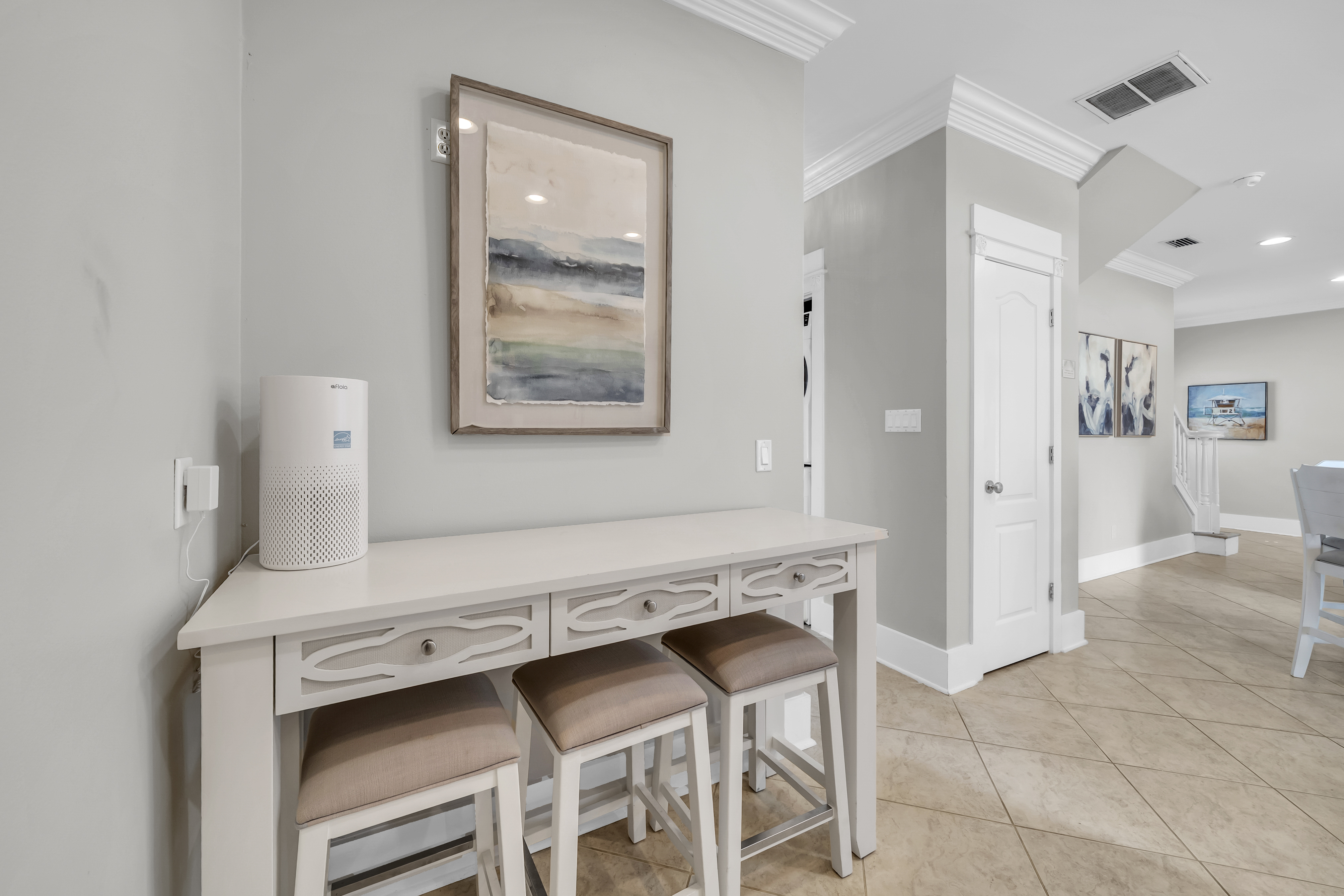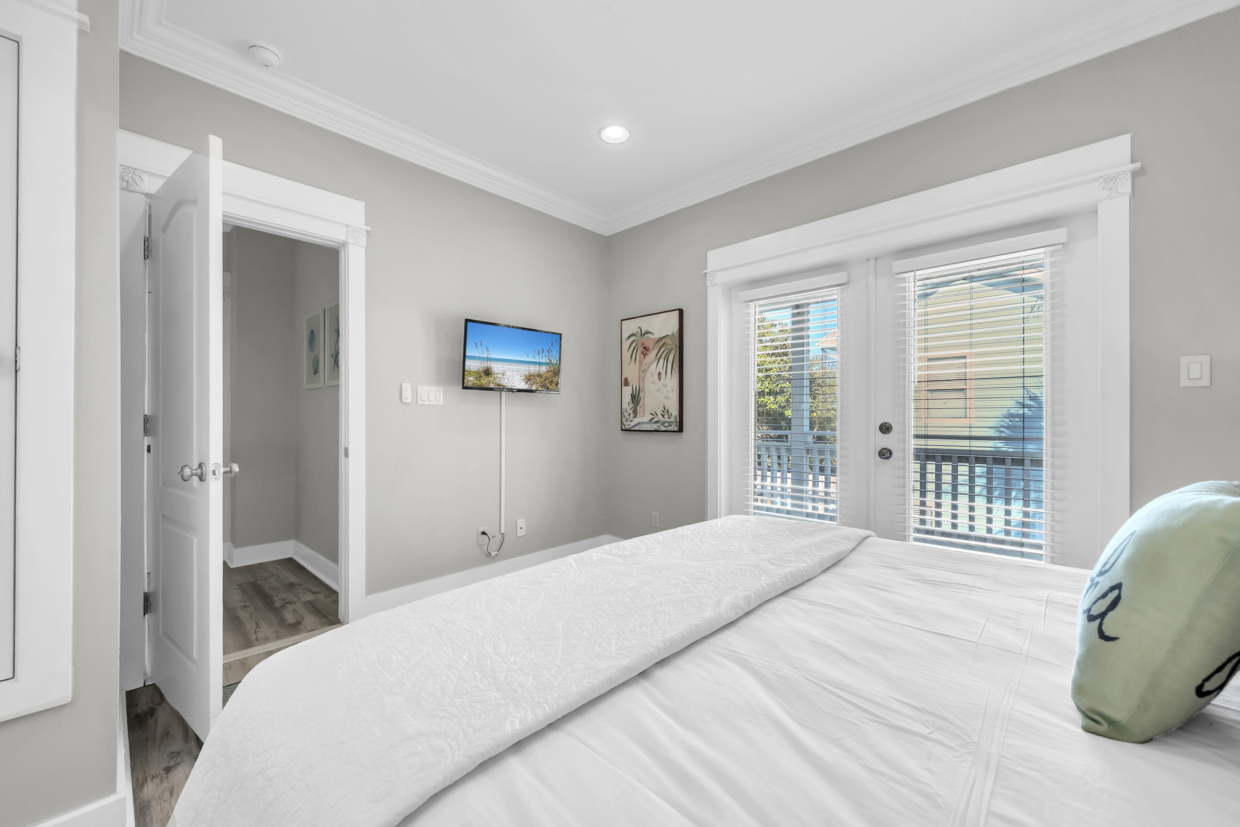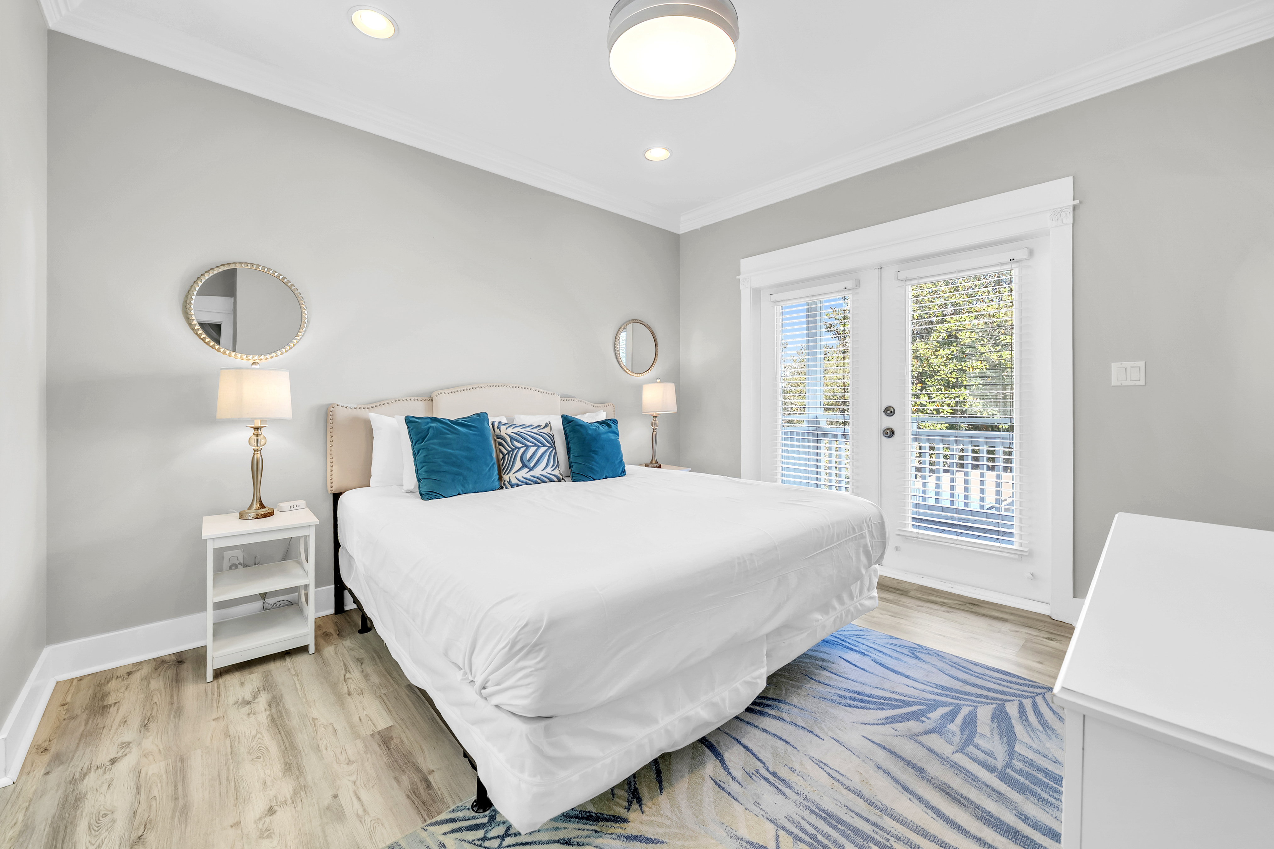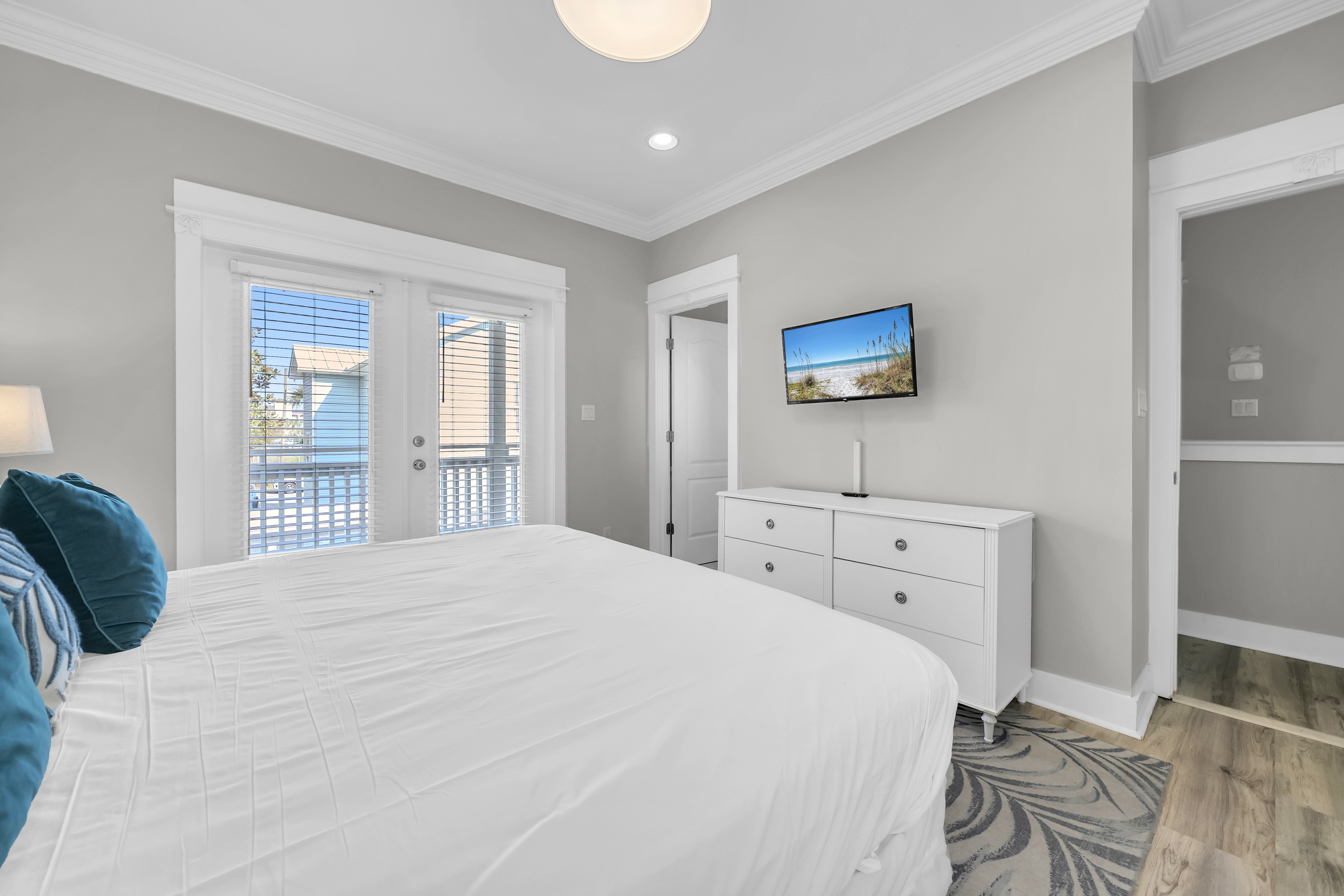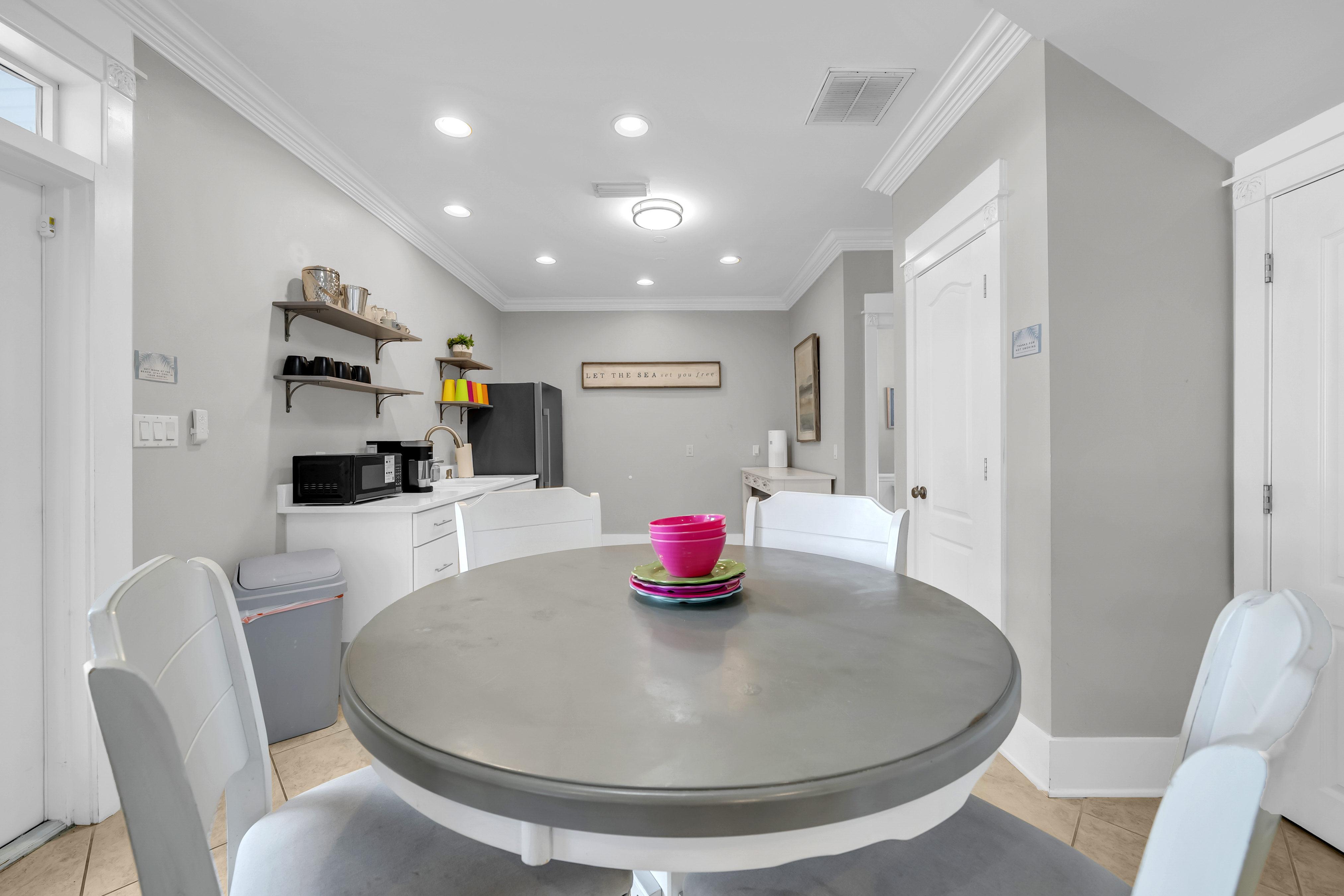 The backyard haven sets the tone for relaxed days and lively evenings. The private pool is surrounded by loungers for sun-filled afternoons, while covered patio offers cushioned lounge seating, an outdoor dining area, and a grill for casual meals at home. A balcony overlooking the backyard provides another spot to unwind and take in the coastal breeze. Scenic Gulf Drive Regional Beach Access is just a 3-minute walk away, while South Walton Public Beach Access includes parking availability only a short drive from the home. Guests can also enjoy nearby favorites like Pompano Joe’s, Surf Hut, and Captain Dave’s along the coast. With its spacious layout and prime location near the Gulf, Saltwater Social Club delivers a relaxed and memorable Miramar Beach escape.