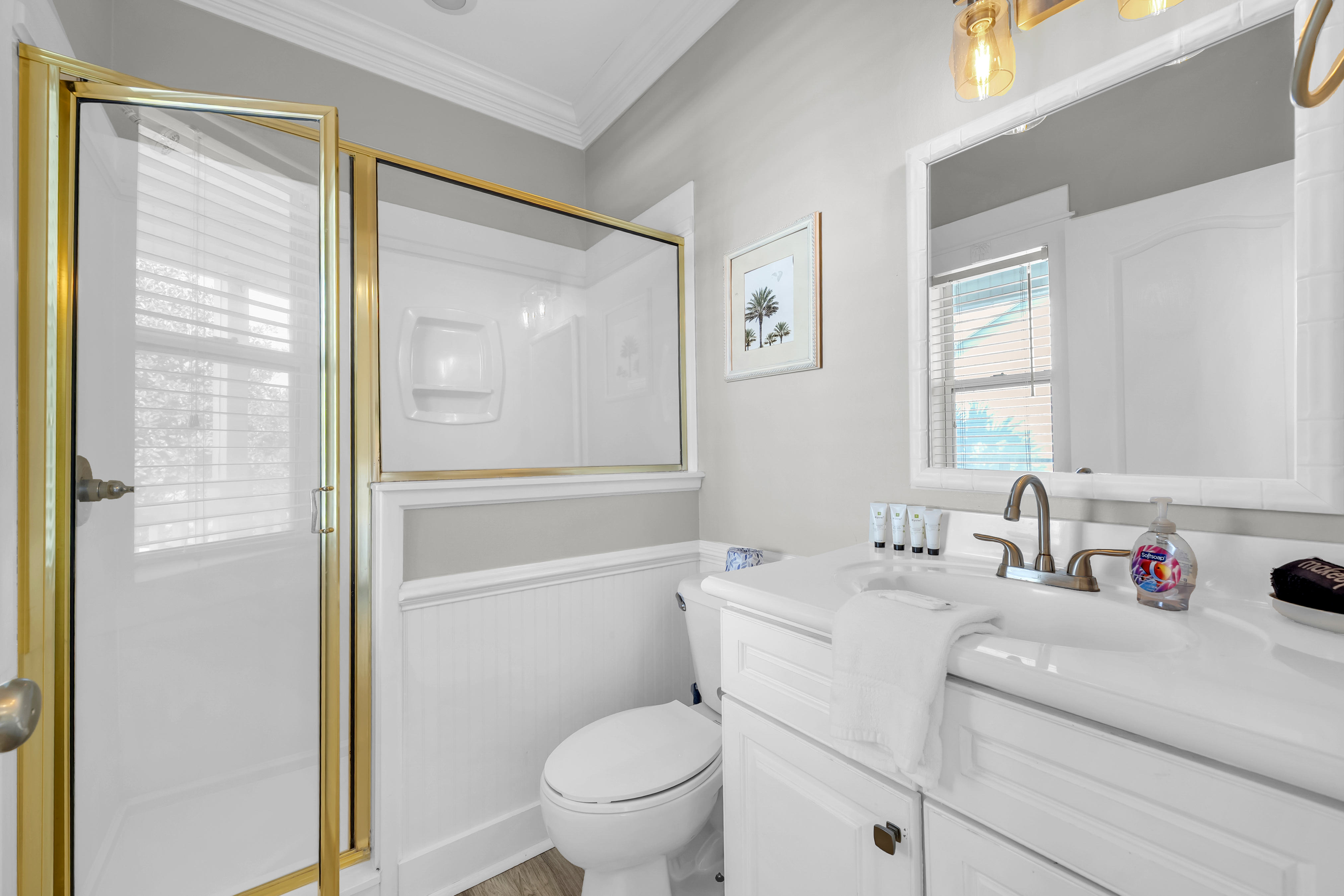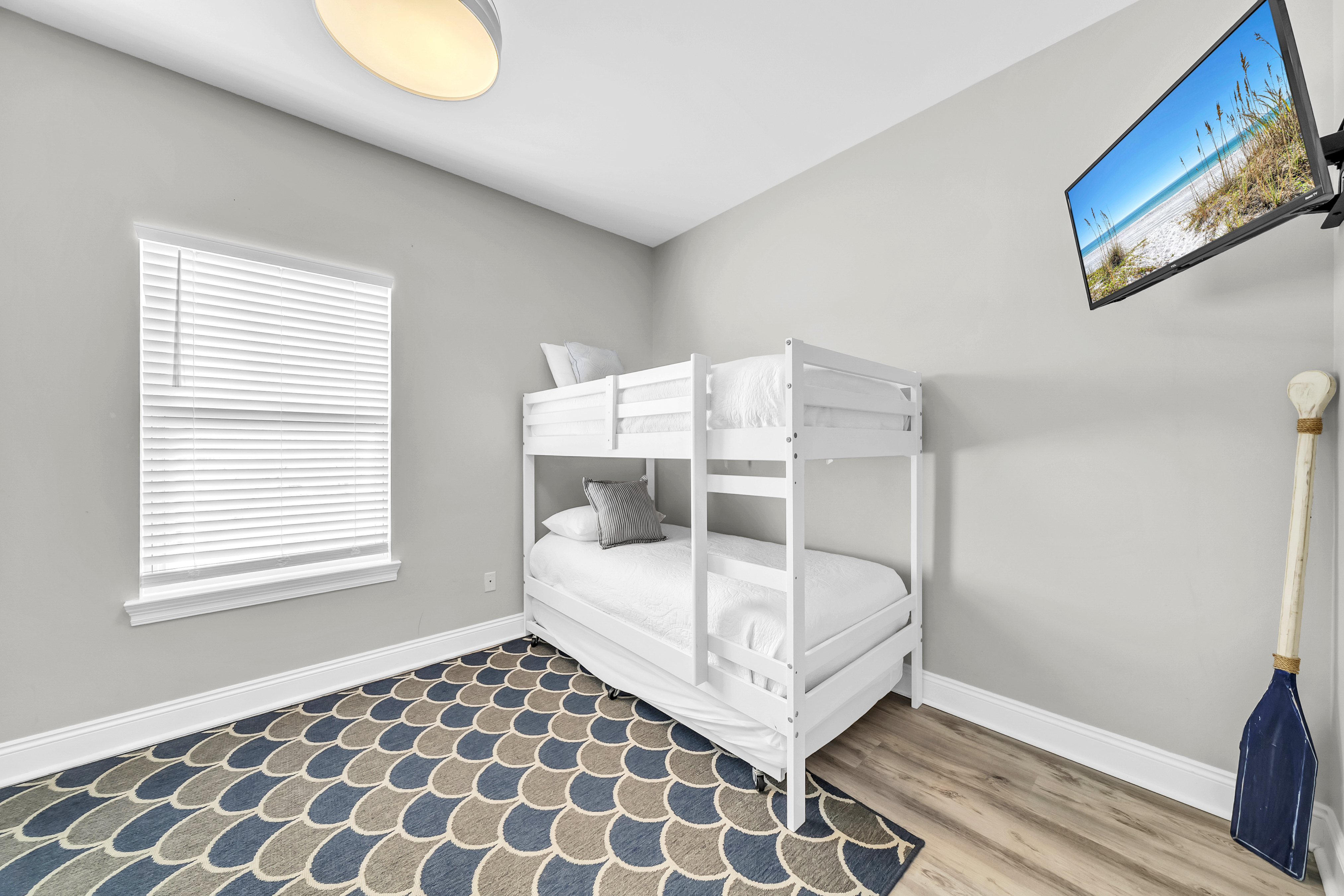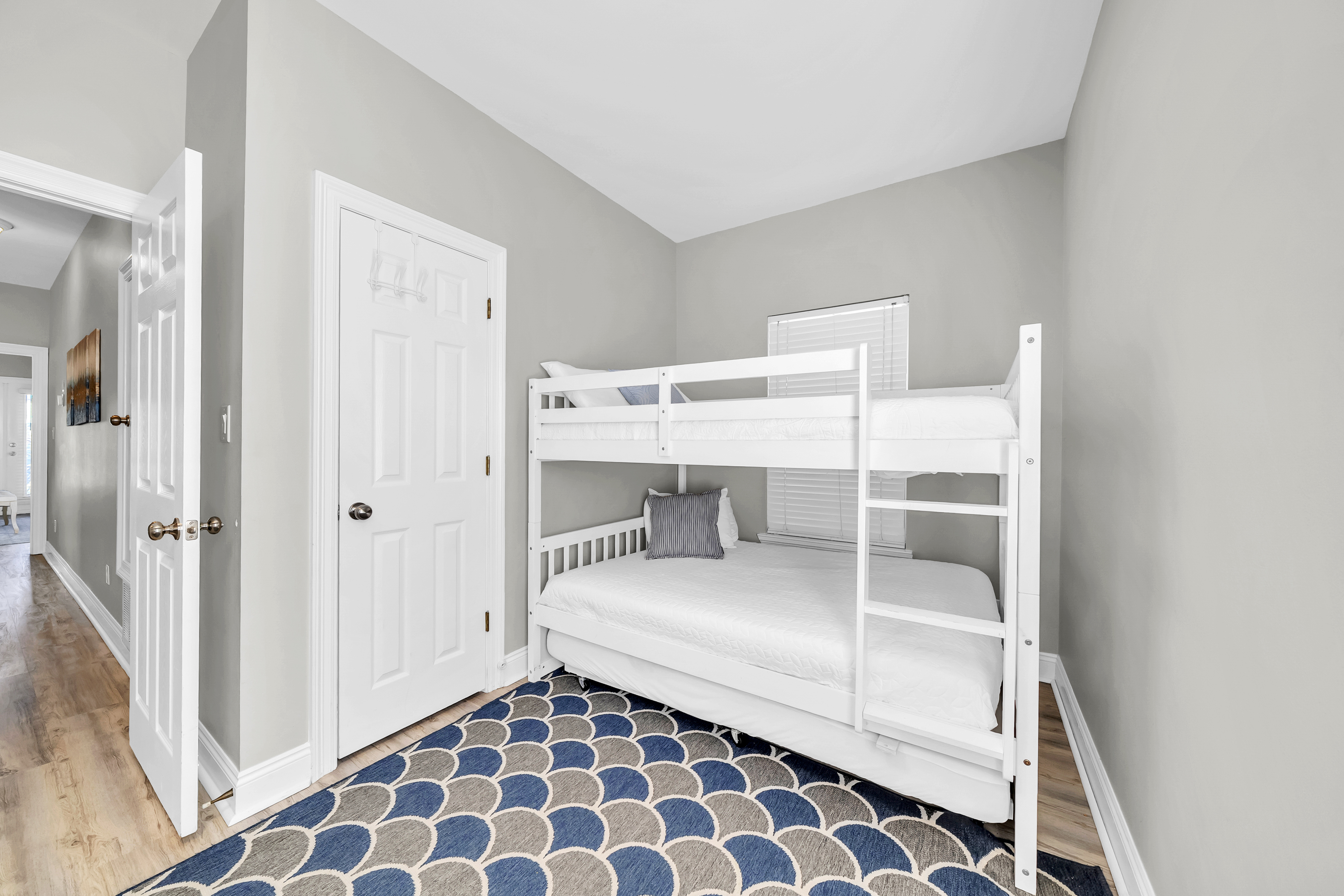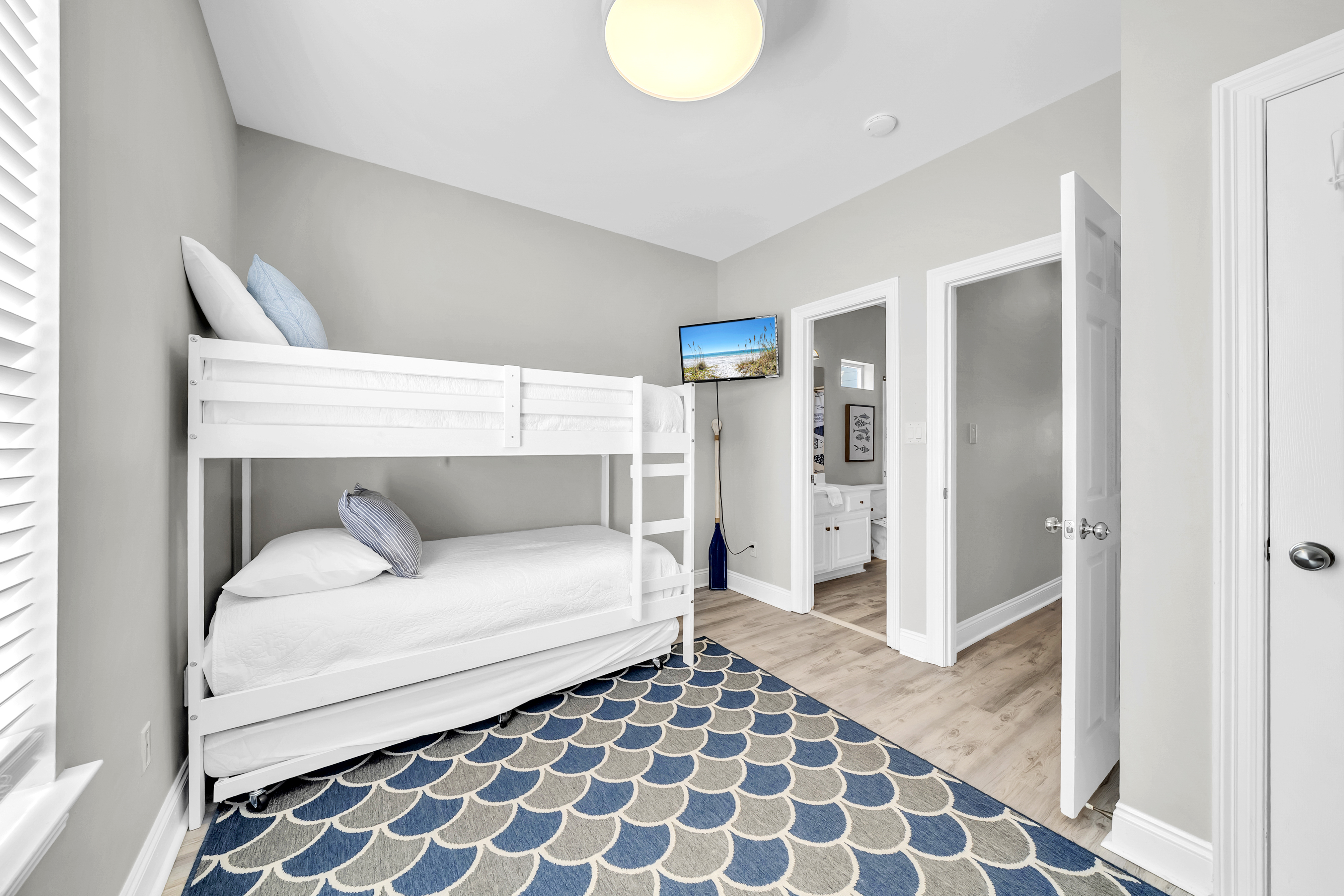 Bunk Bedroom: Perfect for kids, the bunk room offers plenty of space with a full/full bunk, a twin/twin bunk, and 2 convenient trundles, making it an ideal spot for movie night or winding down after a day in the sun. There is a private bathroom attached with dual vanities and a shower/bathtub combination.