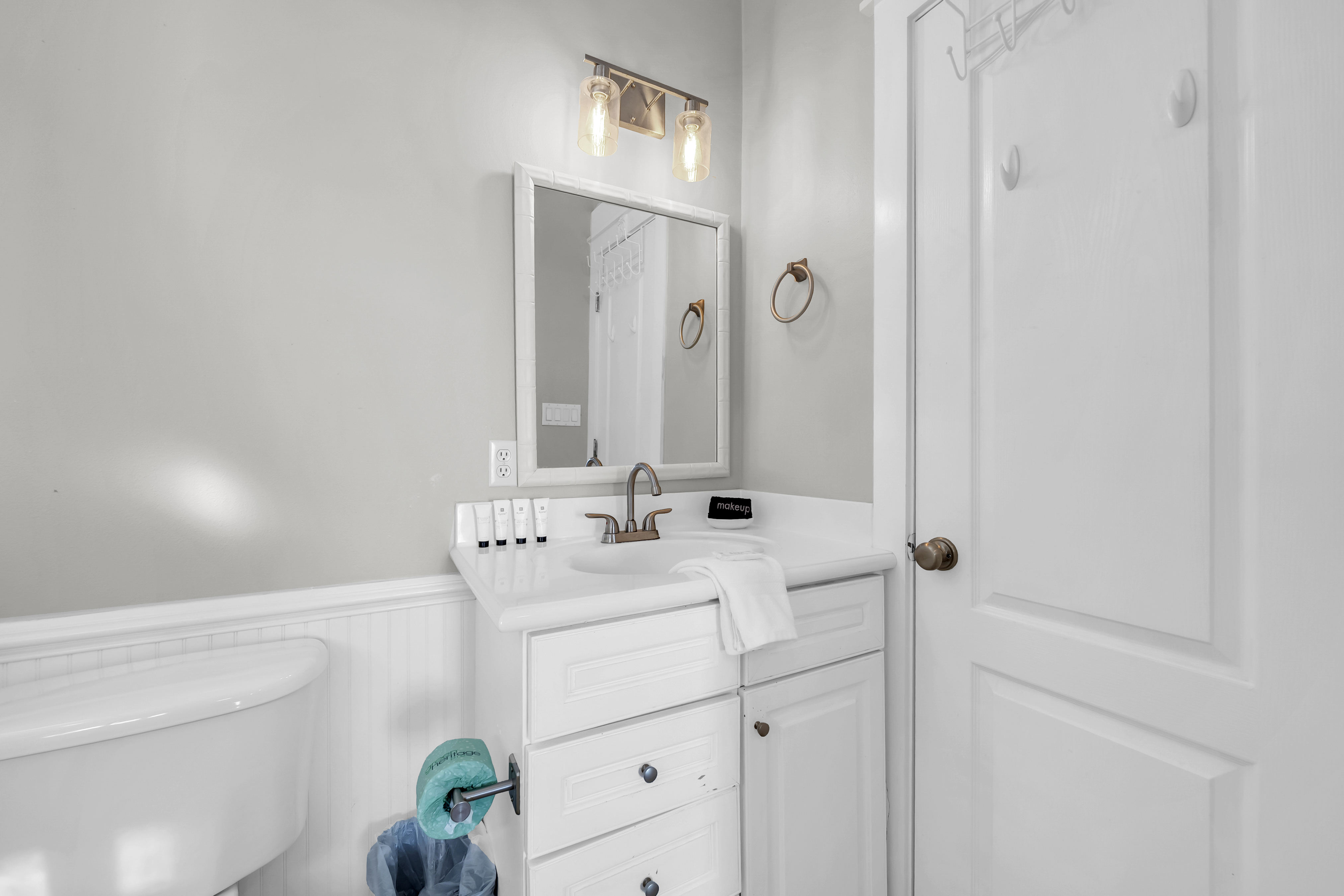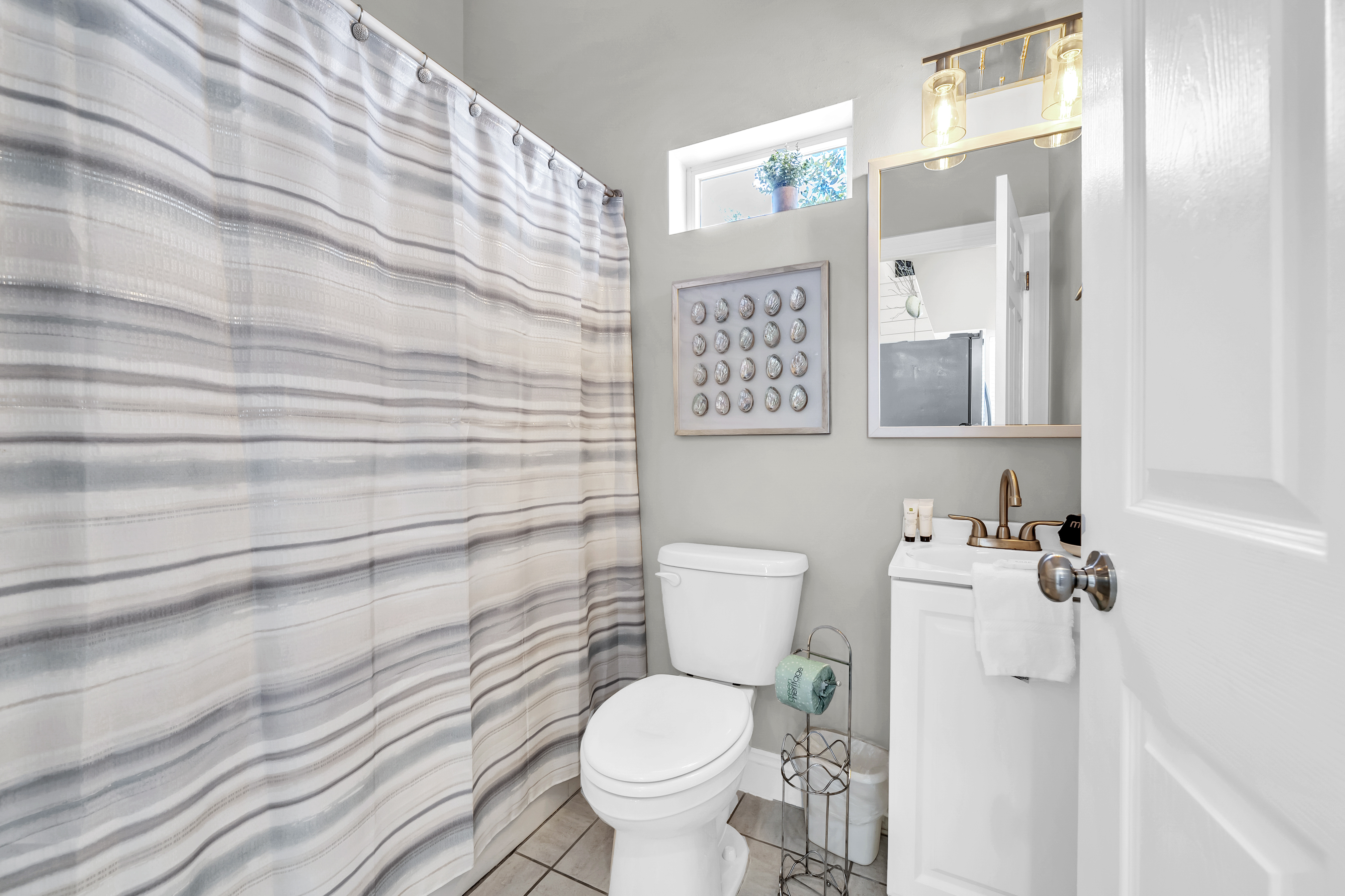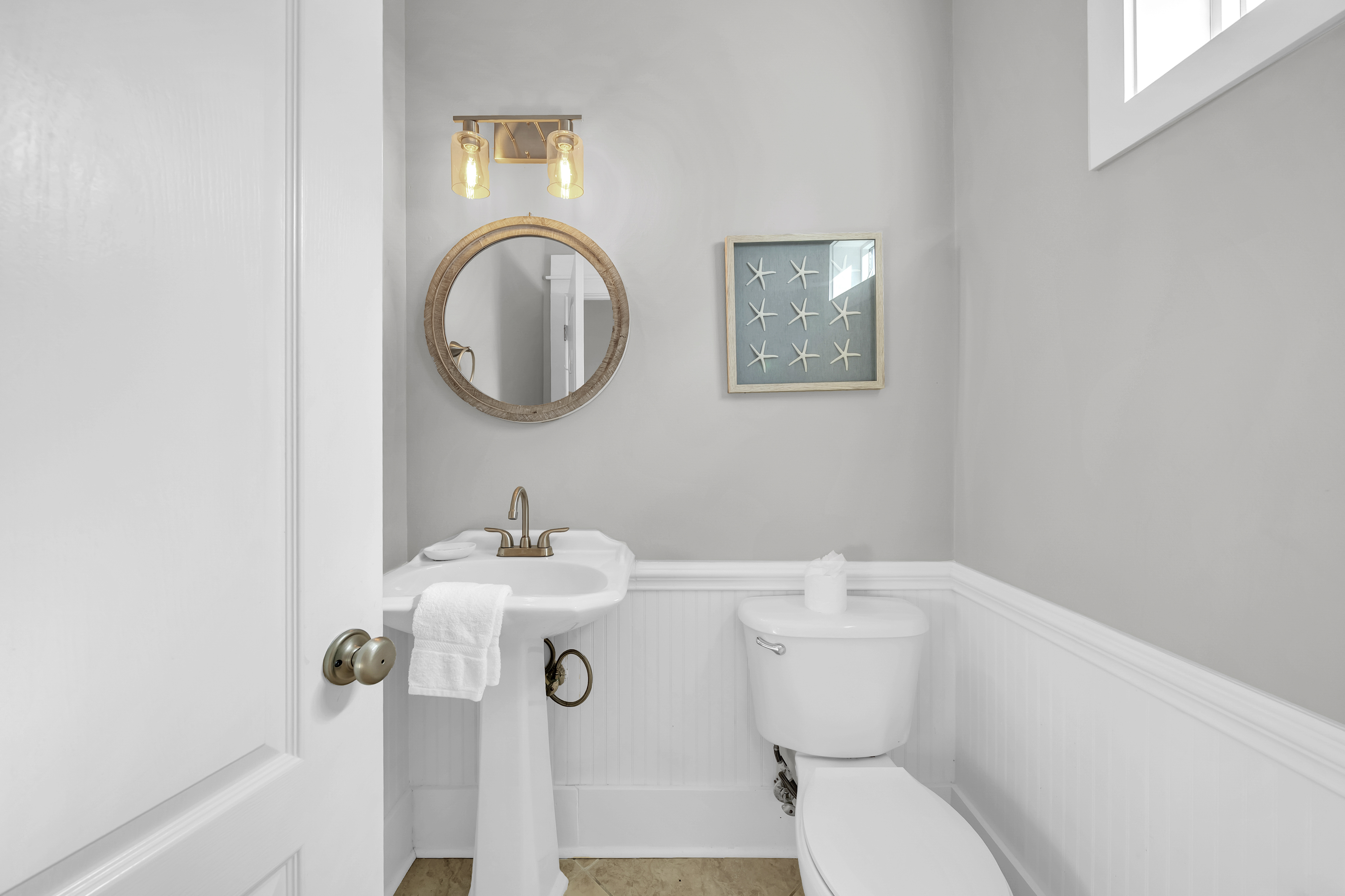 Half Bathroom: The half bathroom is located downstairs for convenience.