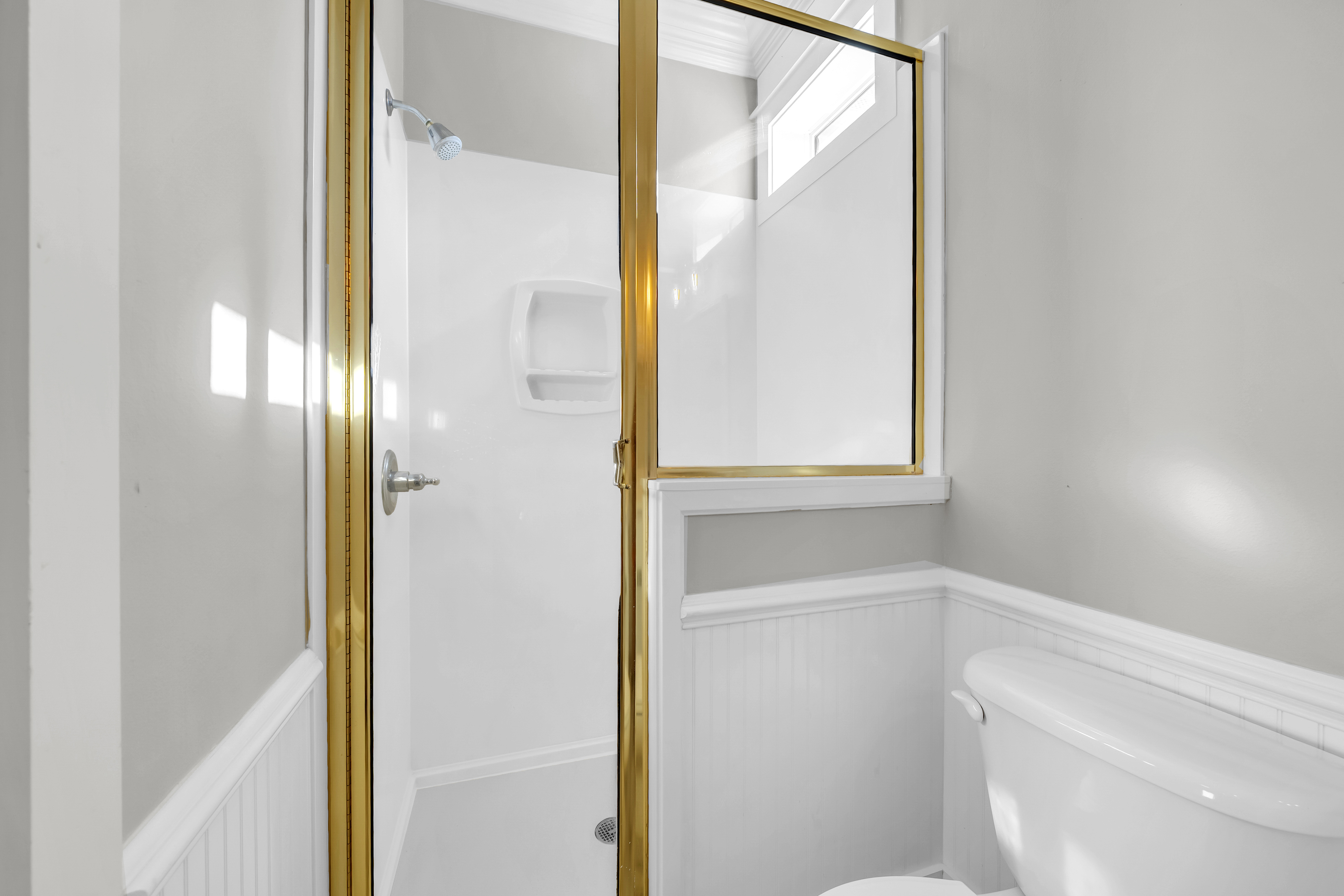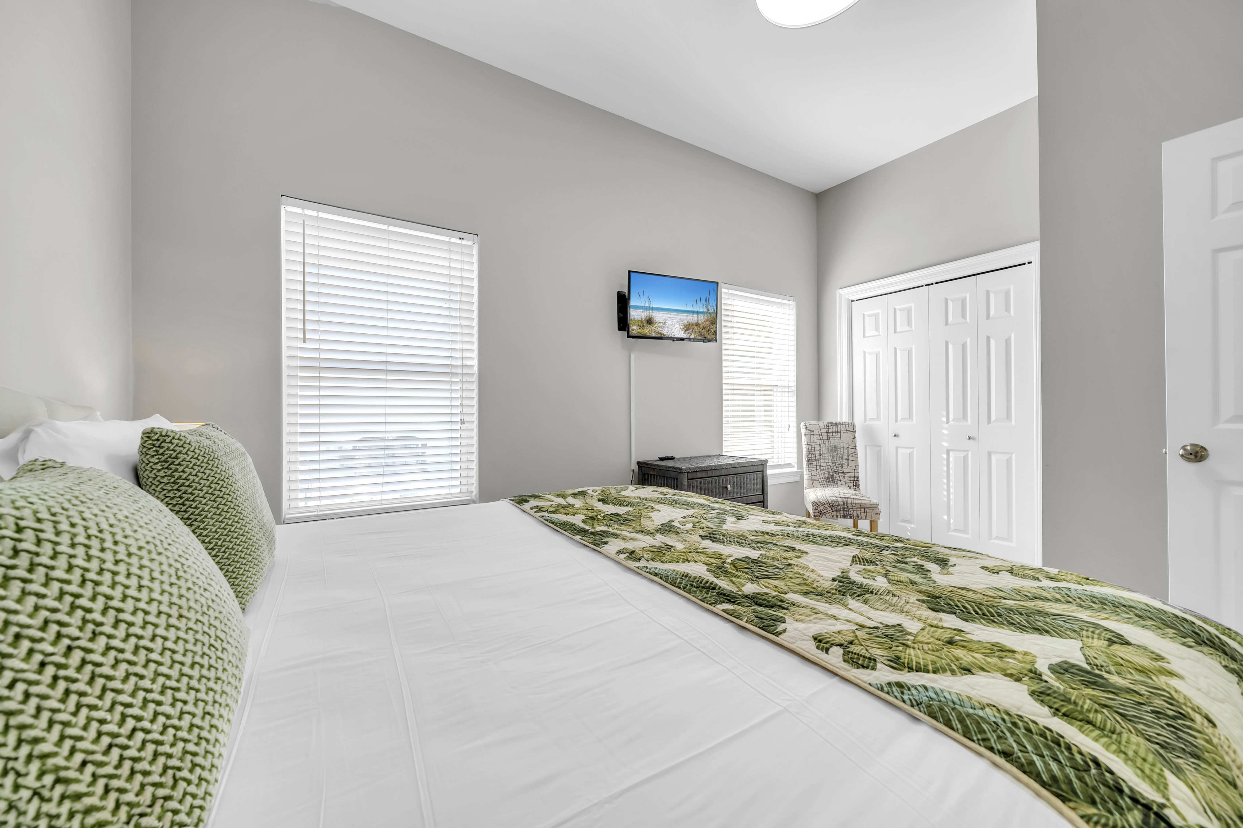 Guest Bedroom #2: This bedroom includes a king-sized bed, 2 nightstands, a dresser, and mounted flat-screen TV. There is a private bathroom attached with a single vanity and walk-in shower.
