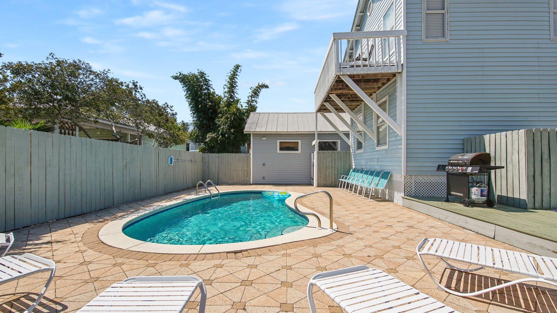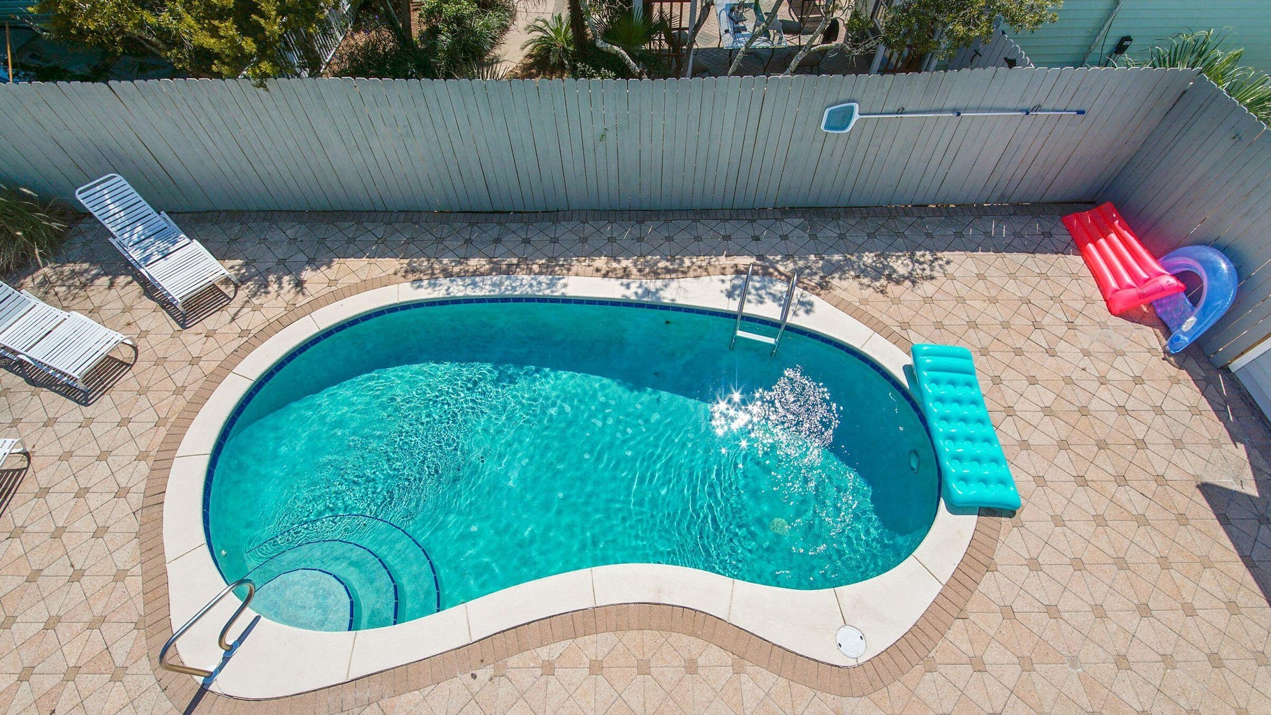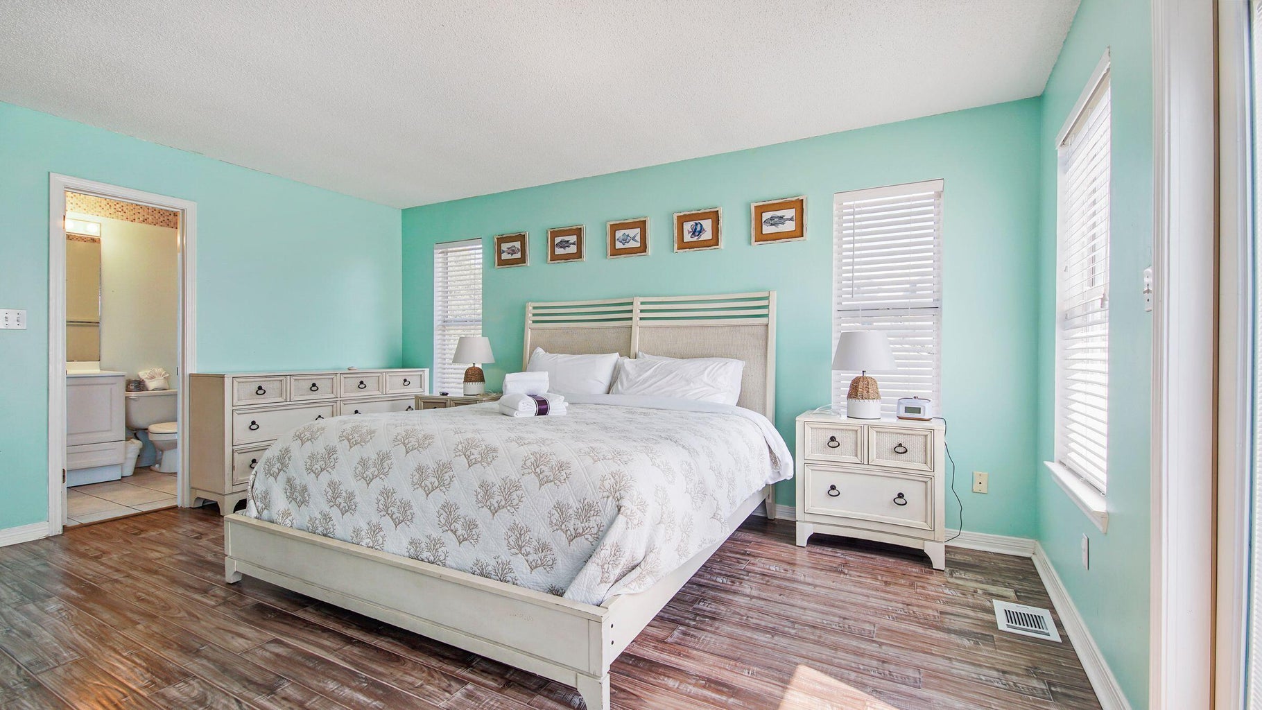 Outdoor spaces are designed for both relaxation and fun, featuring a private pool surrounded by loungers, a grill area with picnic tables for casual outdoor meals, and a full volleyball court that adds a unique touch for group activities. Two private balconies provide additional spots to unwind and enjoy the coastal breeze. The complimentary 6-passenger golf cart (LSV) makes getting around easy, while The Shore at Crystal Beach Park is just a short 2-minute drive away. Guests can also access the beach at the nearby Crab Trap, which offers a larger access point with convenient amenities. With its inviting outdoor setup and ideal location, Salty By Nature delivers an exciting and memorable beach escape.