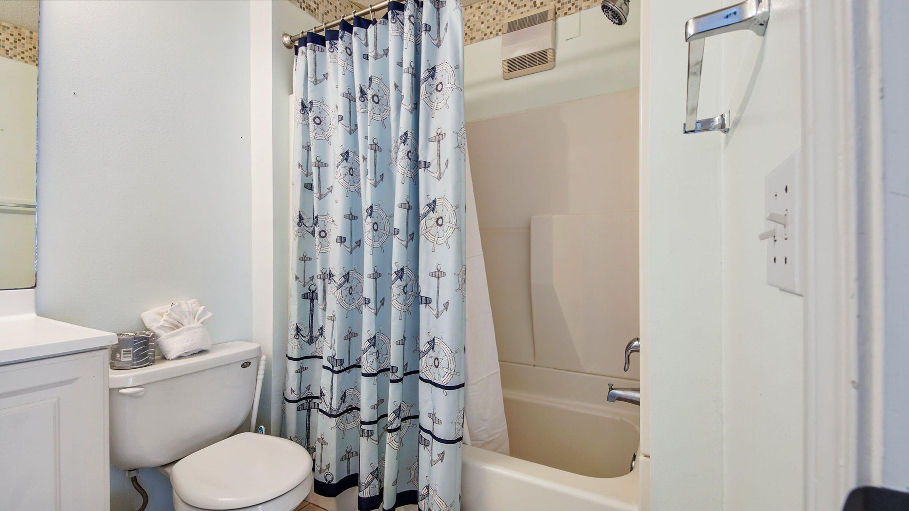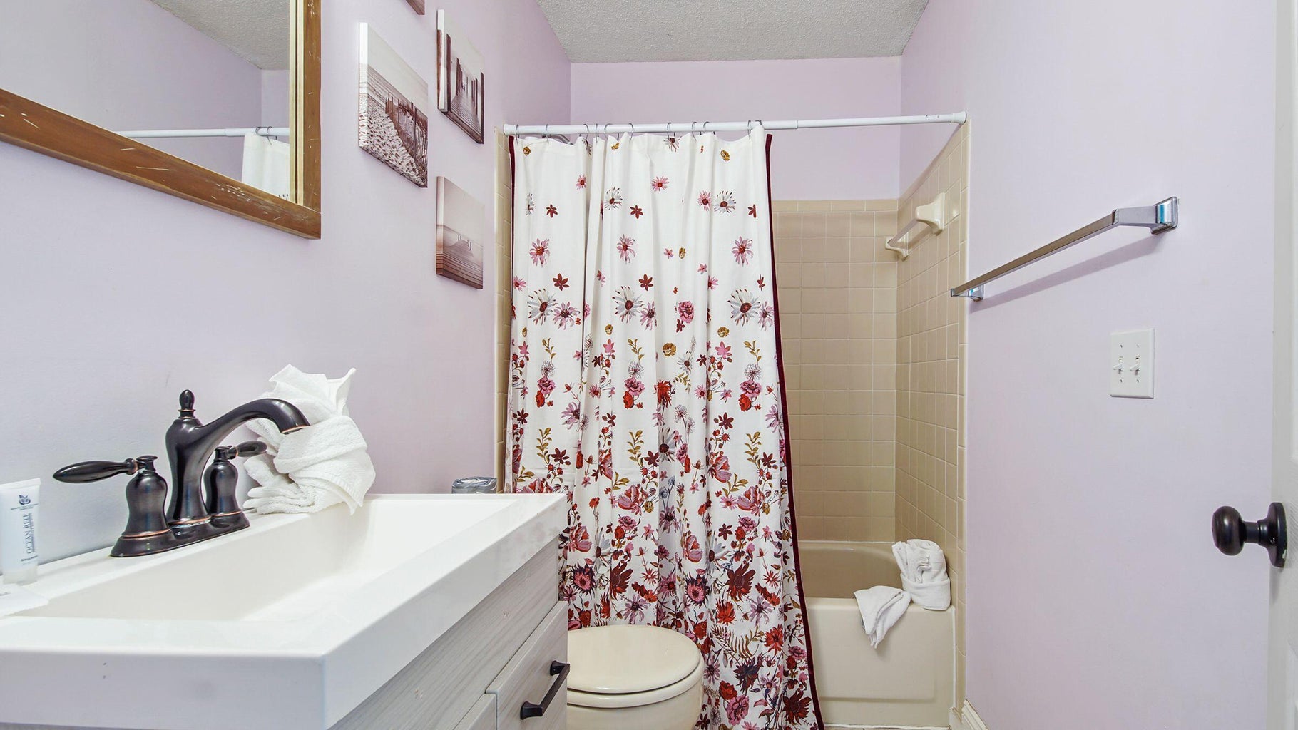 Guest Bathroom #2: This bathroom is located in the hallway and includes a single vanity and shower/bathtub combination for Guest Bedrooms #2 and #3.
