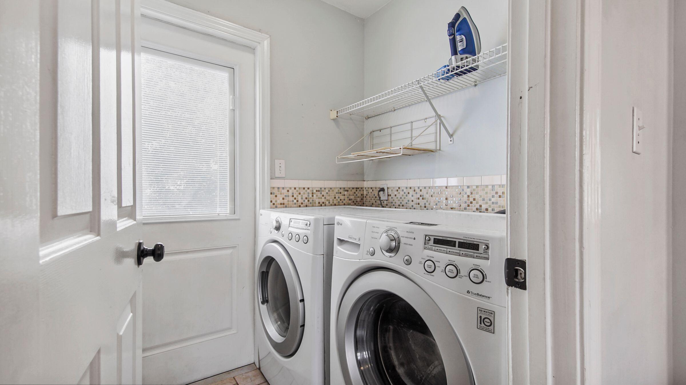 Laundry: The laundry room is right across from the kitchen, next to the 1st floor bathroom. There is a full-sized washer and dryer.