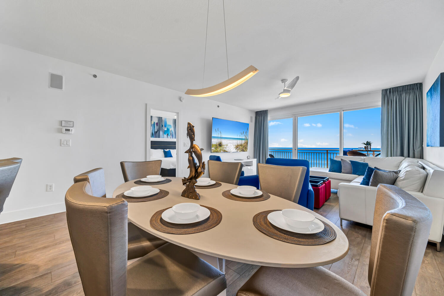 "The pictures do not do this place any justice! It’s hard to get that much beauty and comfort in a picture. The beds were extremely comfortable, I hadn’t gotten a good nights sleep in a while, until I stayed at this condo! It was so spotless that even the baseboards were clean! The furniture is extremely functional and I love their wraparound couch. The appliances looked all new.. The condo grounds were immaculate as well. I felt very safe on the property. The water is clear blue and the beach is that soft, white sand. . I cannot say enough about this place and I will definitely go back. I’ve stayed in many condos over the years and this one is one of my favorites!!"