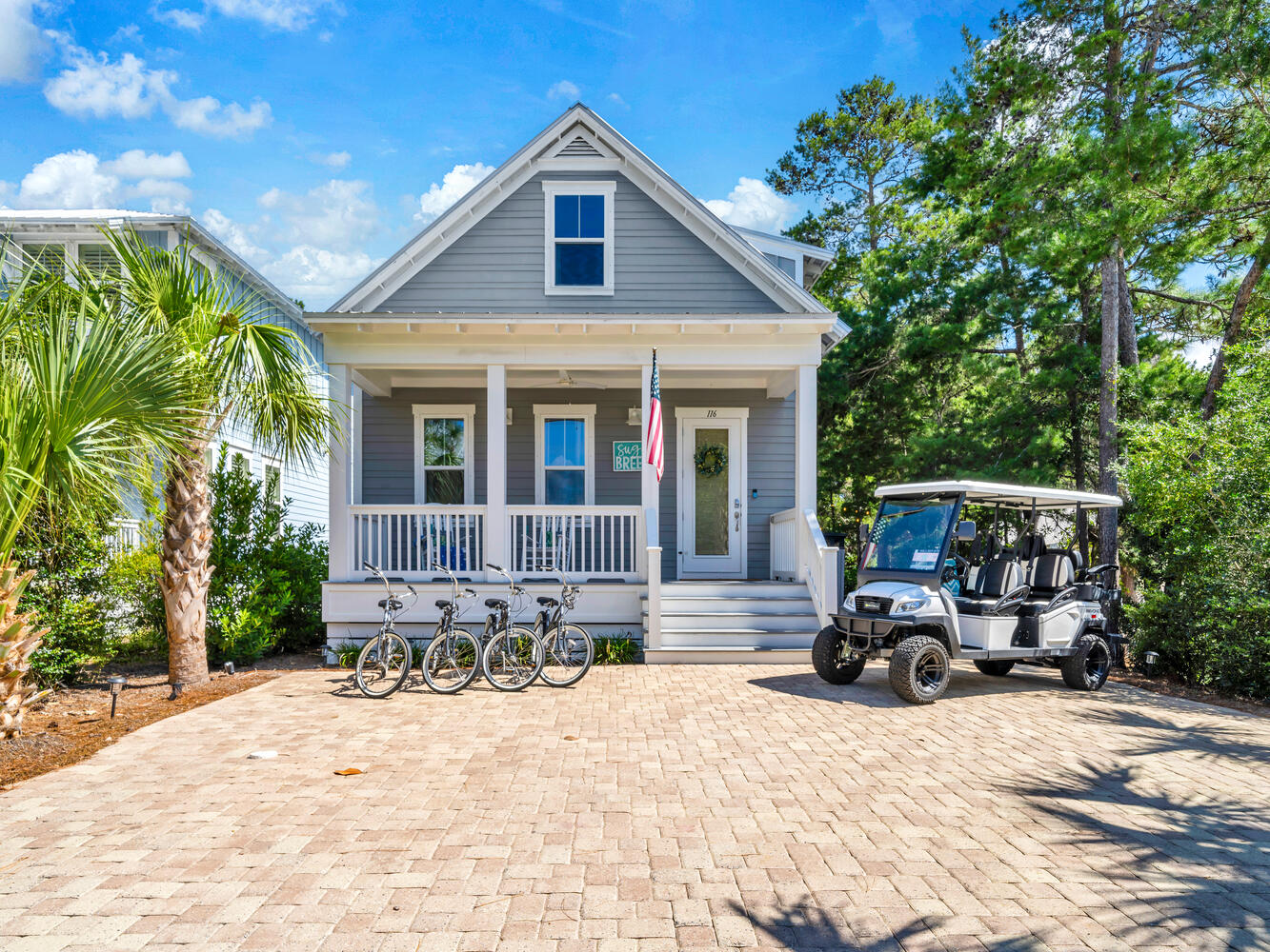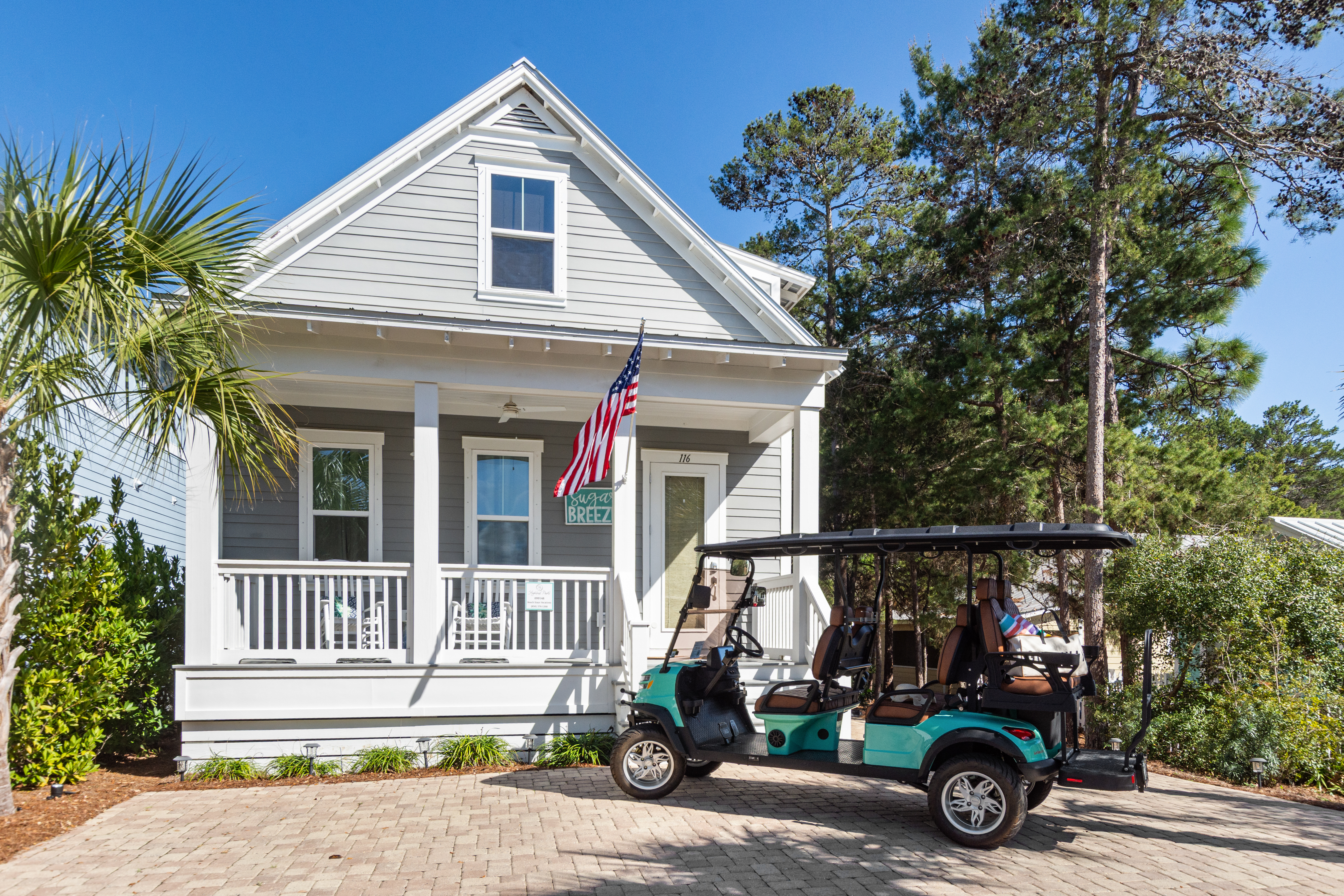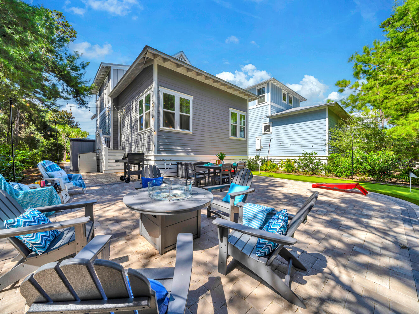"The house was exactly as pictured! The backyard with yard games and fire port was an added bonus for our family. The house was very clean when we arrived and had everything we needed. This was our first time staying on this side of the beach and it did not disappoint. It is much quieter than being in Seaside area, with still lots of cute shops and restaurants. The beach area was lovely and a short golf cart ride away. The hosts explained everything very easily and gave great recommendations. The good cart included with our stay made getting around easy and fun. We will definitely be staying here again!"