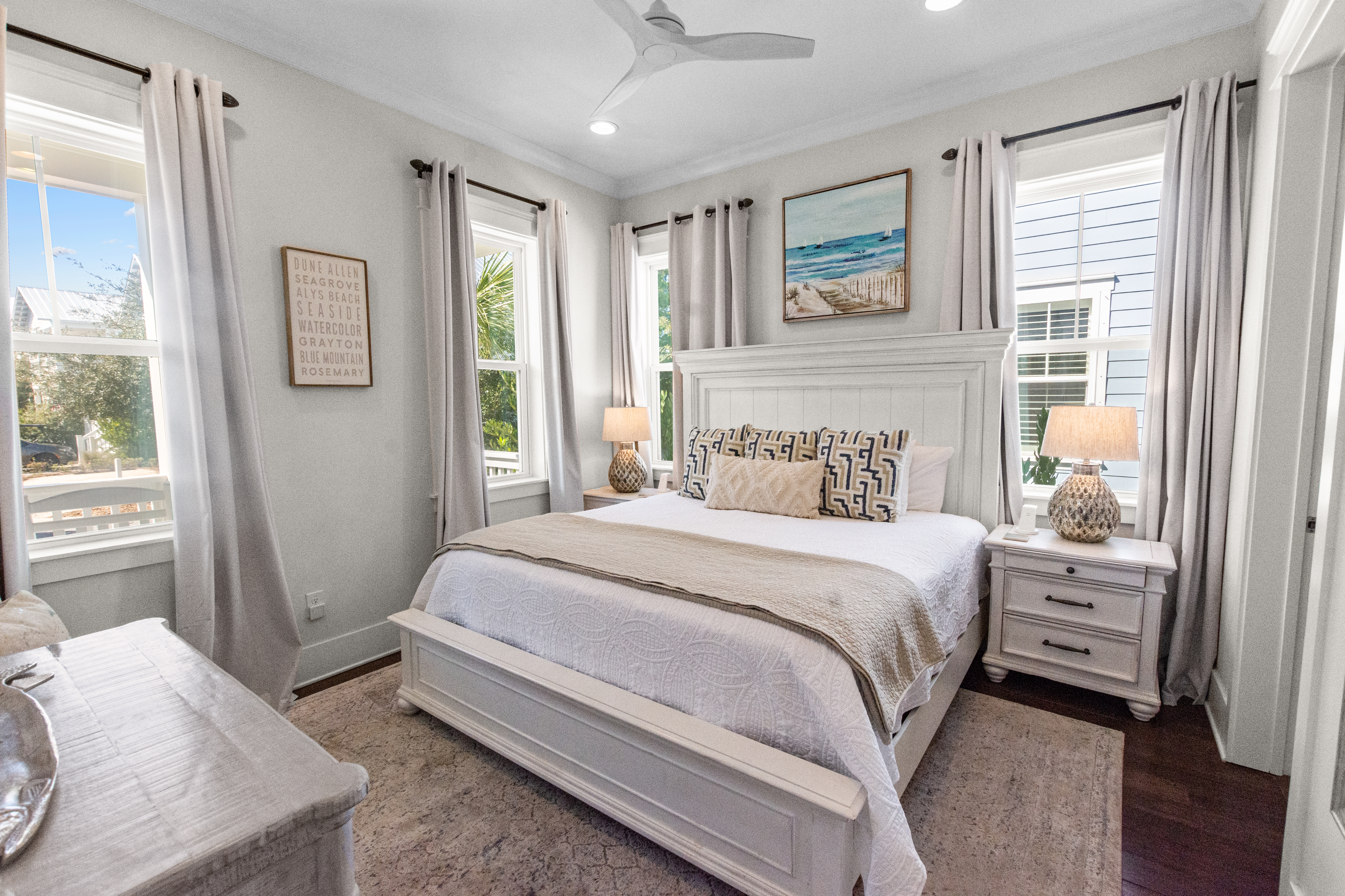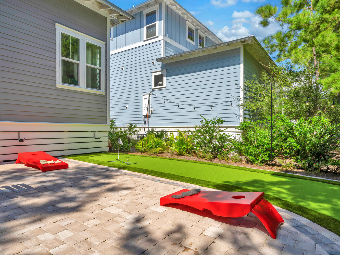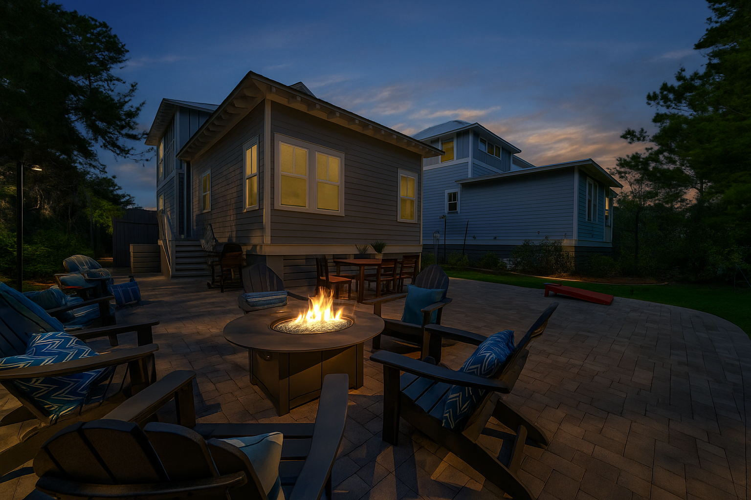 "The house was exactly as pictured! The backyard with yard games and fire port was an added bonus for our family. The house was very clean when we arrived and had everything we needed. This was our first time staying on this side of the beach and it did not disappoint. It is much quieter than being in Seaside area, with still lots of cute shops and restaurants. The beach area was lovely and a short golf cart ride away. The hosts explained everything very easily and gave great recommendations. The good cart included with our stay made getting around easy and fun. We will definitely be staying here again!"