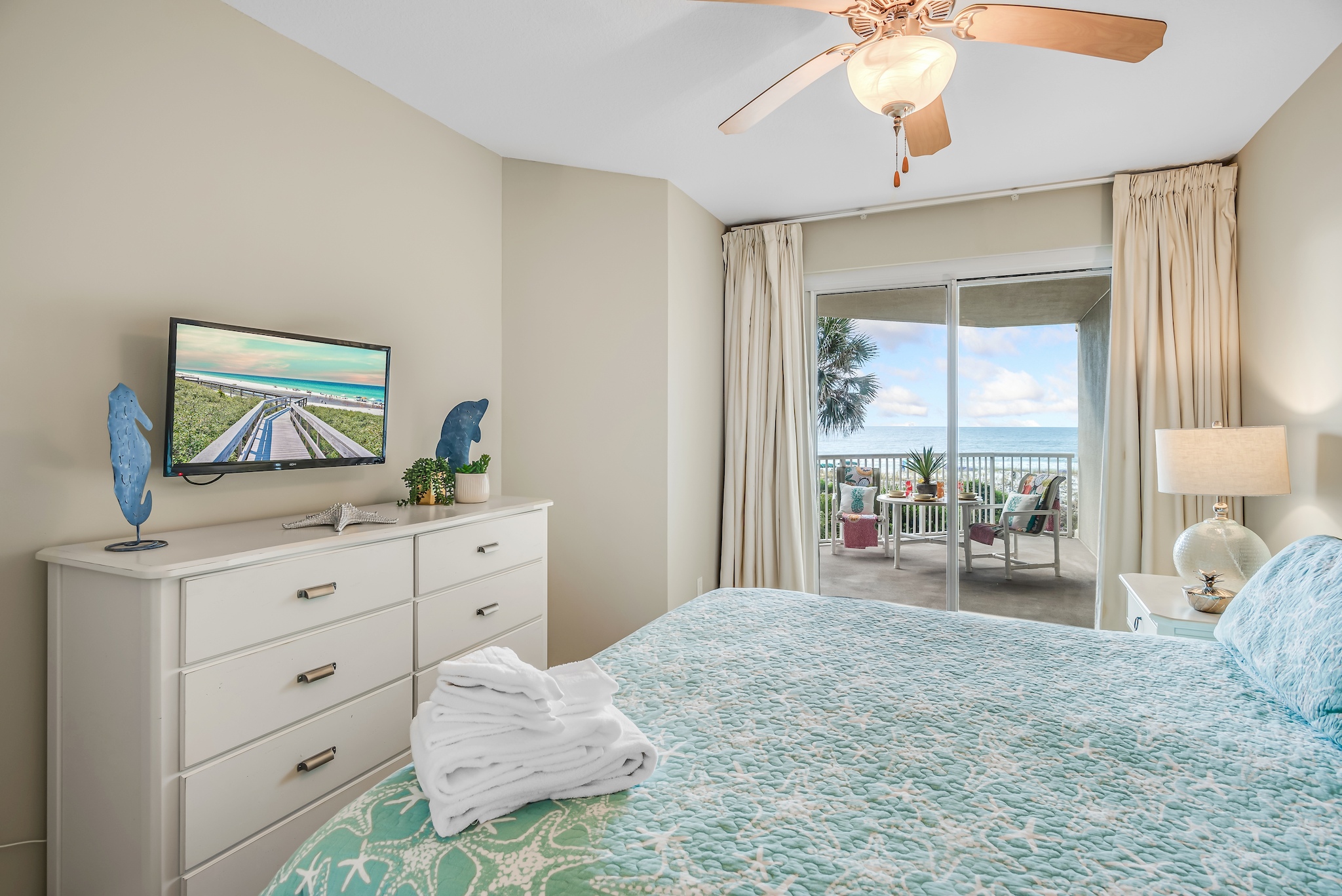 "We stayed a for a short weekend, wished we could've stayed a few extra nights. It is accurately listed. Beautiful ocean views, sand as soft as flour, clear beautiful water, walking distance to more than we had time for. Clean, comfortable, perfect for families!"