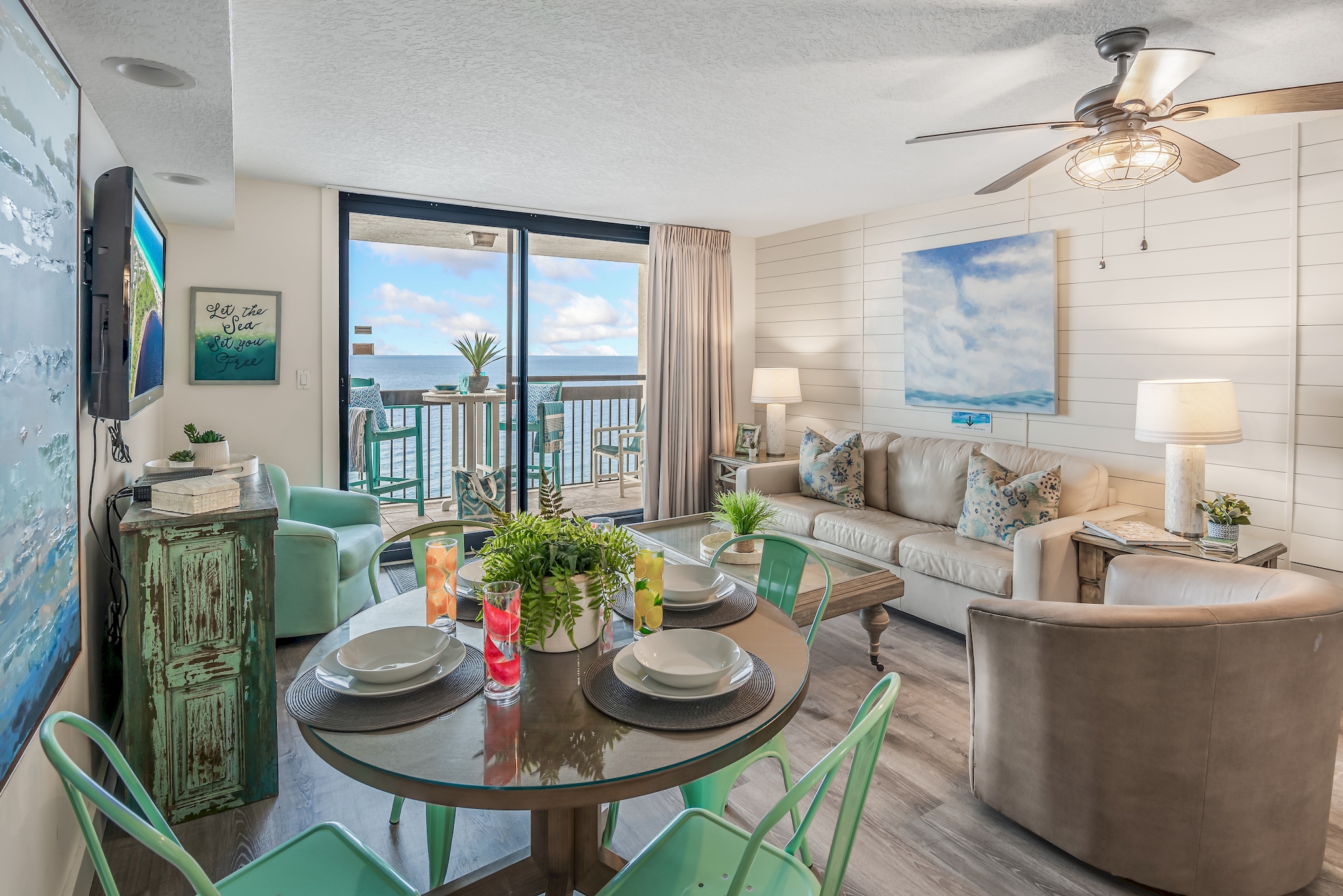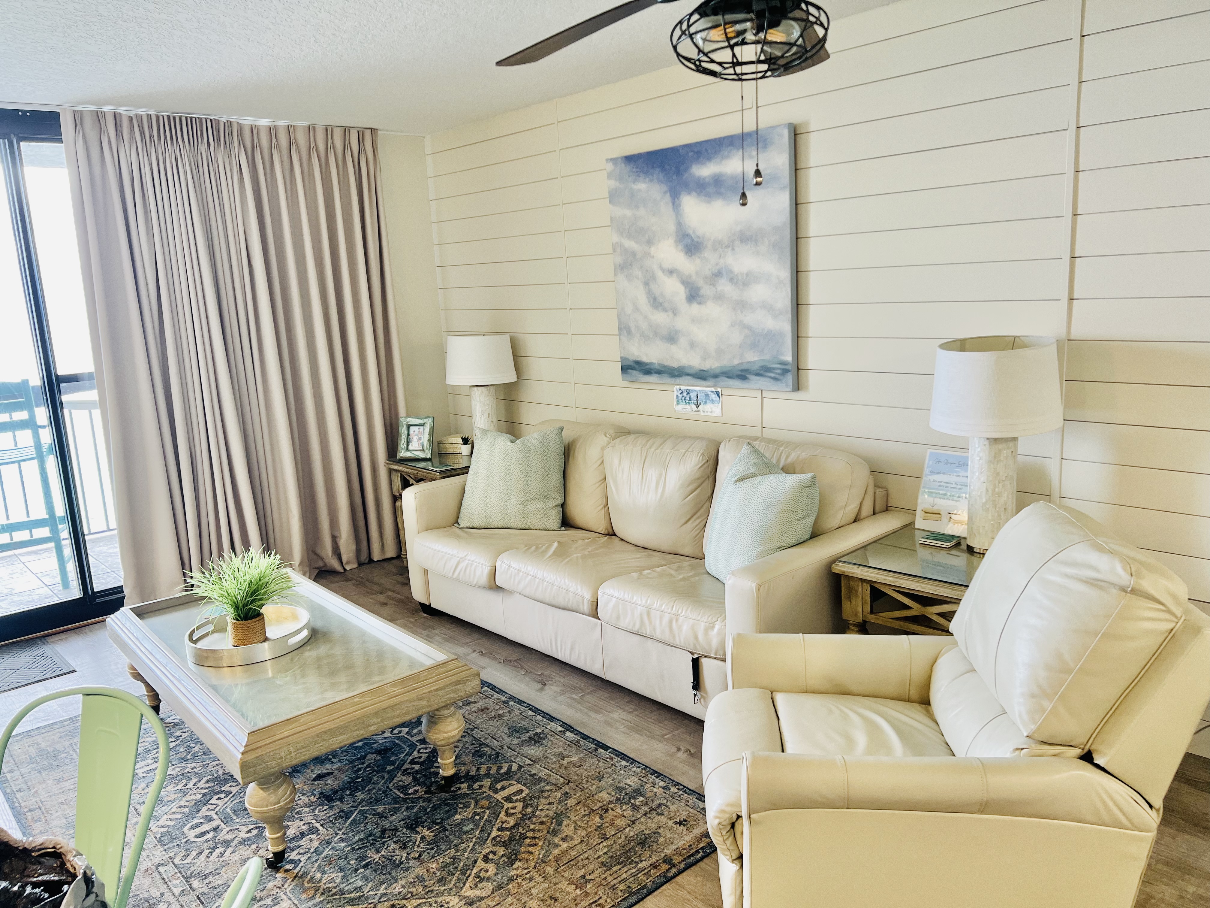 "Comfy, updated decor and appliances. Great views of beach and dolphins playing in water. Loved walking to the "Back Porch" for lunch."