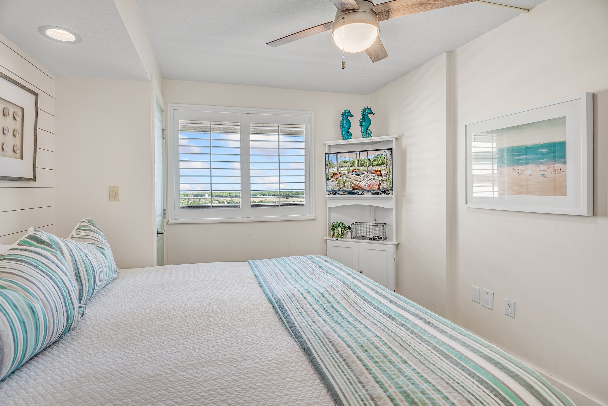 "Comfy, updated decor and appliances. Great views of beach and dolphins playing in water. Loved walking to the "Back Porch" for lunch."