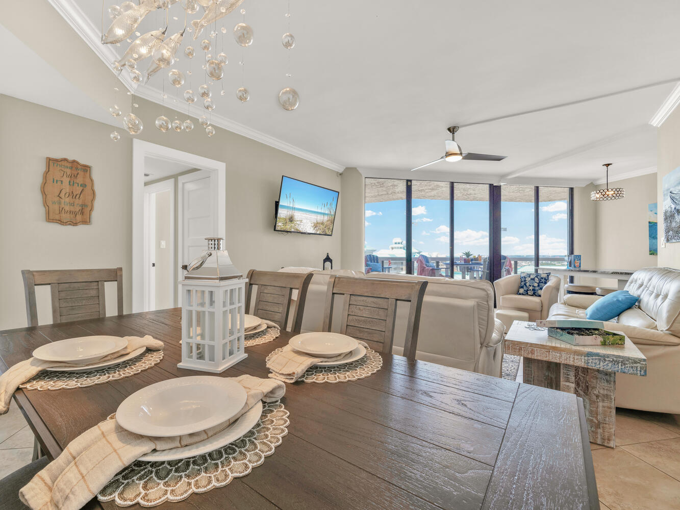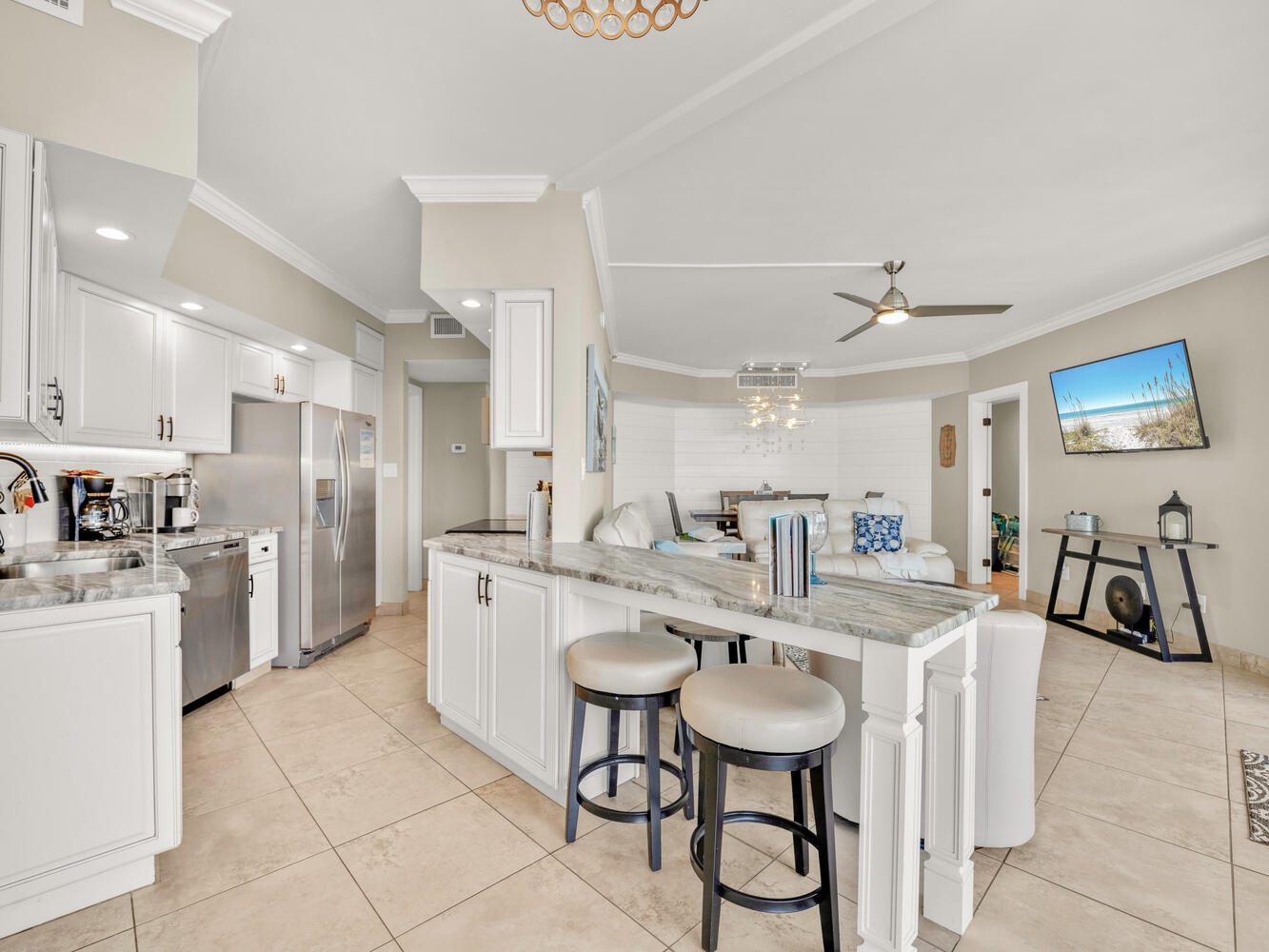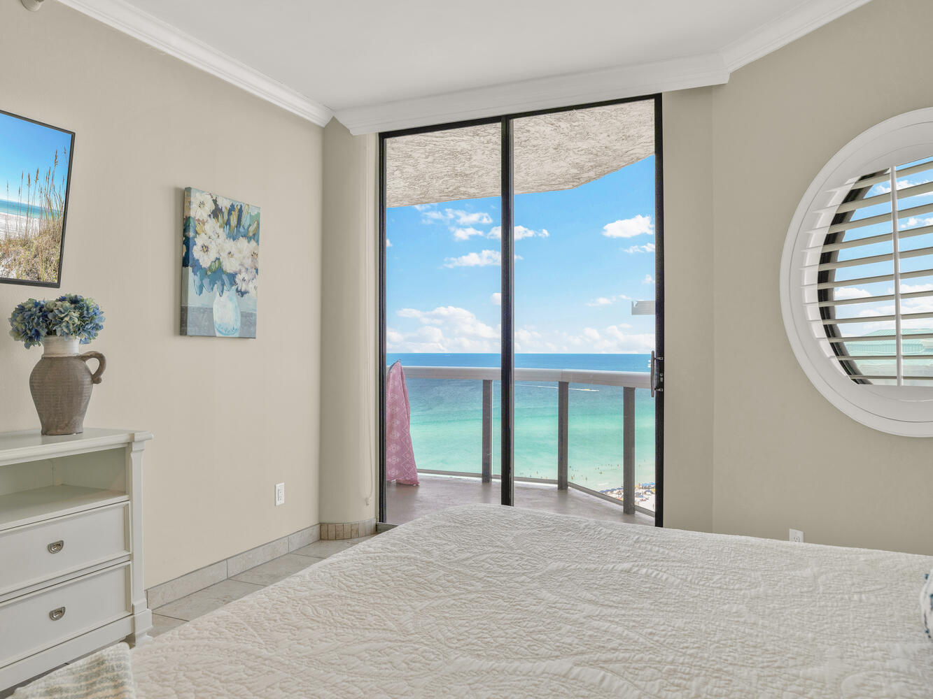 "We really enjoyed our stay at this beautiful condo! It was clean, beautifully & tastefully decorated and well stocked with everything we needed for our stay including beach chairs, umbrellas & beach toys, as well as a cart to haul them to the beach!"