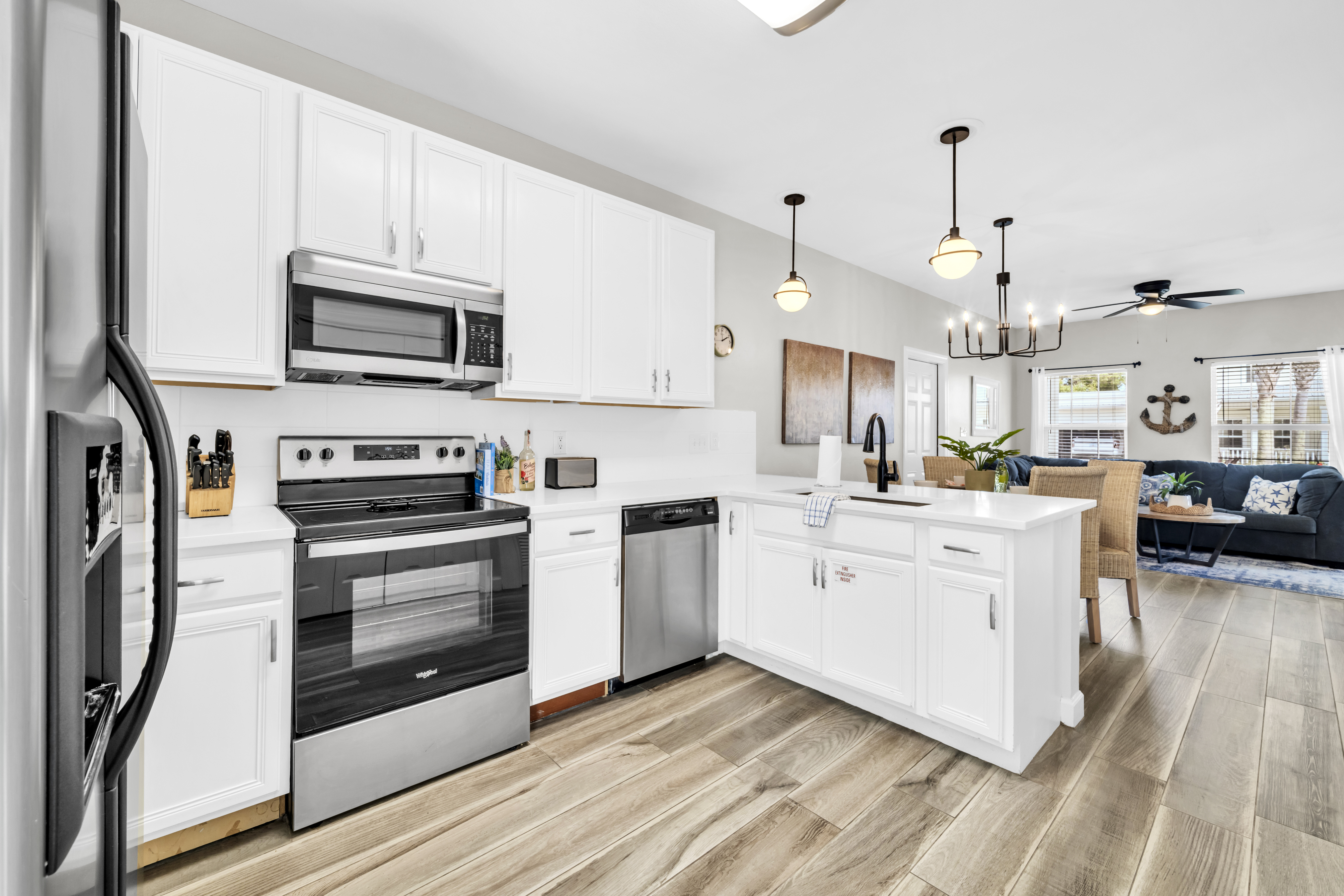The kitchen is fully equipped for preparing meals at home. Enjoy meals at the outdoor dining table, inside at the kitchen table, or take advantage of the BBQ for fun family cookouts.
