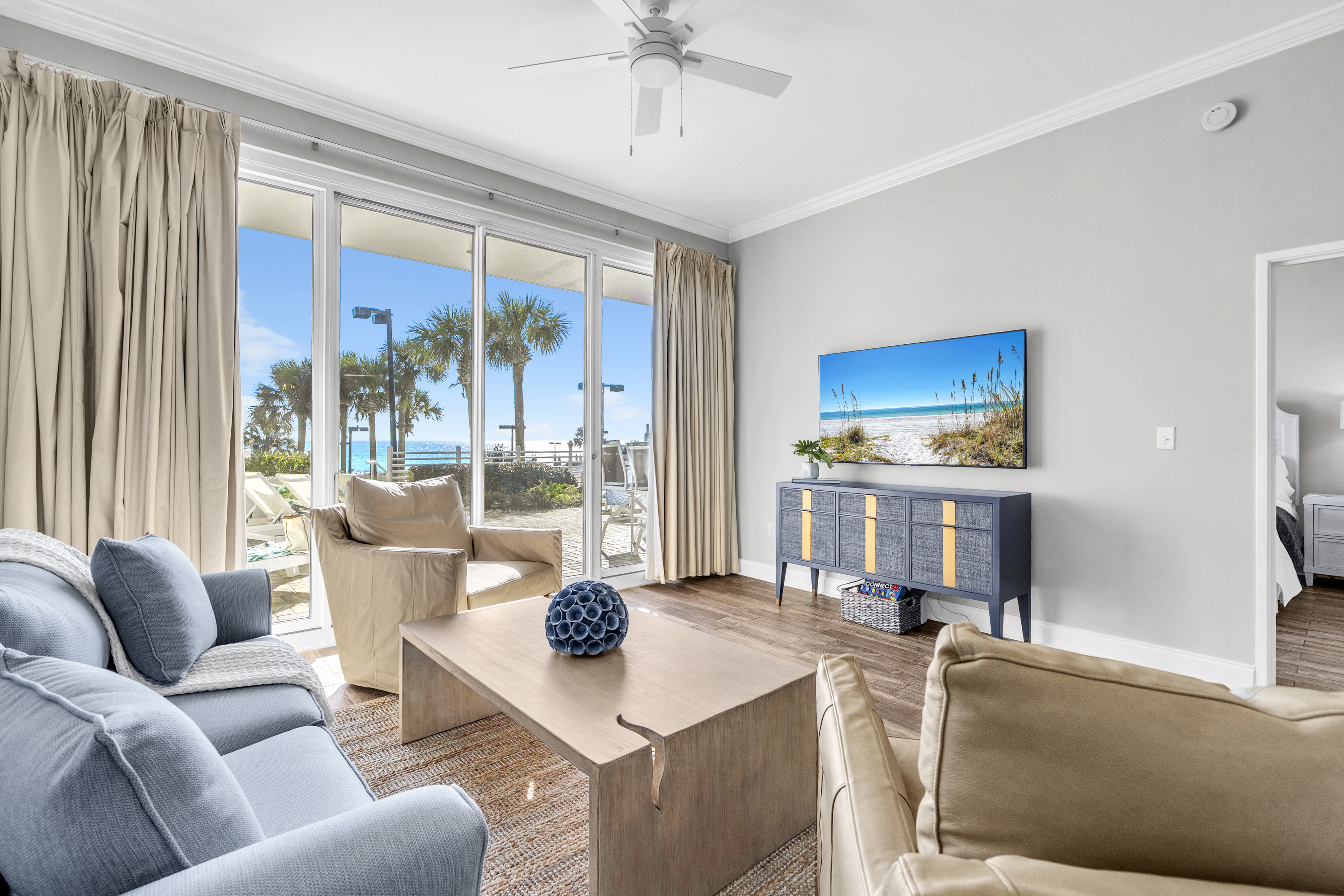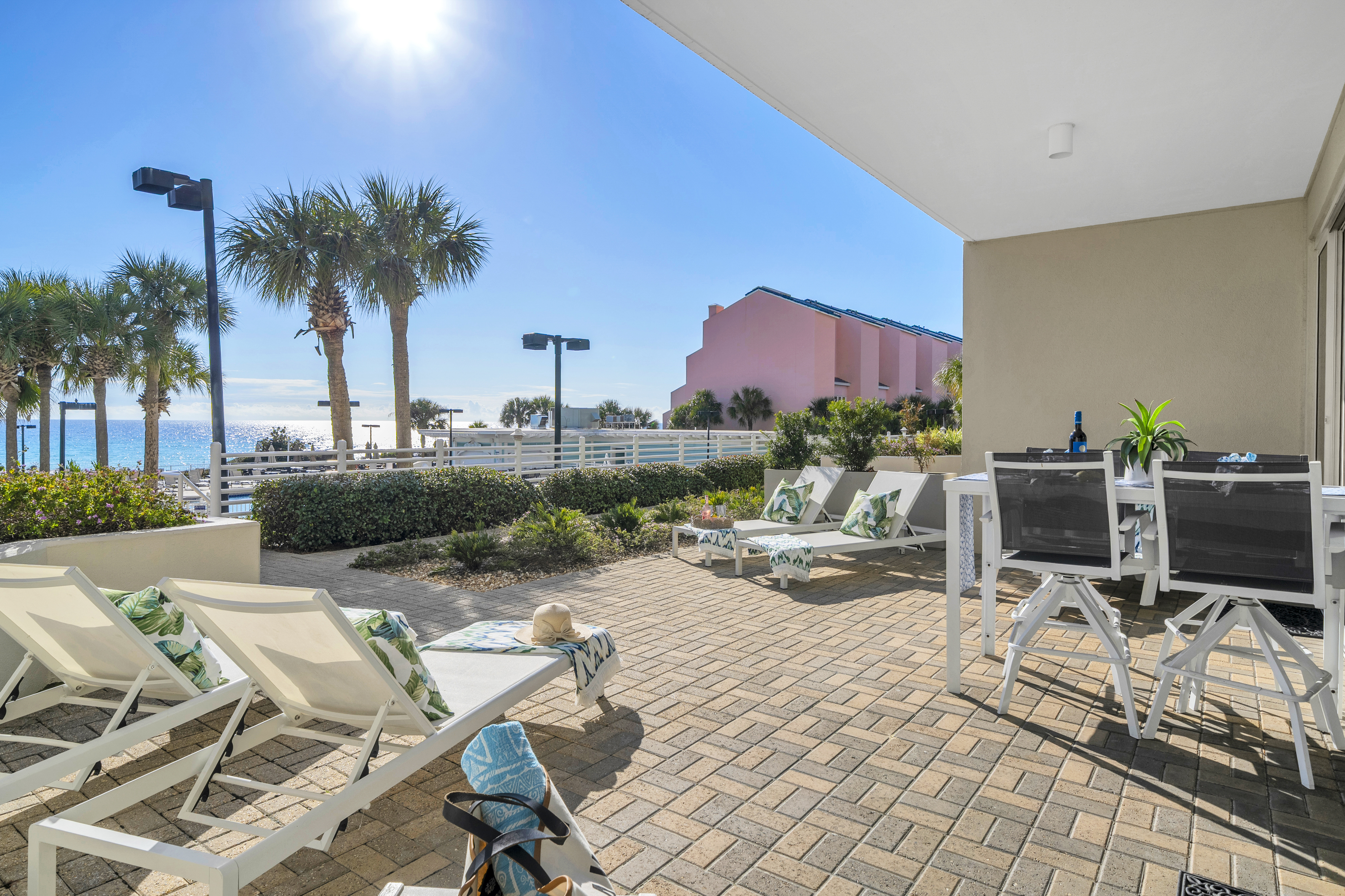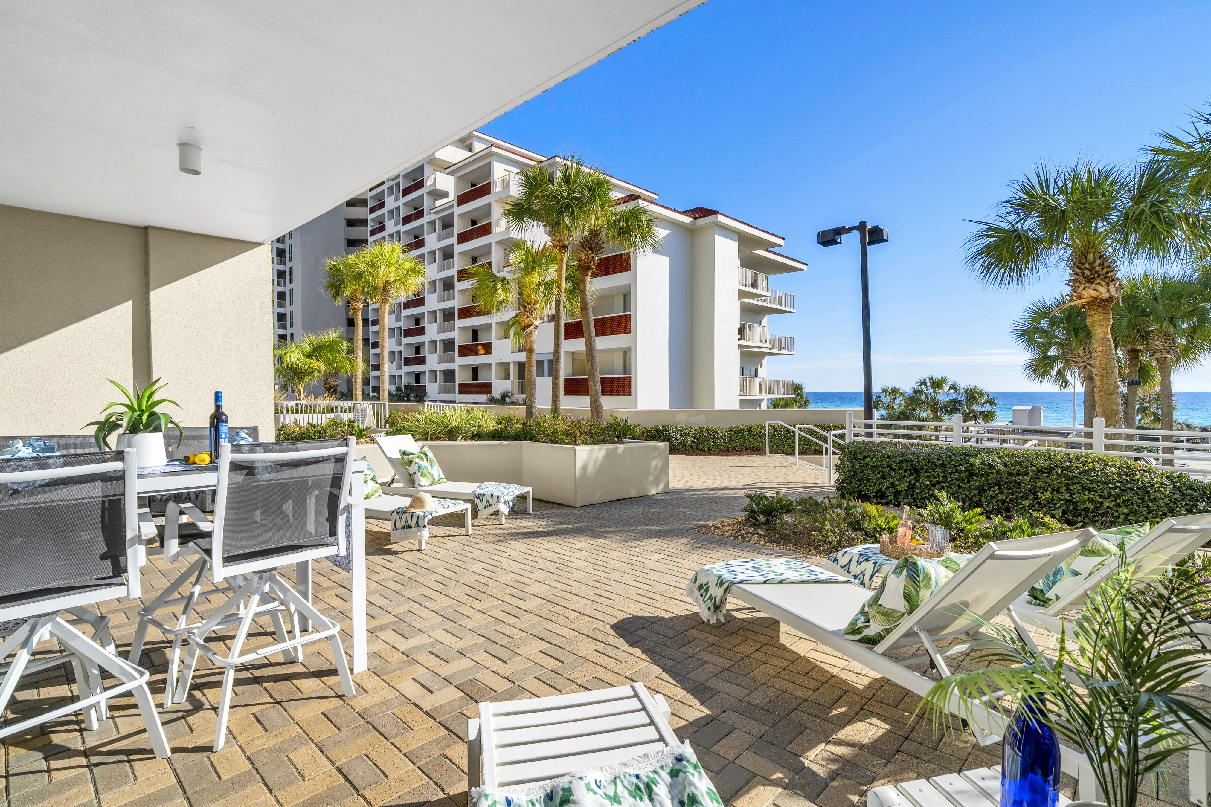 Welcome to Sunny Tide Up, your front-row seat to one of the most desirable stays on the Gulf. This beautifully renovated 2-bedroom condo offers relaxed luxury with a rare, oversized patio that feels like an extension of the resort itself. Enjoy morning coffee overlooking the water, quick access to the beach and pools throughout the day, and peaceful evenings unwinding on one of the six chaise loungers as the resort lights glow and the Gulf breeze rolls in. Thoughtfully designed with comfort and style in mind, this condo delivers an unforgettable beach escape.