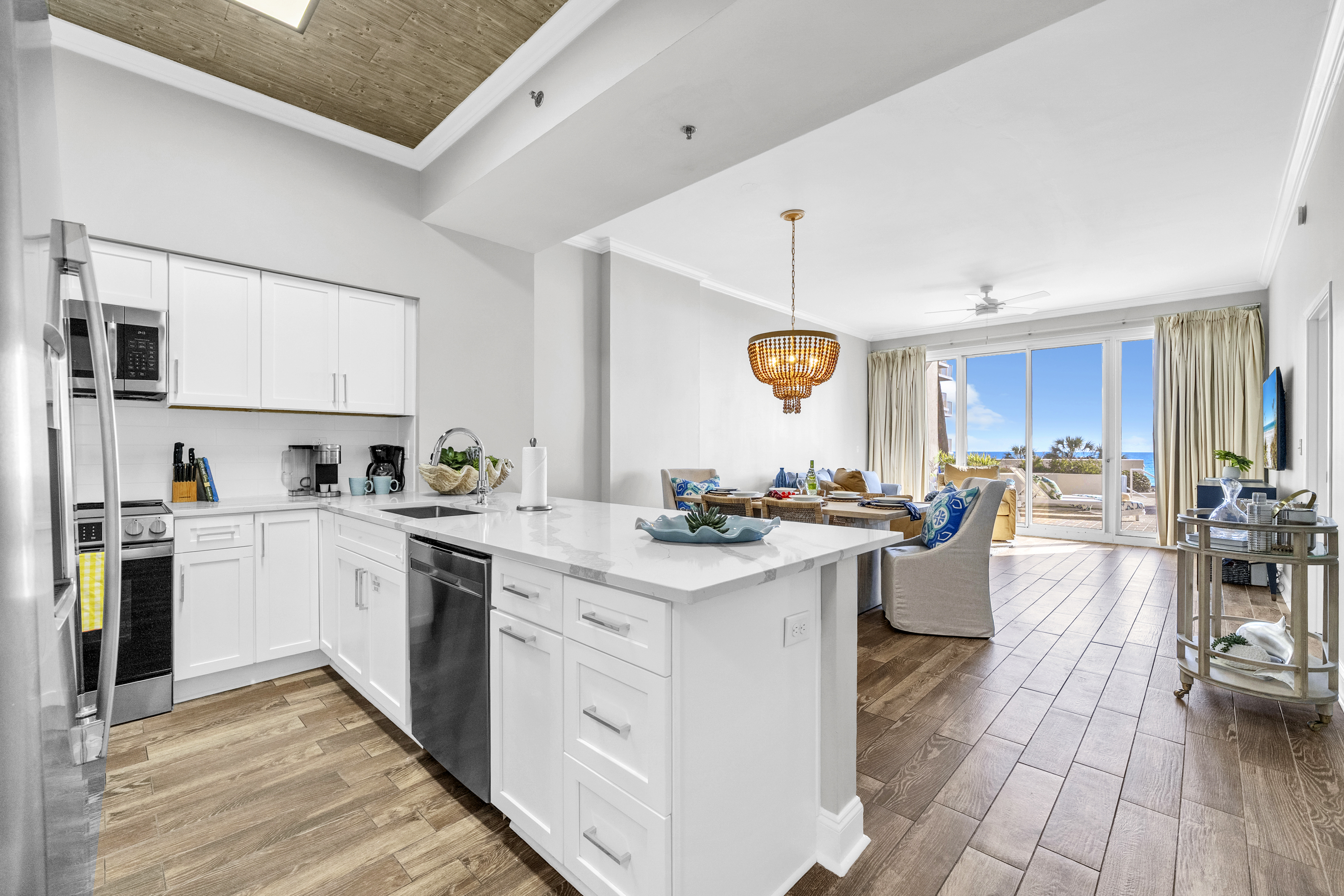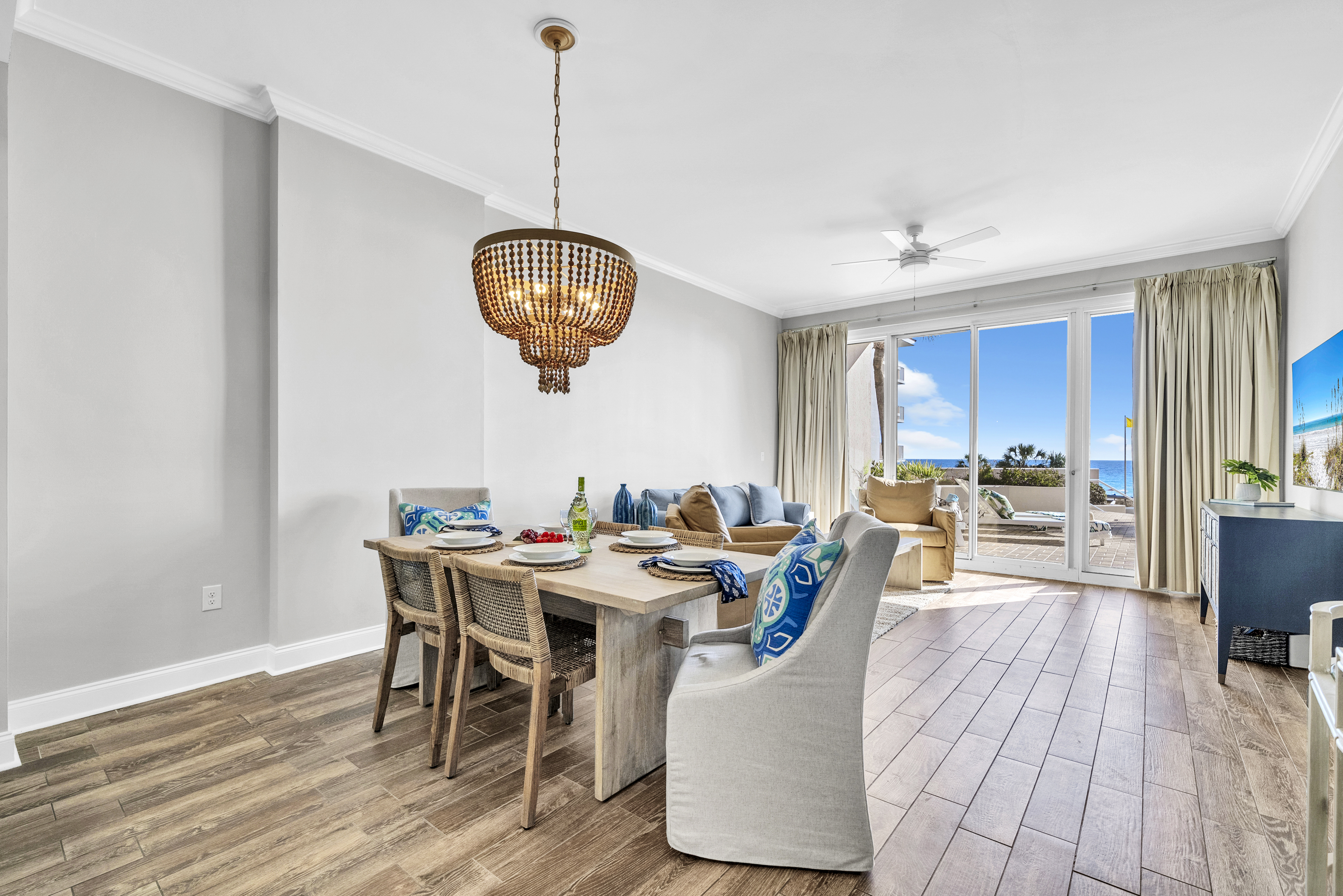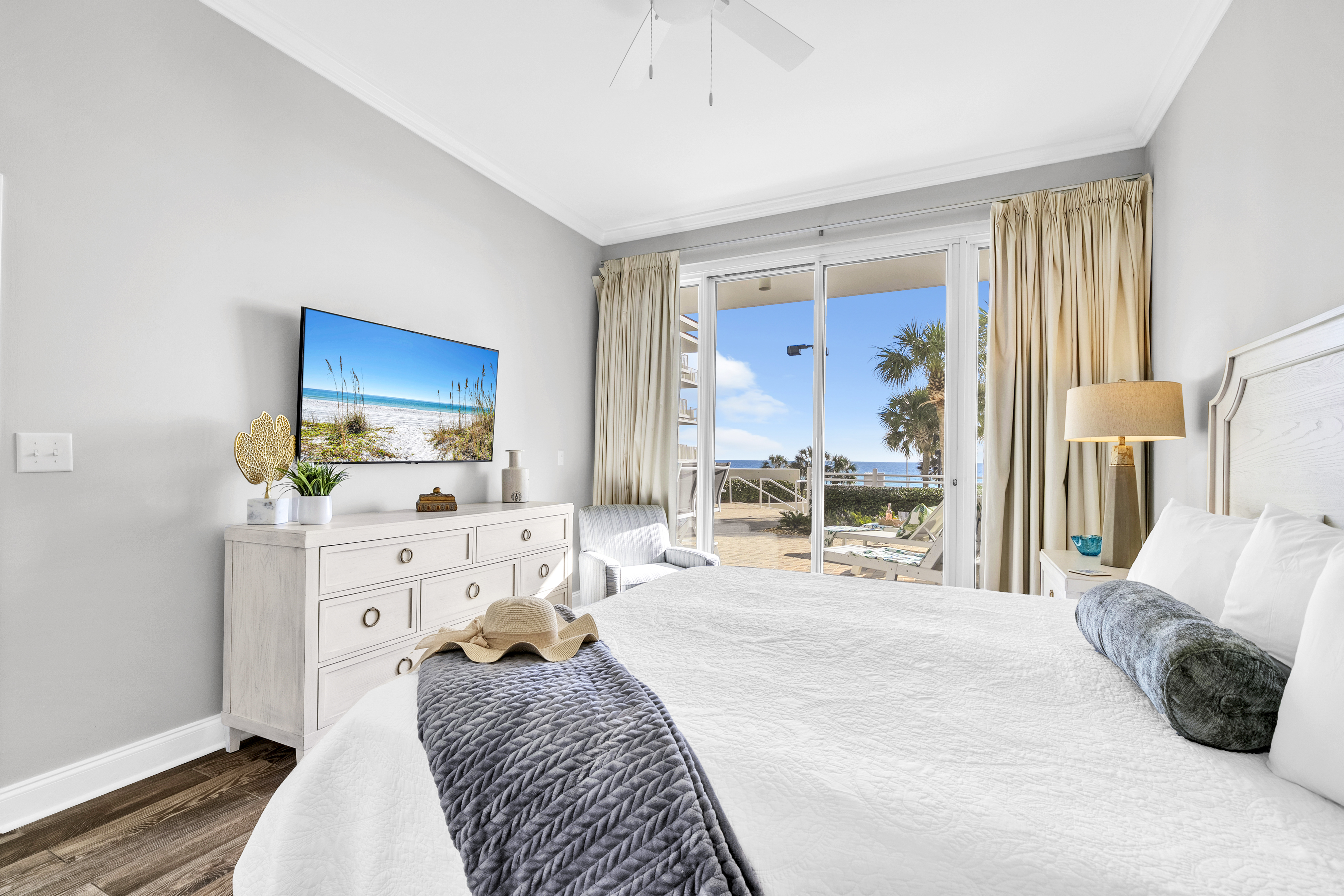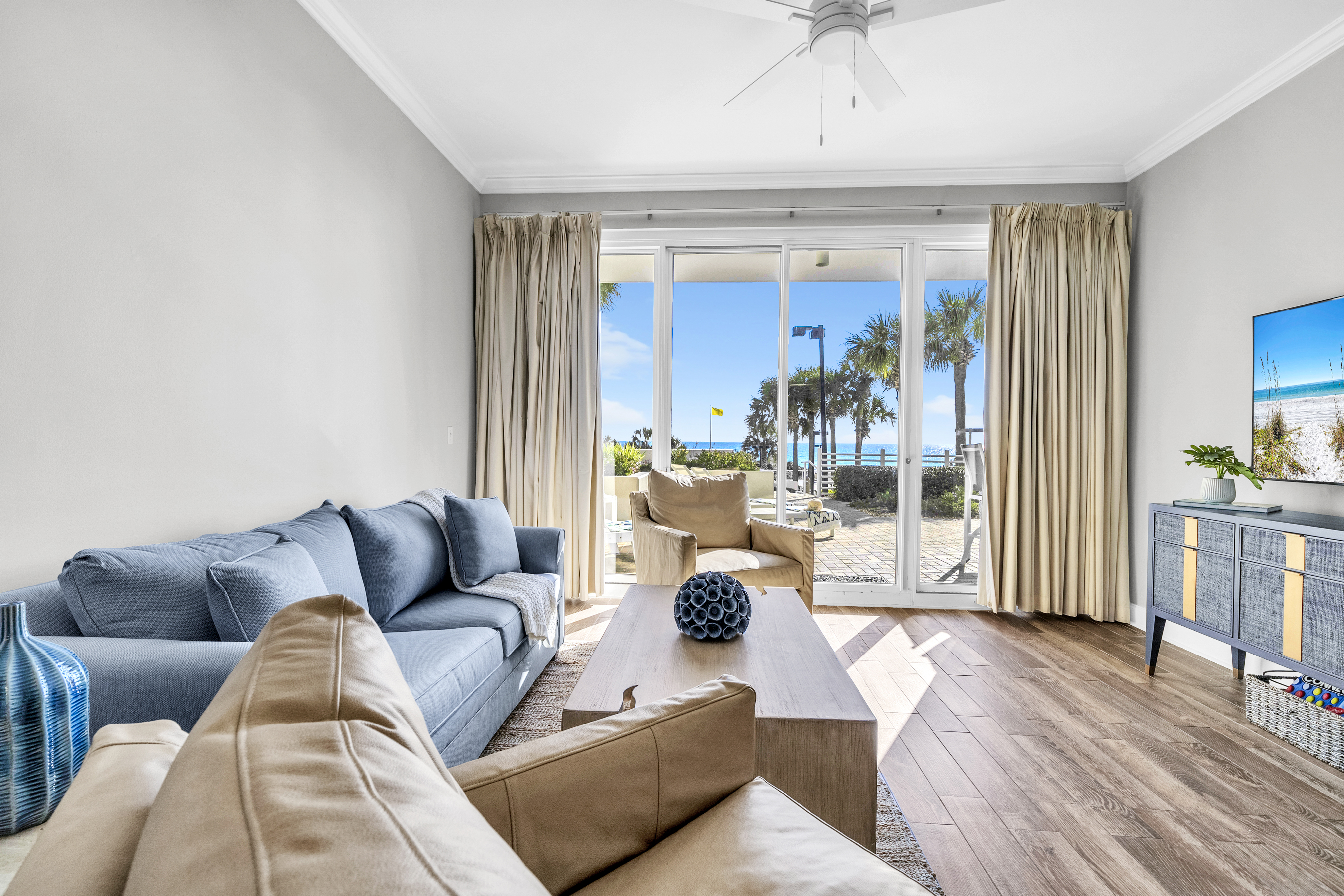 Welcome to Sunny Tide Up, your front-row seat to one of the most desirable stays on the Gulf. This beautifully renovated 2-bedroom condo offers relaxed luxury with a rare, oversized patio that feels like an extension of the resort itself. Enjoy morning coffee overlooking the water, quick access to the beach and pools throughout the day, and peaceful evenings unwinding on one of the six chaise loungers as the resort lights glow and the Gulf breeze rolls in. Thoughtfully designed with comfort and style in mind, this condo delivers an unforgettable beach escape.