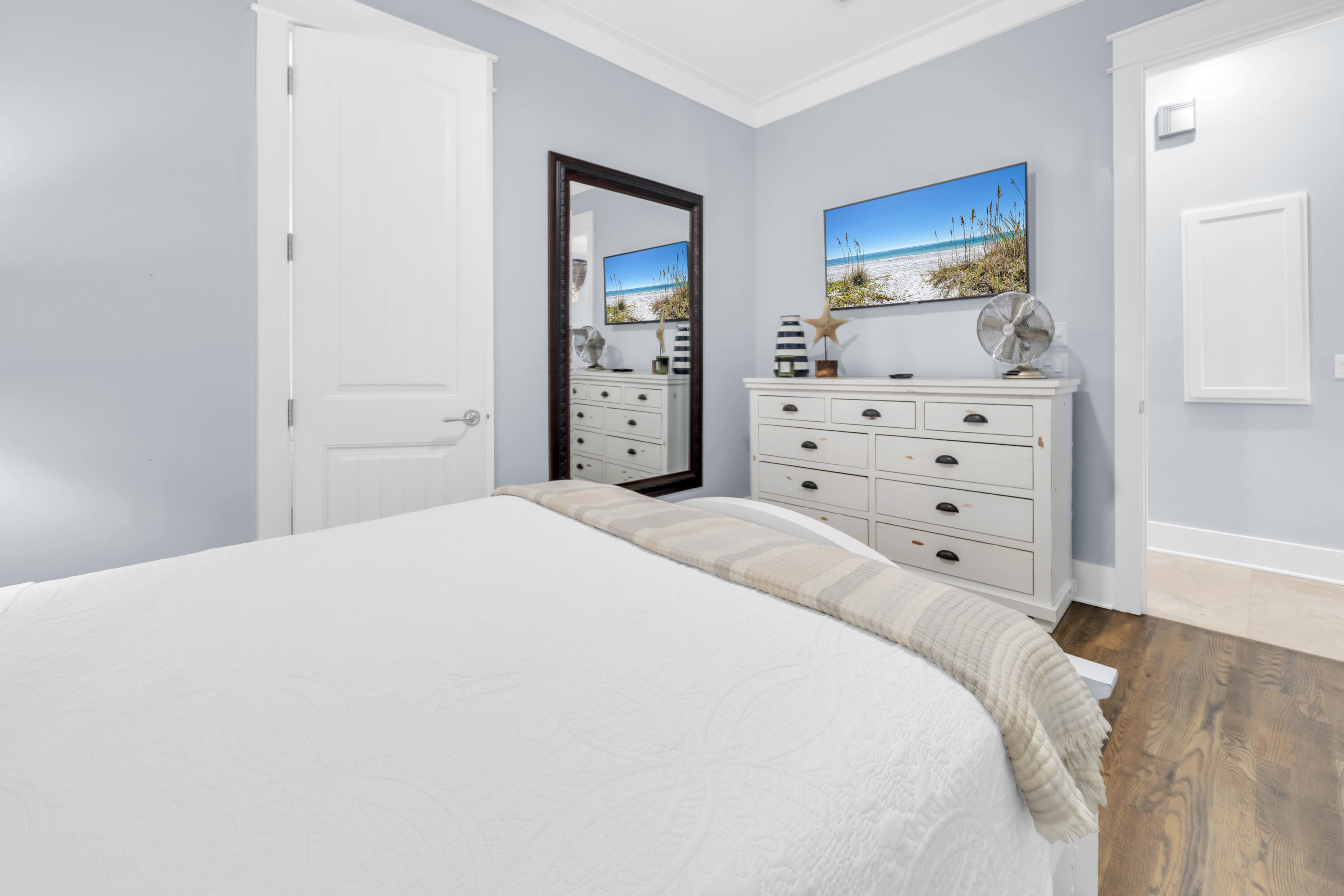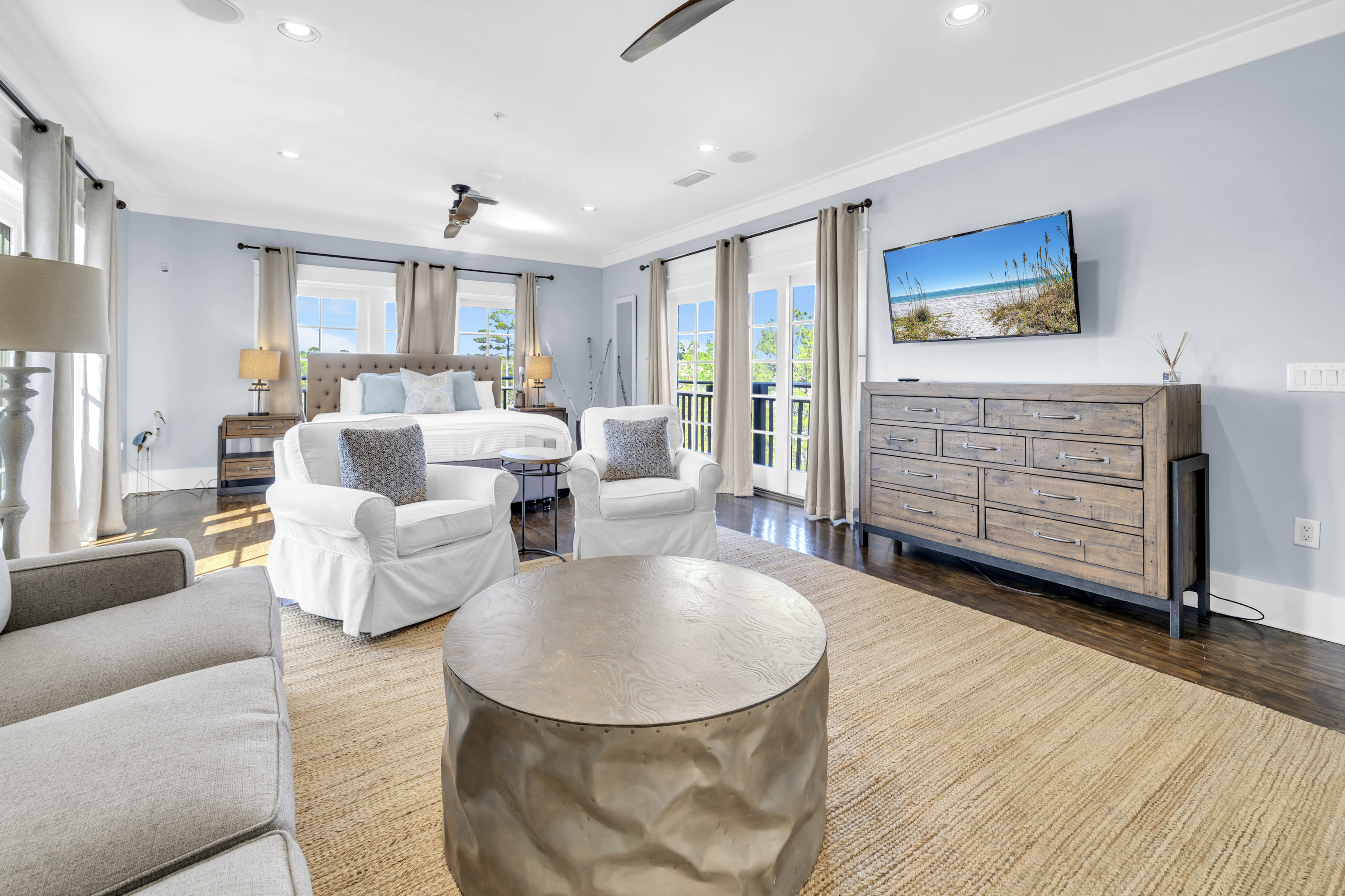 Inside, the main living spaces are located on the second floor, where the kitchen and dining areas connect in an open-concept layout before leading down the hall to the comfortable living room. Two king suites provide private retreats with balcony access, while two additional guest bedrooms create a flexible setup for families and groups traveling together. Walton Dunes Beach Access is just a short 3-minute drive away, making beach days effortless. Nearby Santa Clara Regional Beach Access offers convenient parking, restrooms, and showers, while Seagrove Beach Access and Eastern Lake Beach Access are also close by depending on where you choose to set up for the day. With its inviting layout and easy walk to the shoreline, Wine and Shine delivers a relaxed and memorable 30A beach escape.