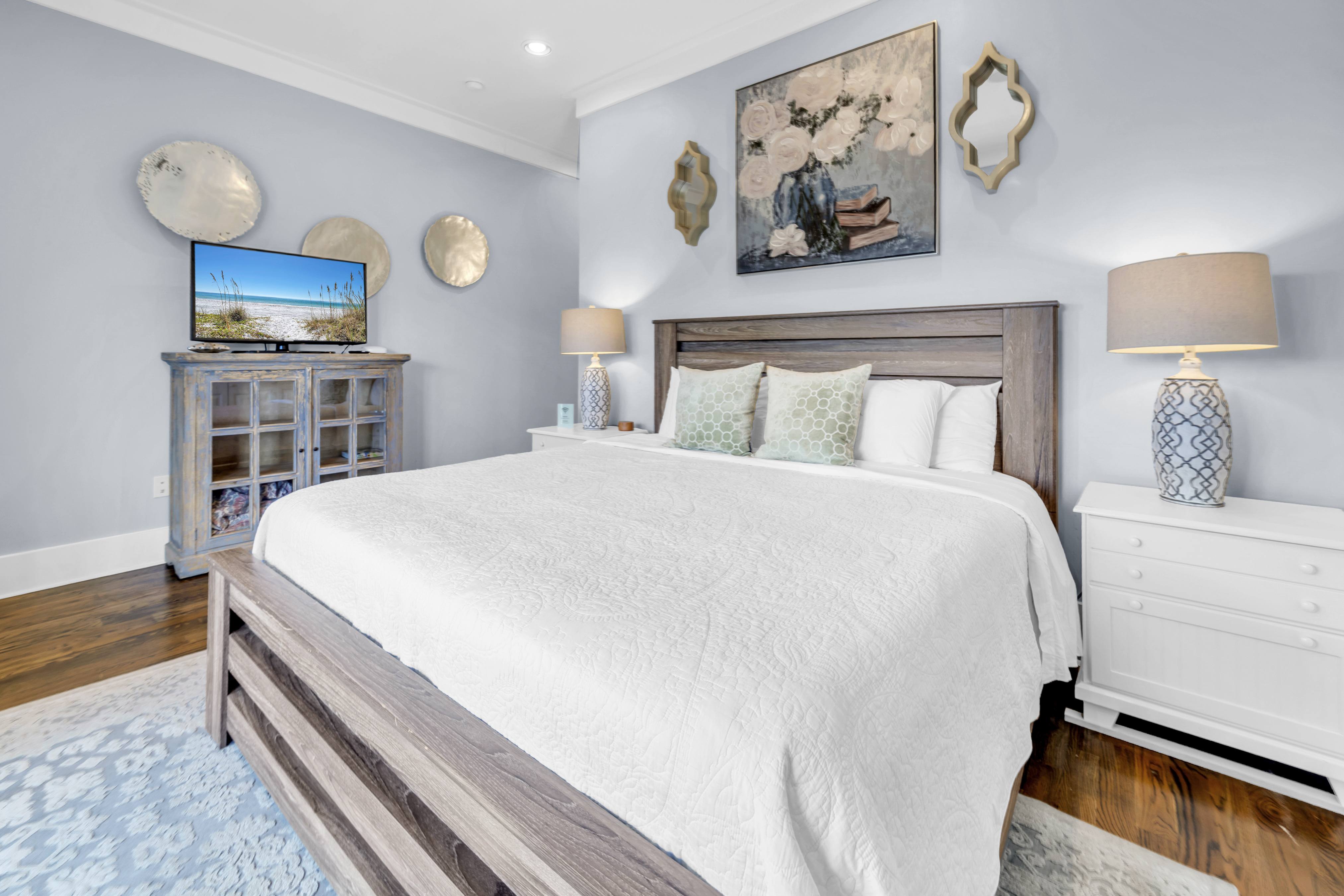 Wine and Shine is a beautiful 4-bedroom, 3 and a half-bathroom two-story condo that comfortably sleeps up to 10 guests, located just minutes from the shoreline along Scenic 30A.